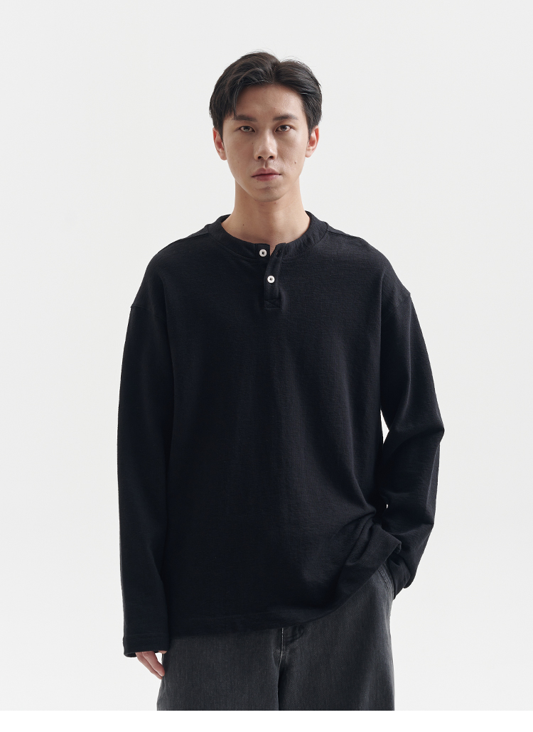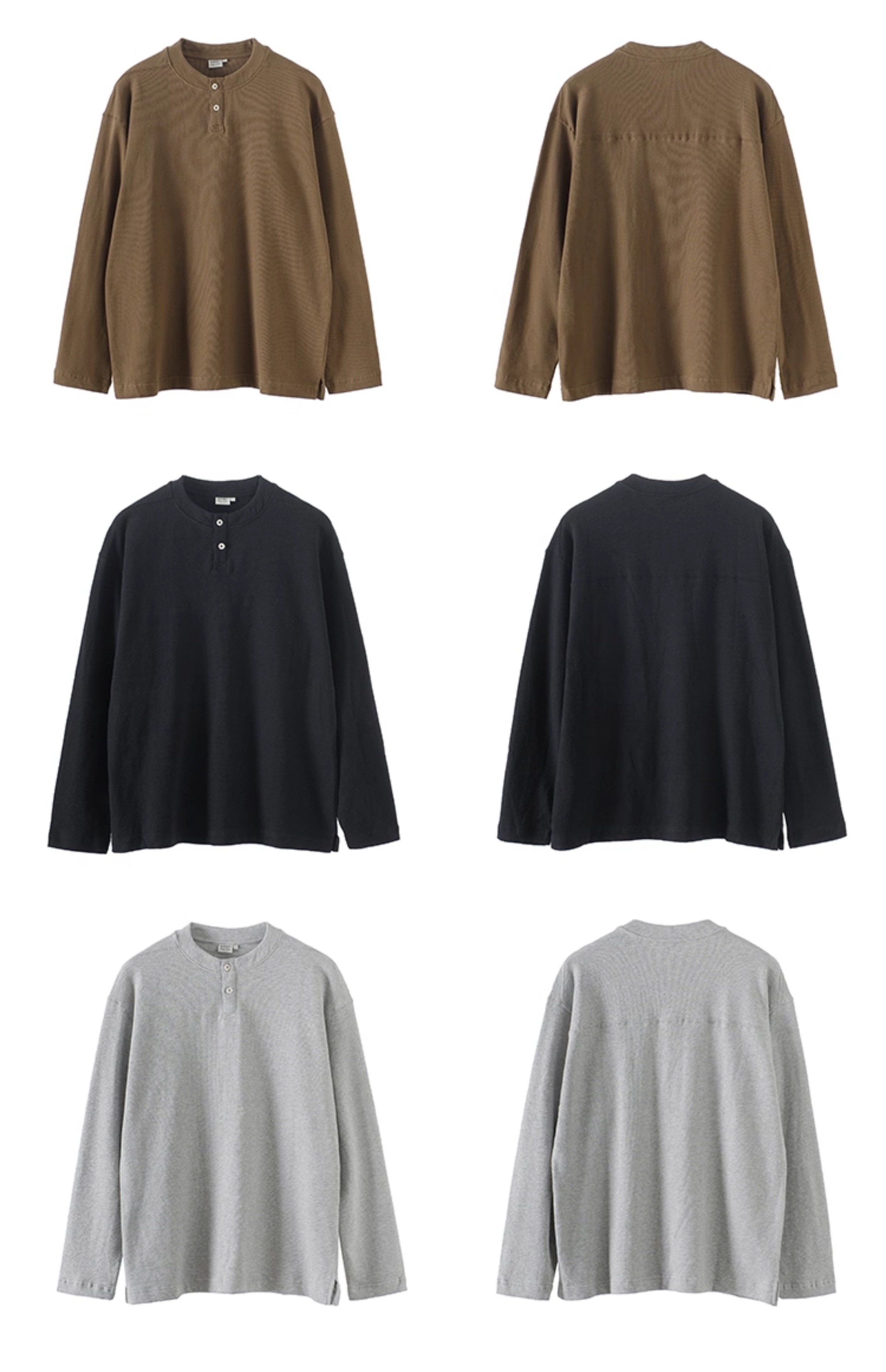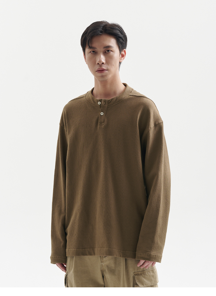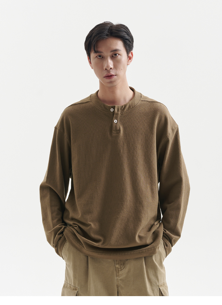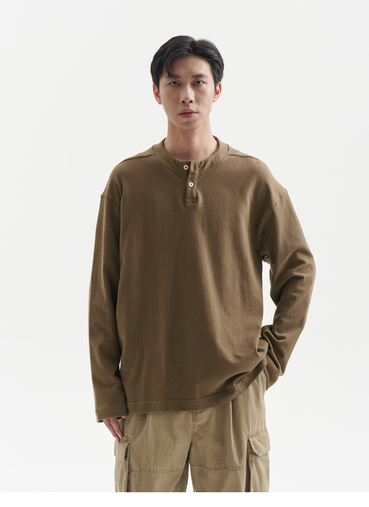 BUTTBILL Henry Collar Simple Casual Vintage Long Sleeve