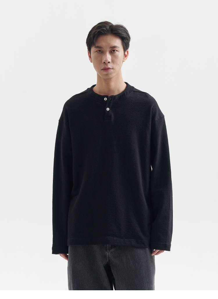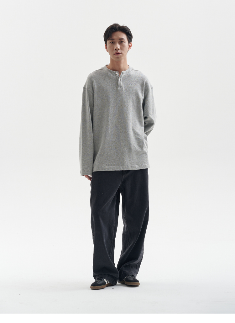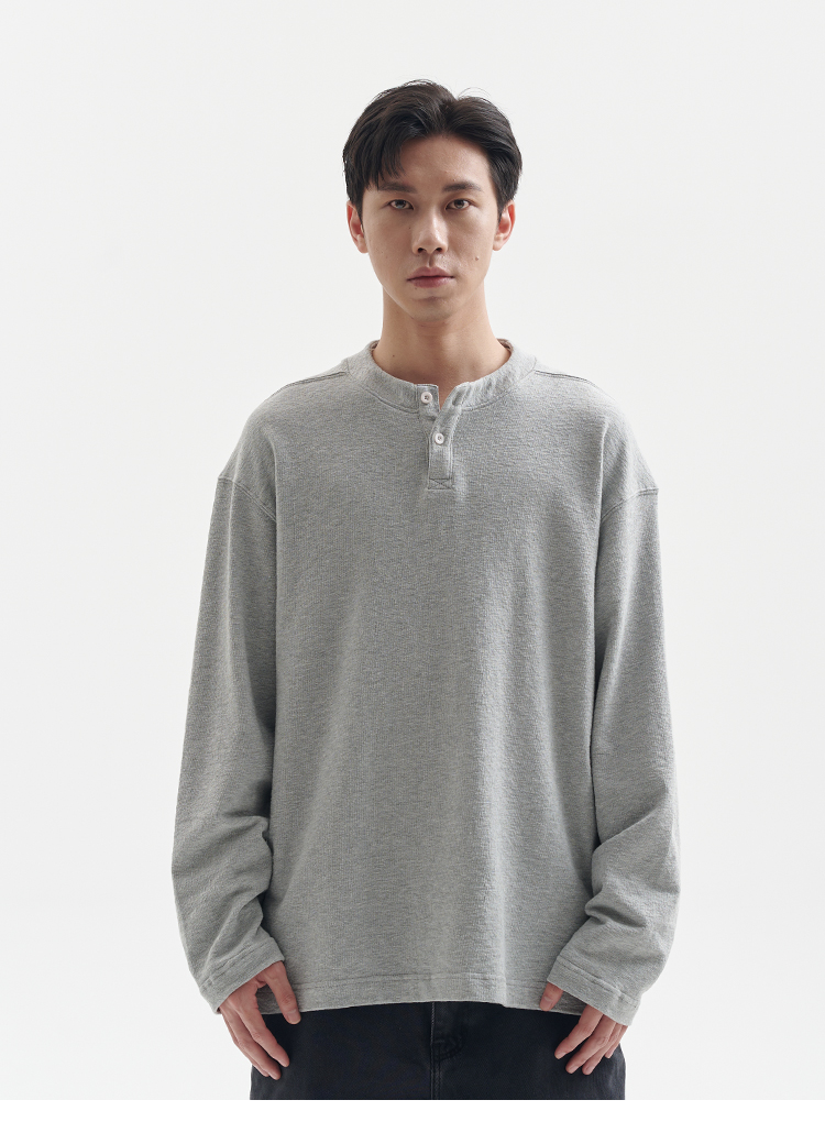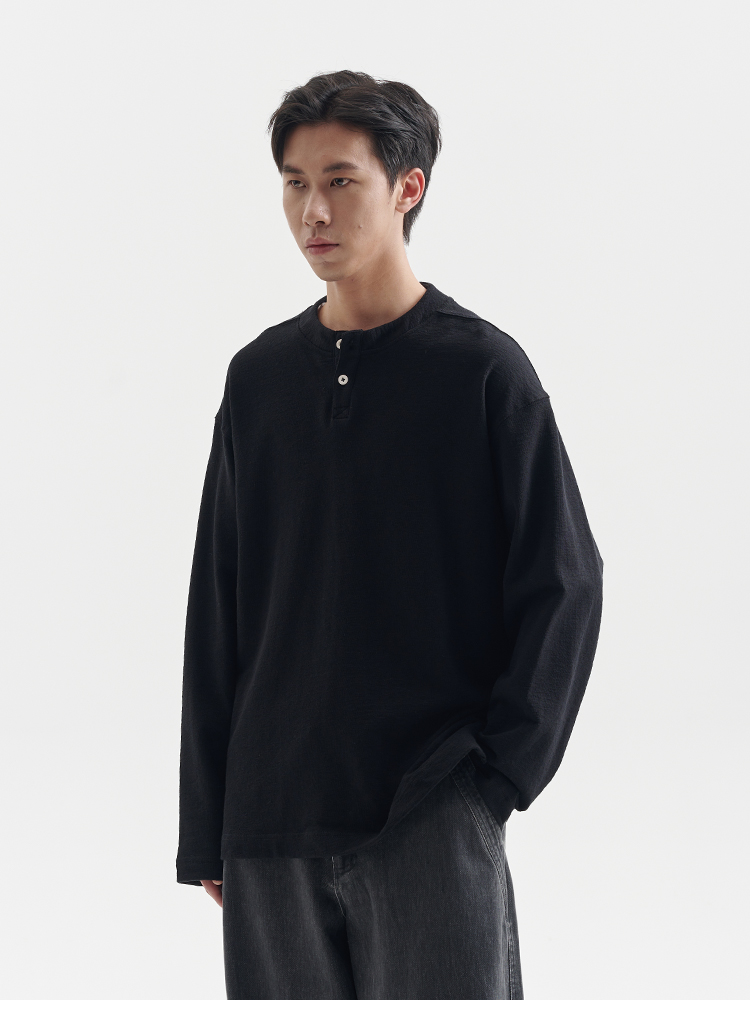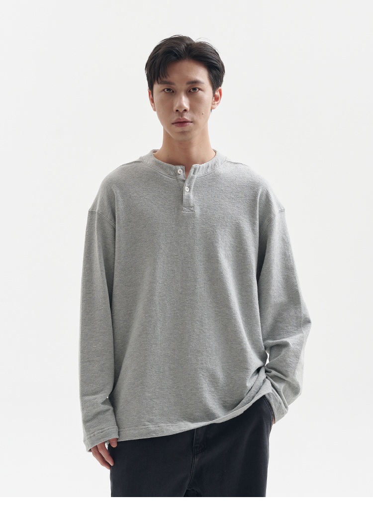 BUTTBILL Henry Collar Simple Casual Vintage Long Sleeve