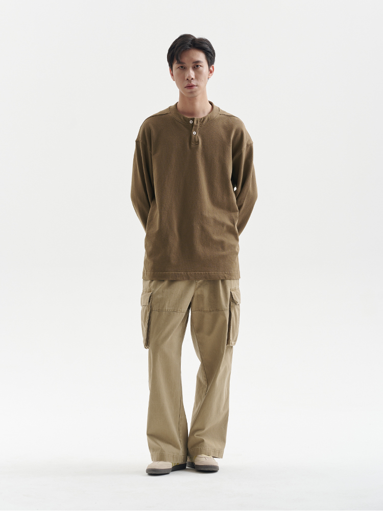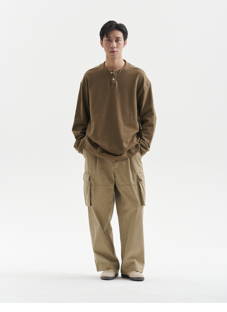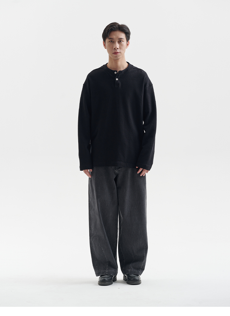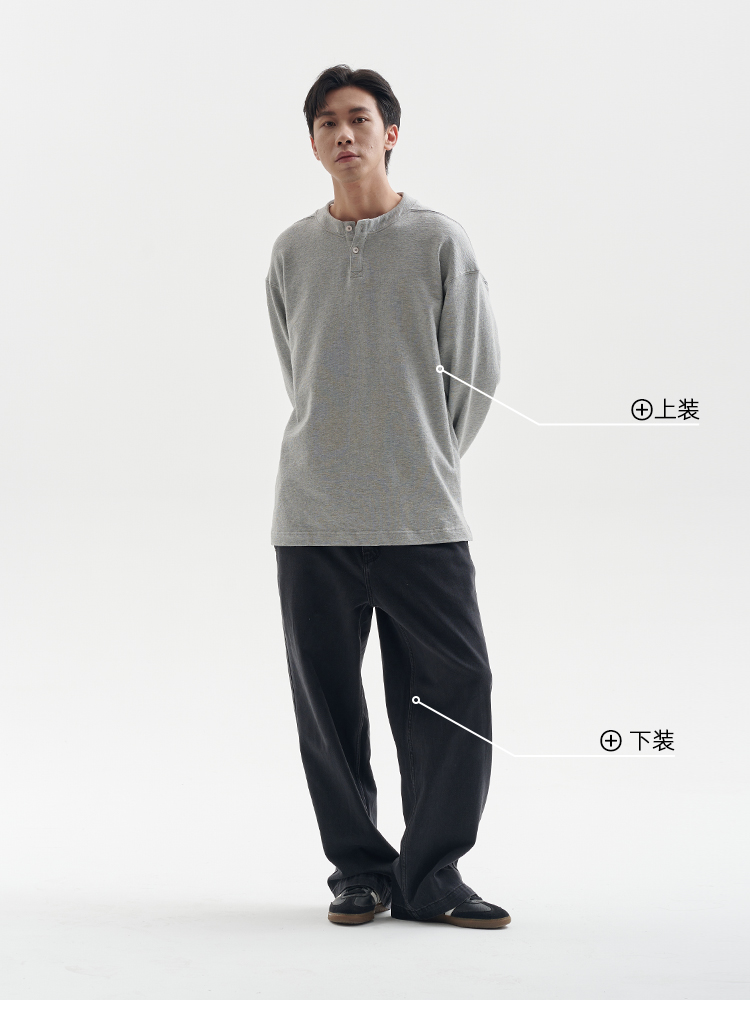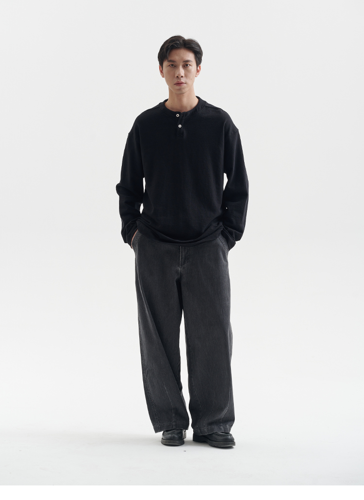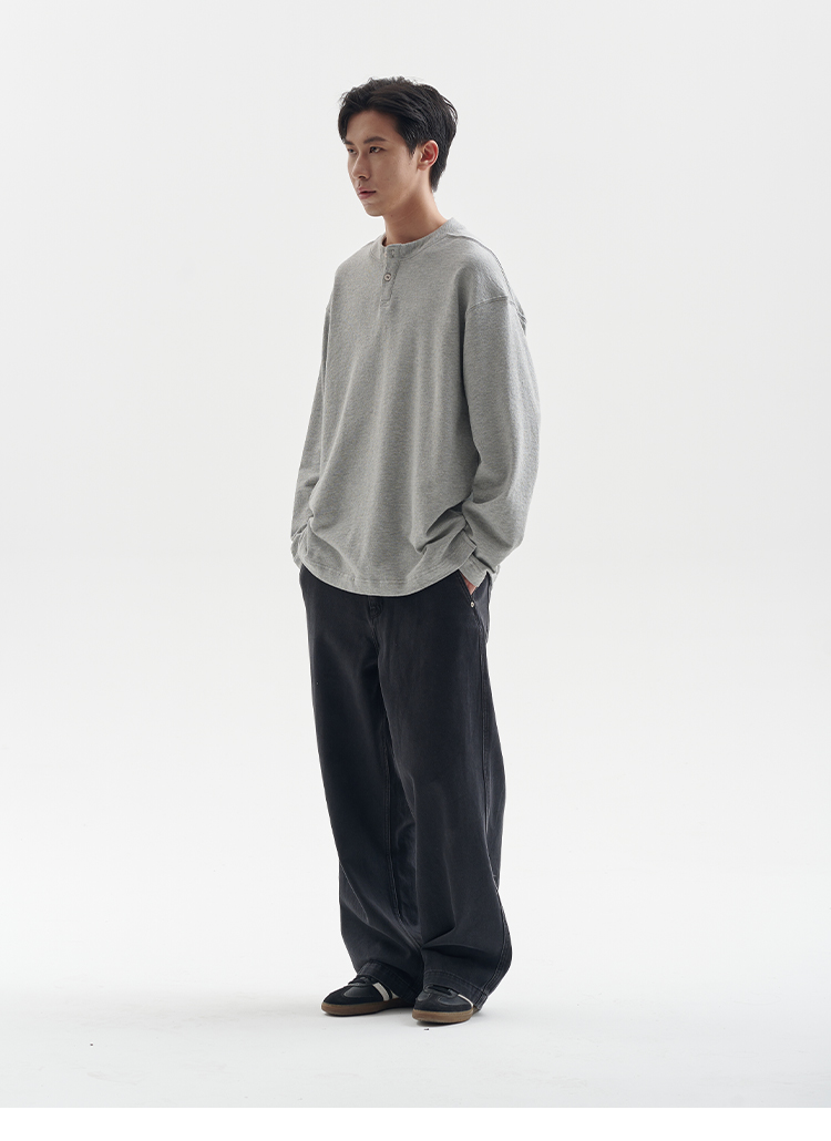 BUTTBILL Henry Collar Simple Casual Vintage Long Sleeve