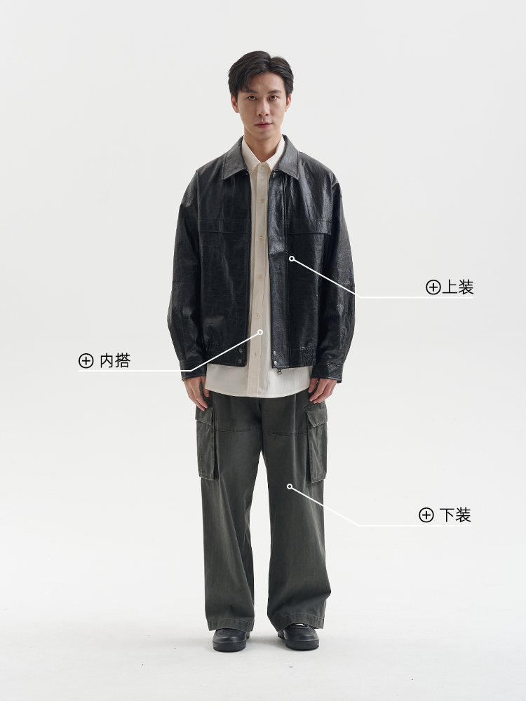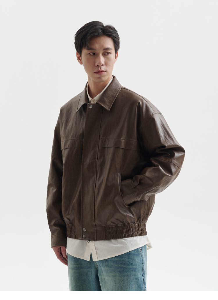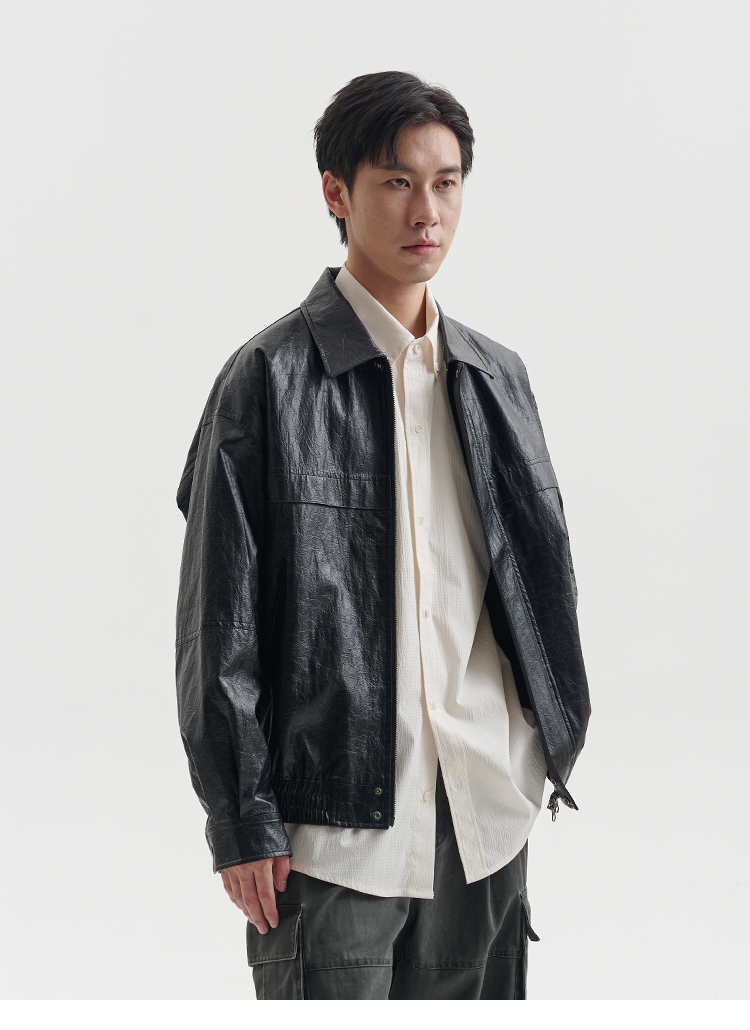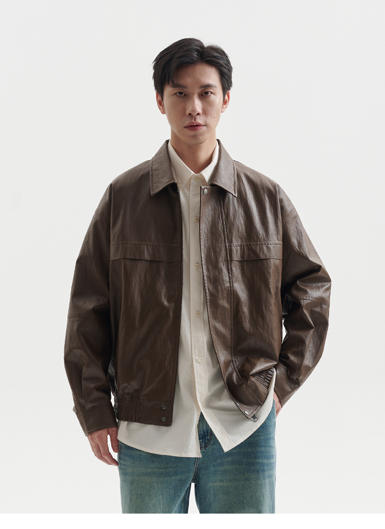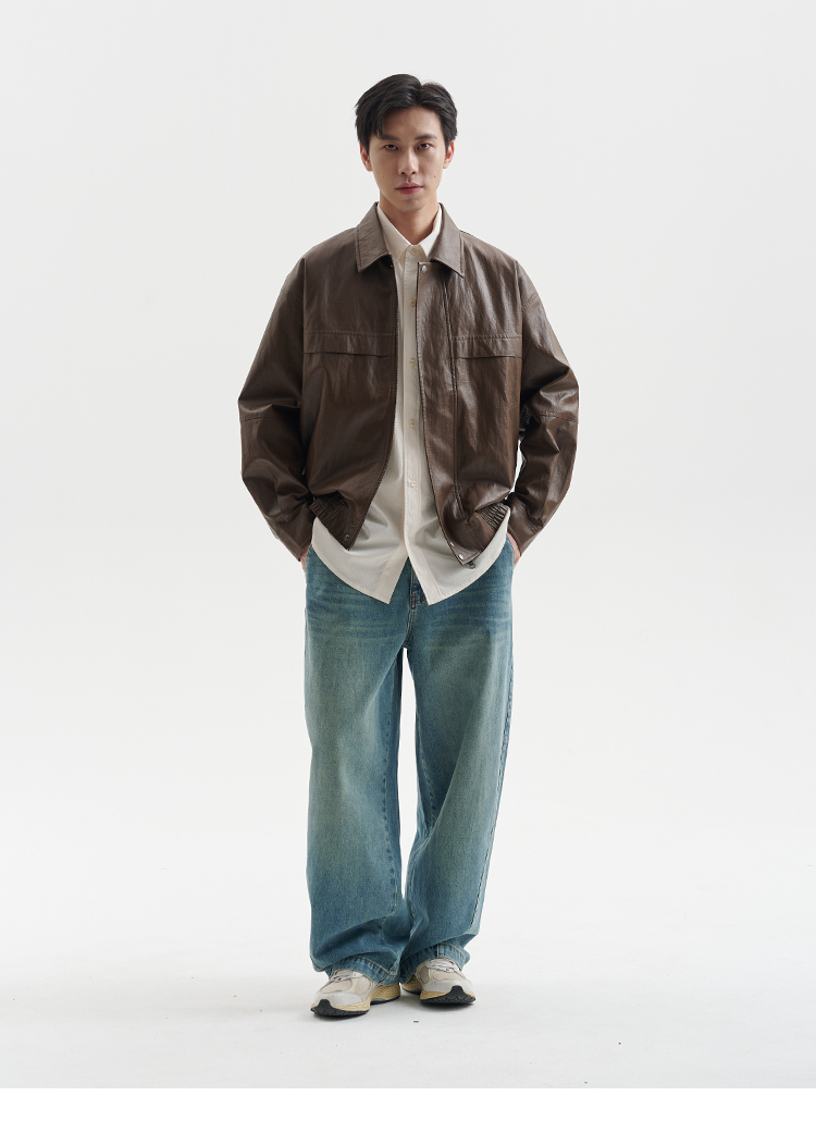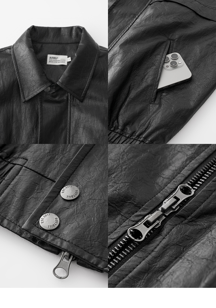 BUTTBILL Make Old Casual Vintage Leather Jacket