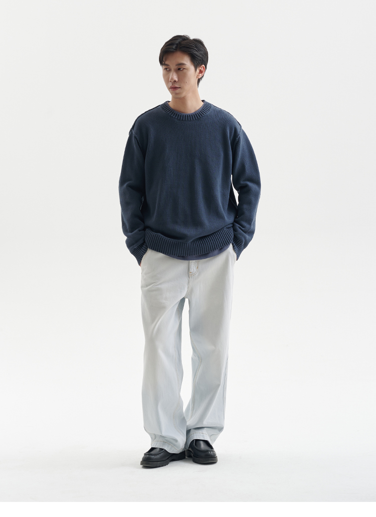 BUTTBILL Vintage Simple Crew Neck Knitted Sweater