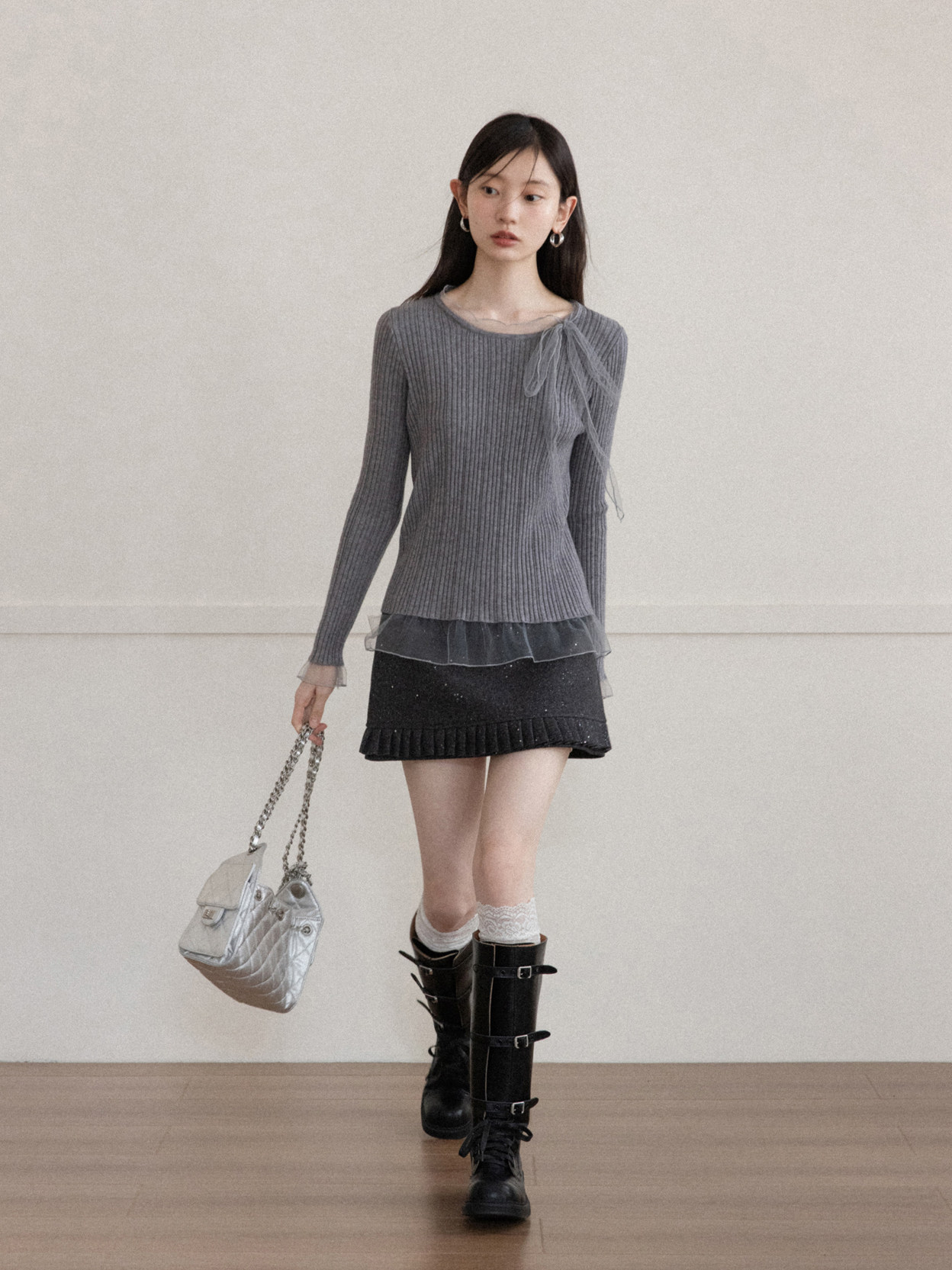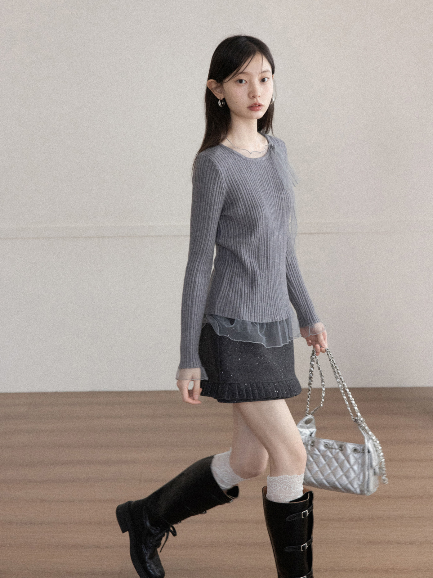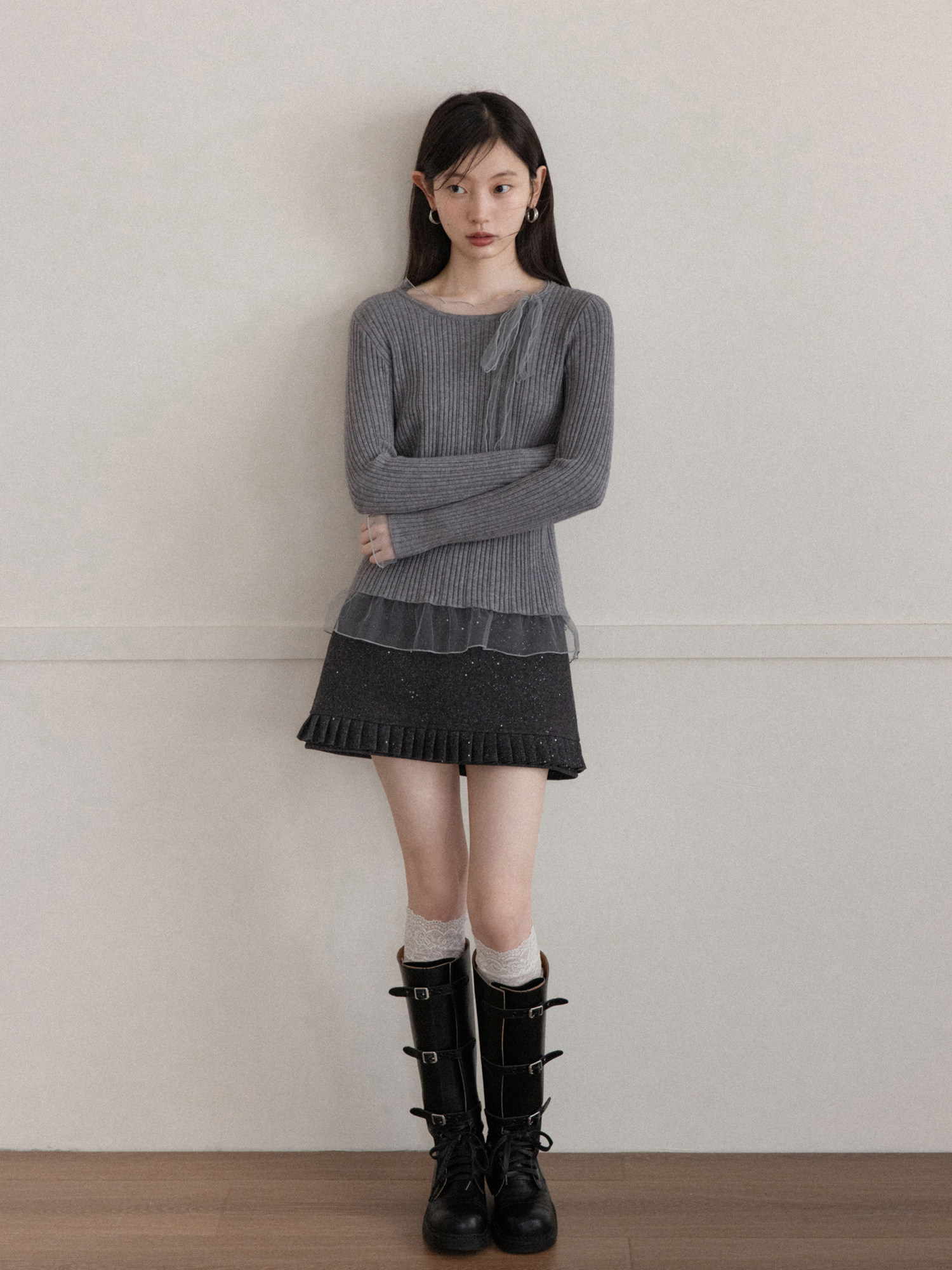 Cantonstory Crew Neck Slim-fit Long Sleeve Wool Knitted Sweater