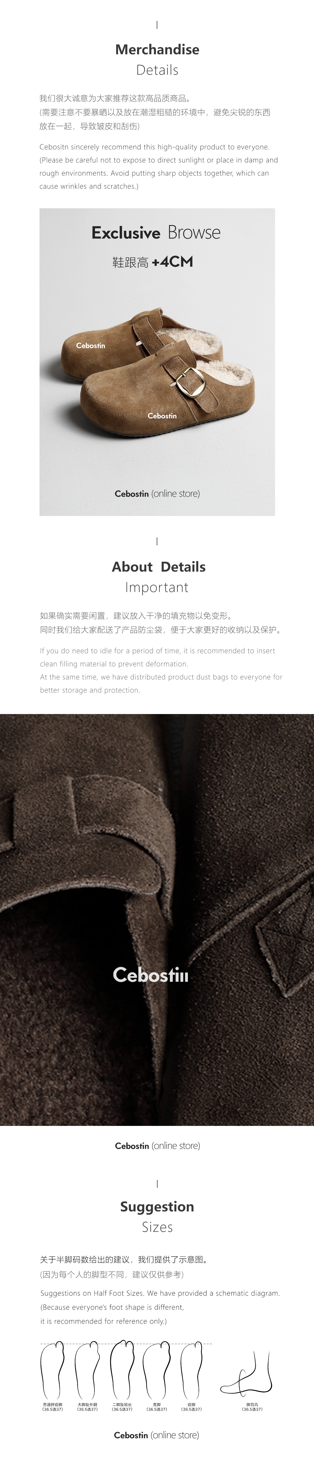 Cebostin Heightening Cow Cashmere Velvet Warm Birken Half Slippers