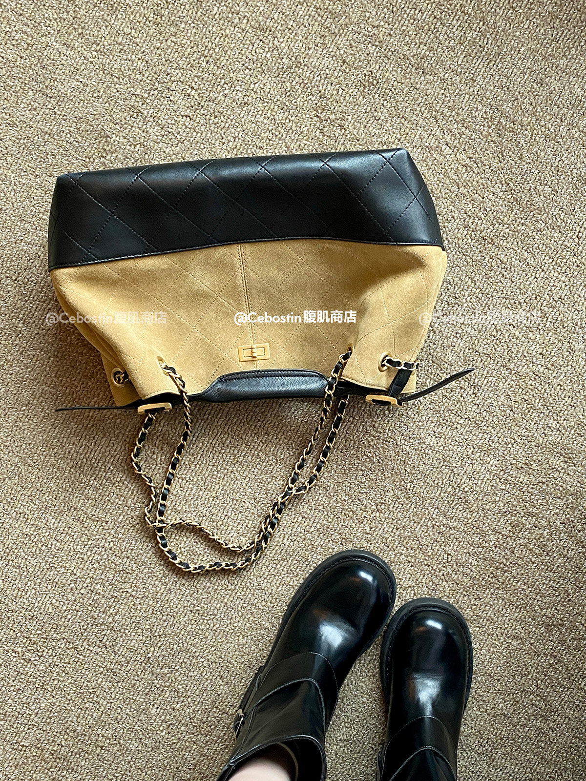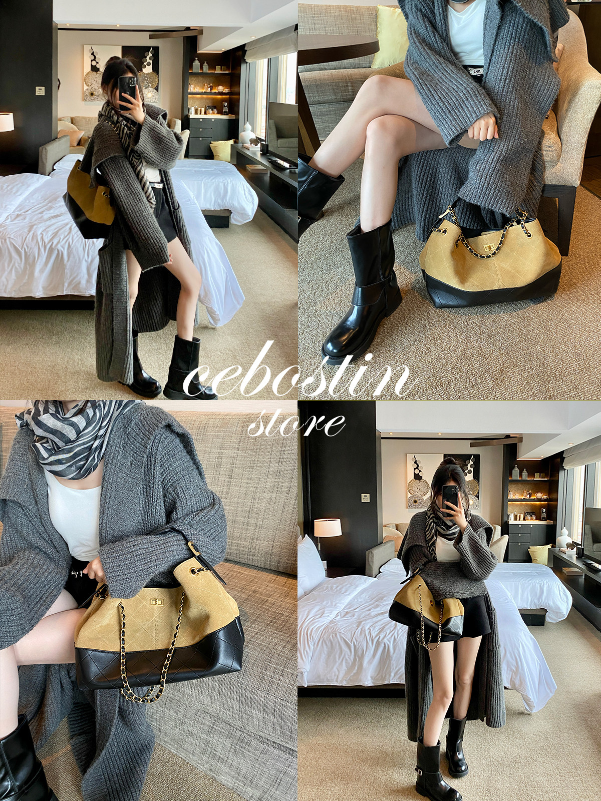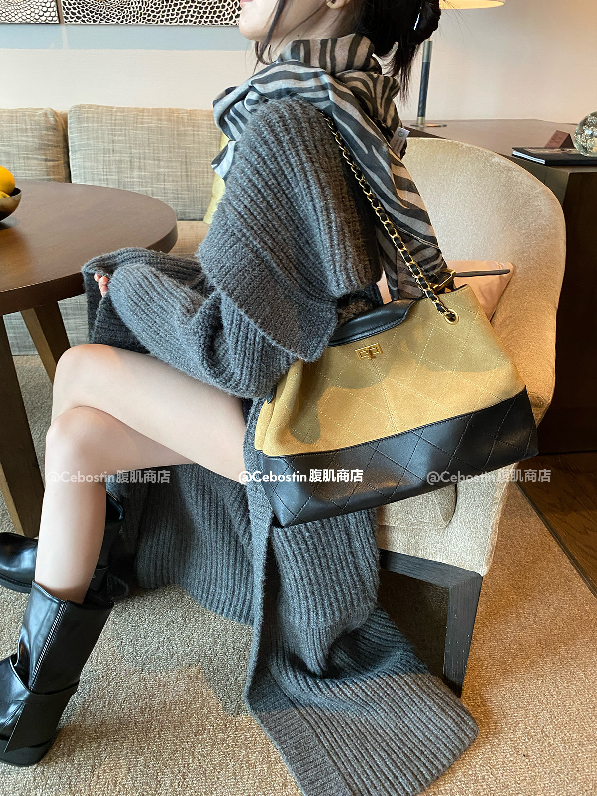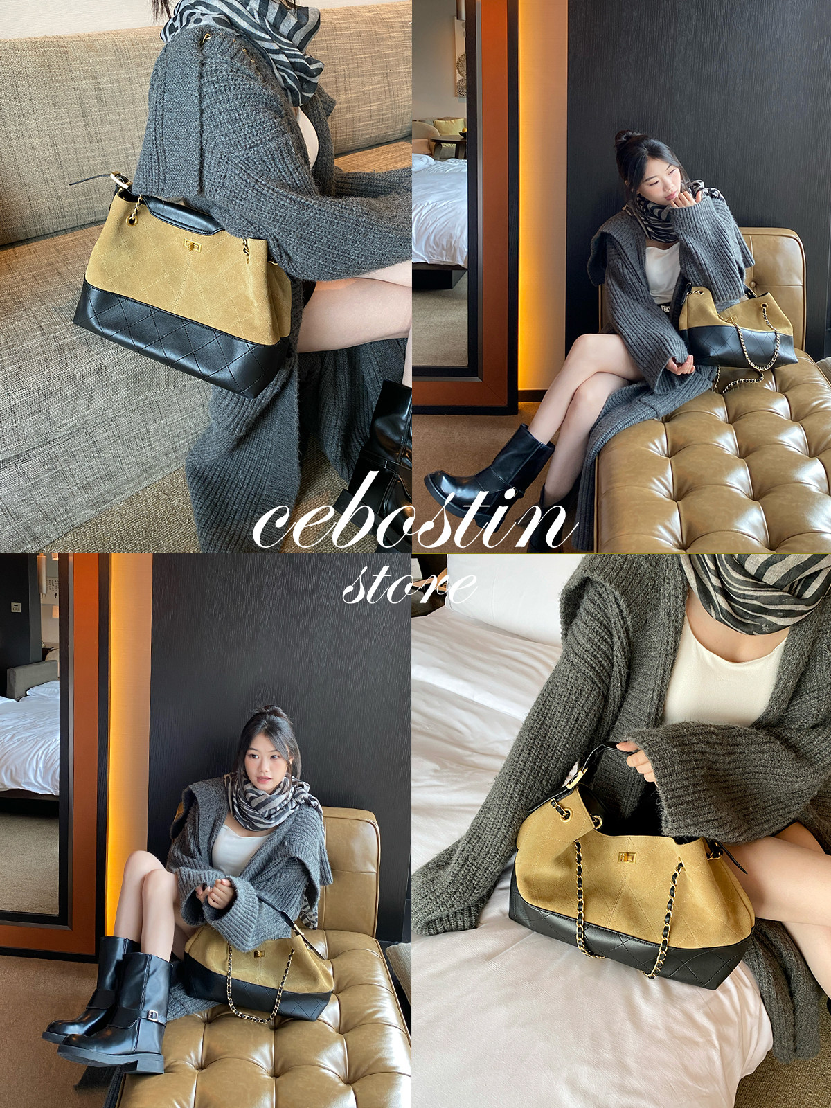 Cebostin Rhombus Splicing First Layer Cowhide Large Capacity Armpit Bag