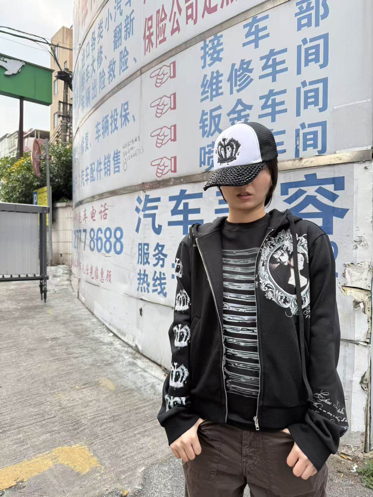 CHAI Angel City Print Hot Diamond Hooded Sweater