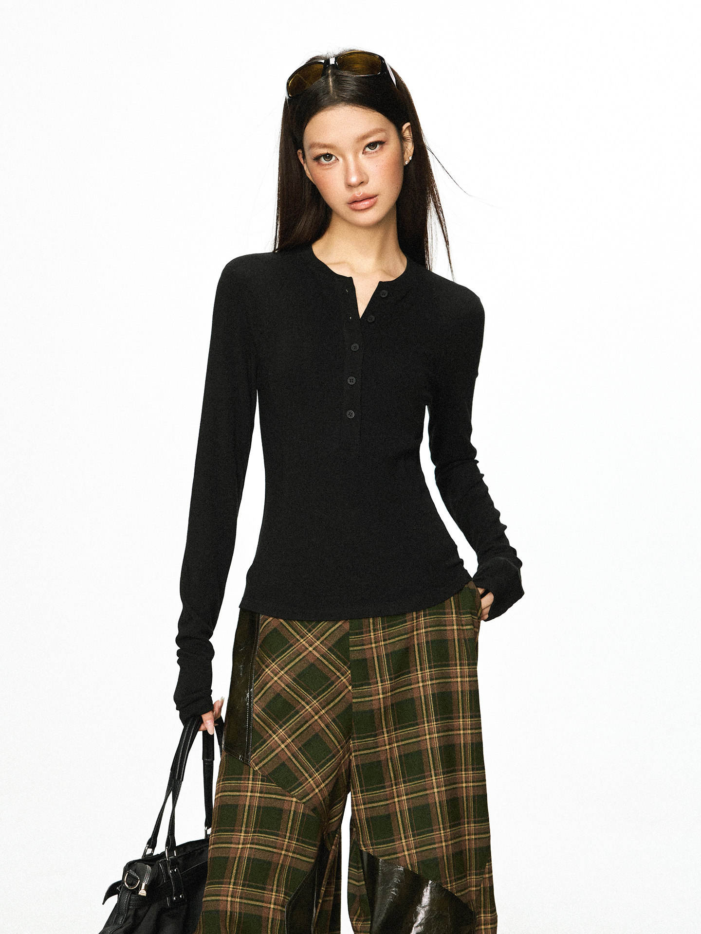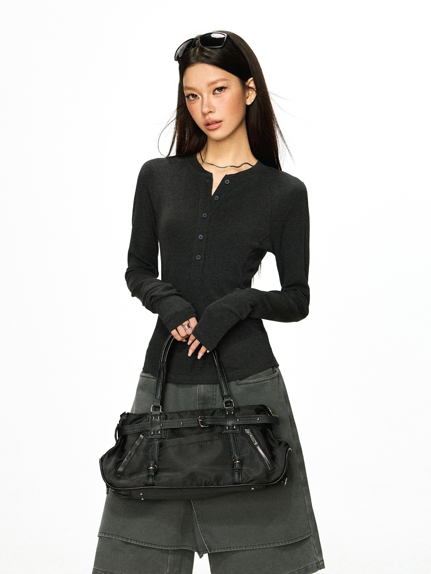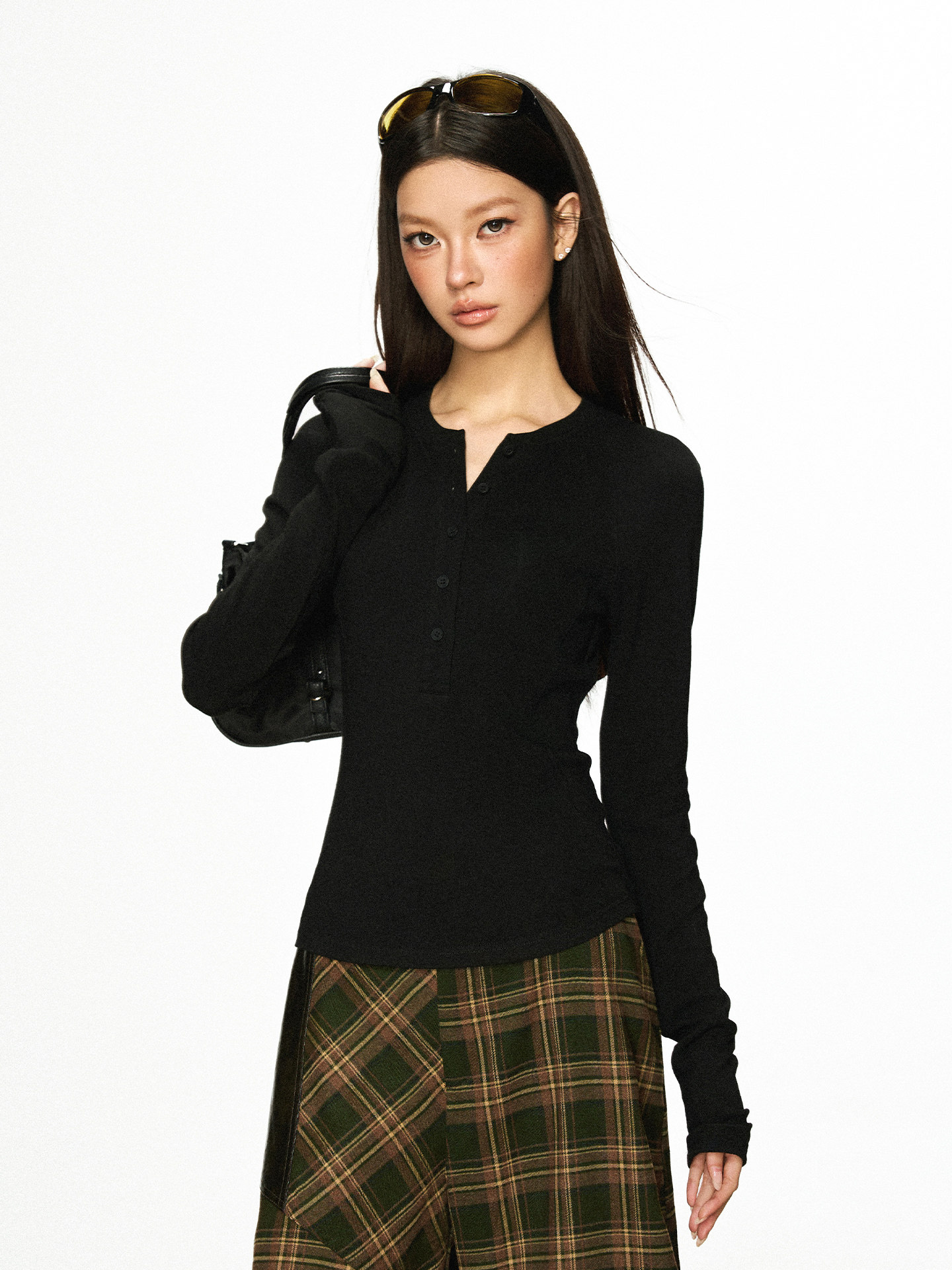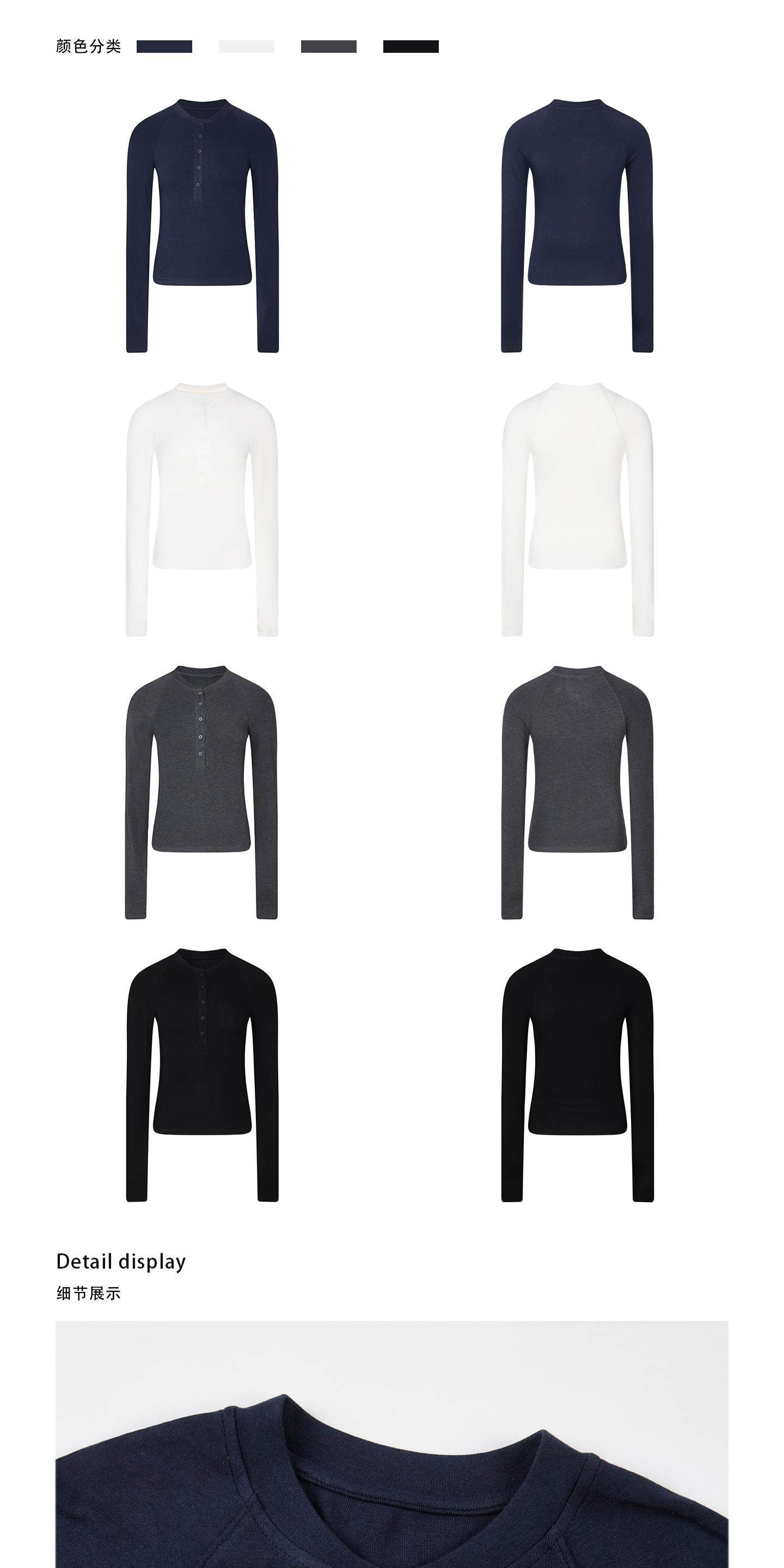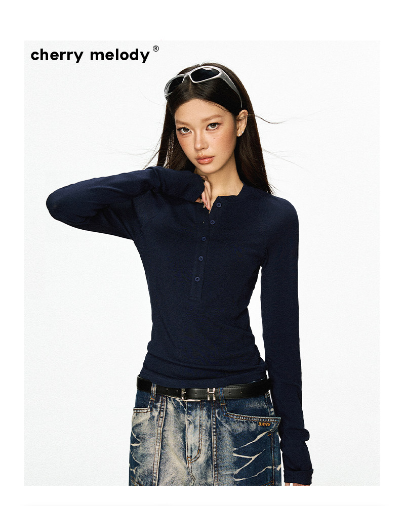 Cherry Melody Henry Collar Button Versatile Primer Long Sleeve
