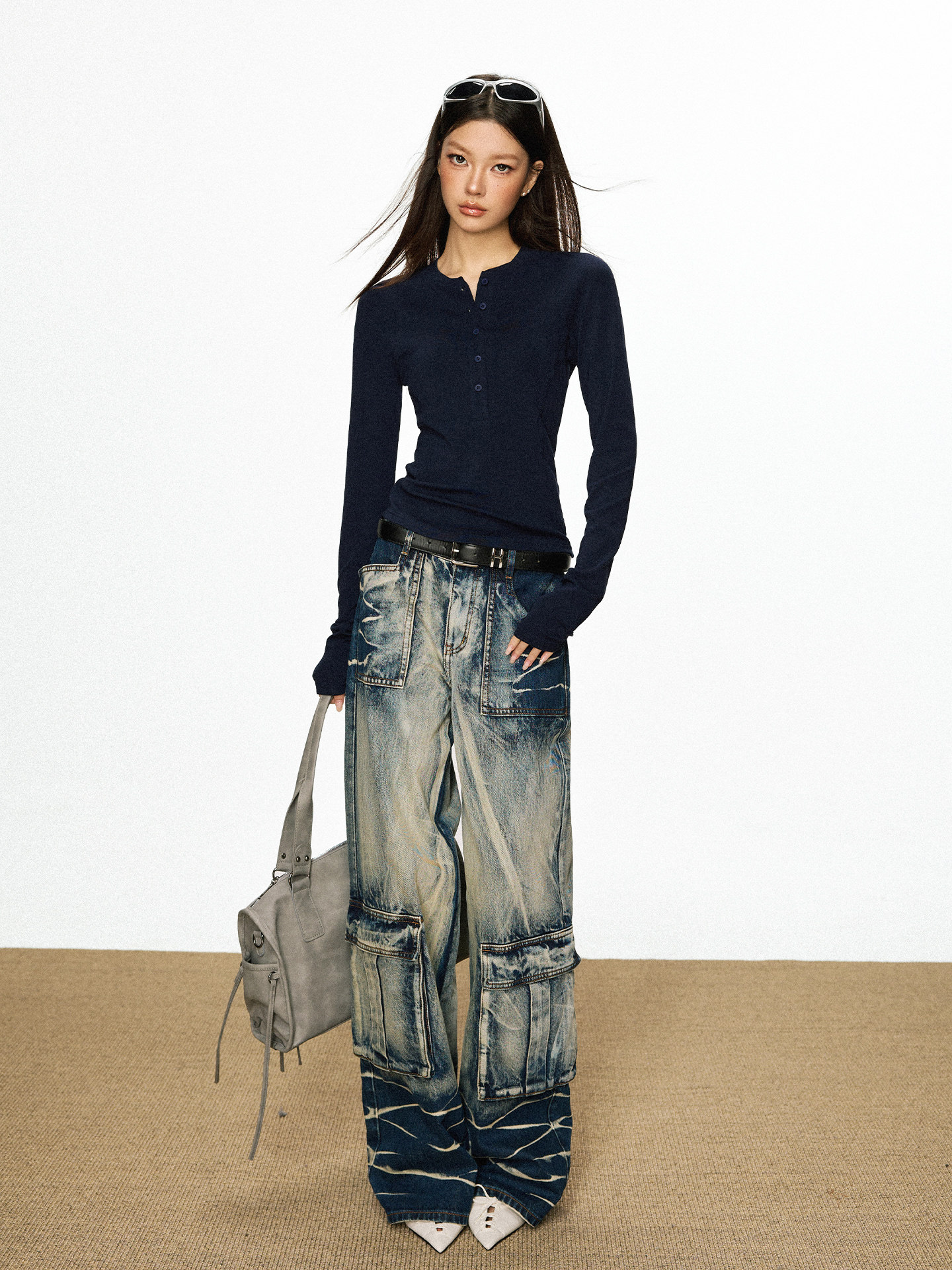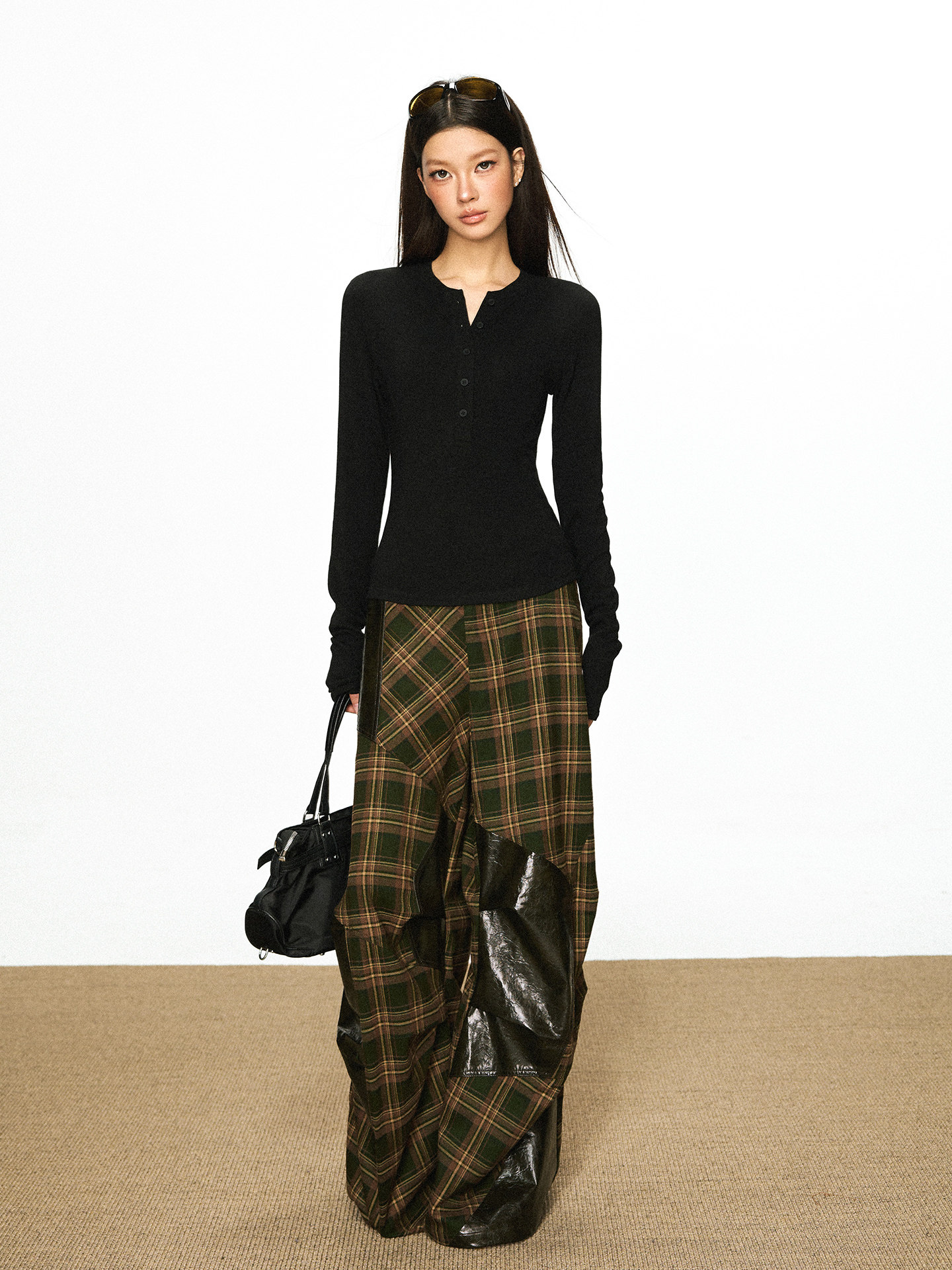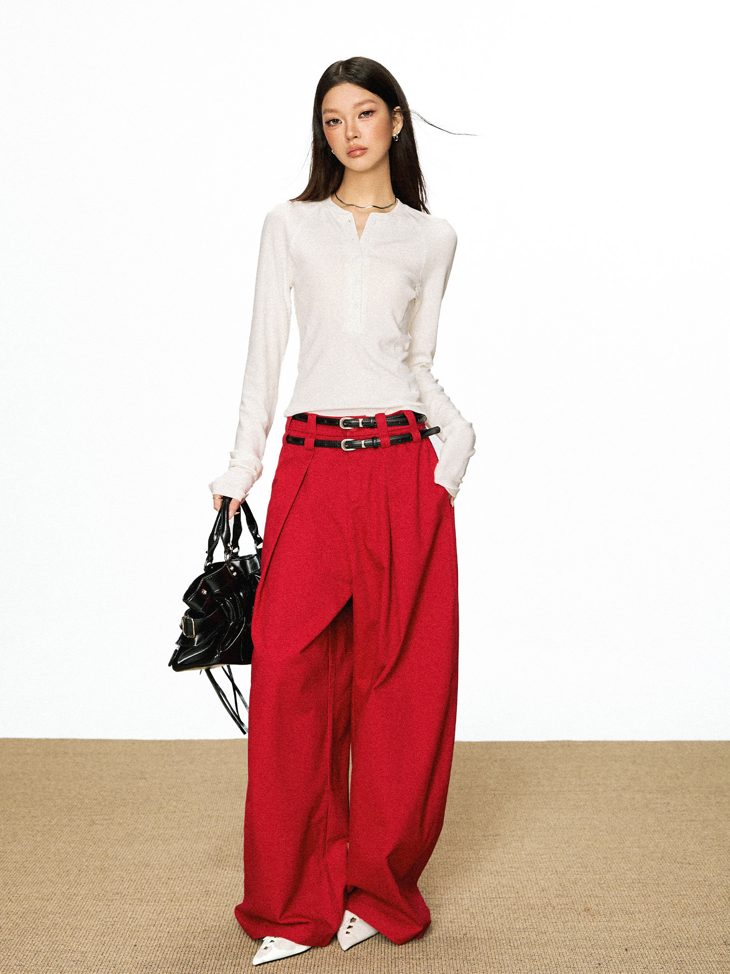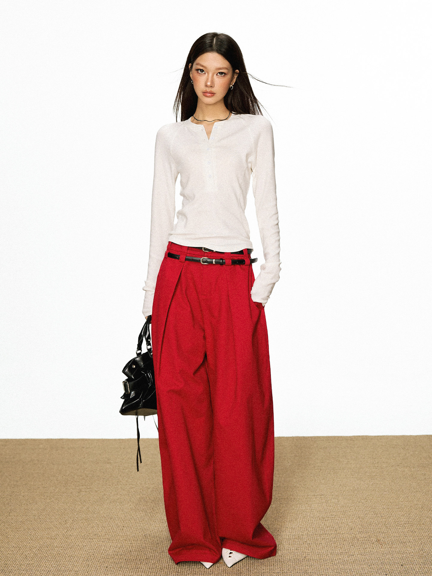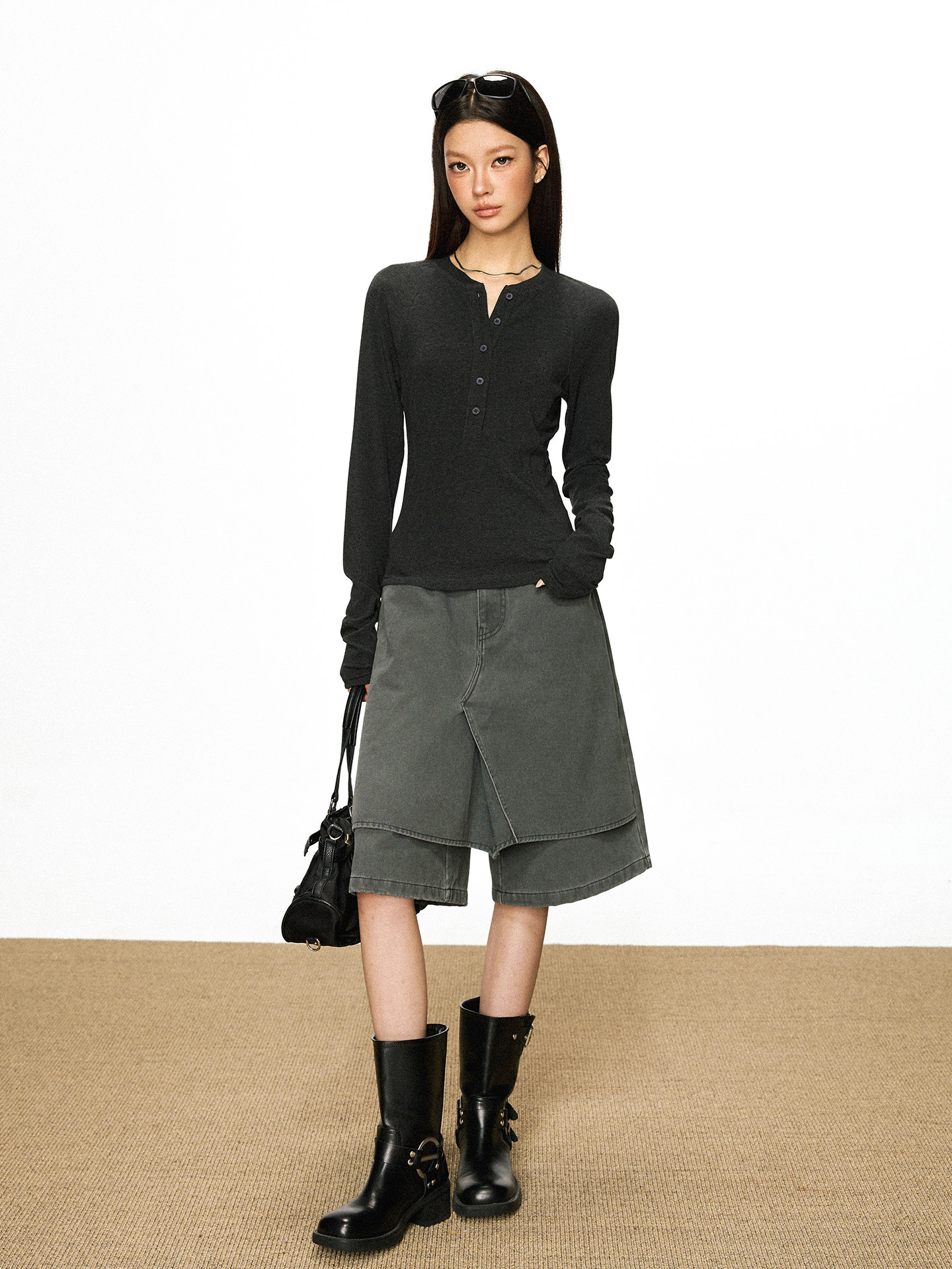 Cherry Melody Henry Collar Button Versatile Primer Long Sleeve