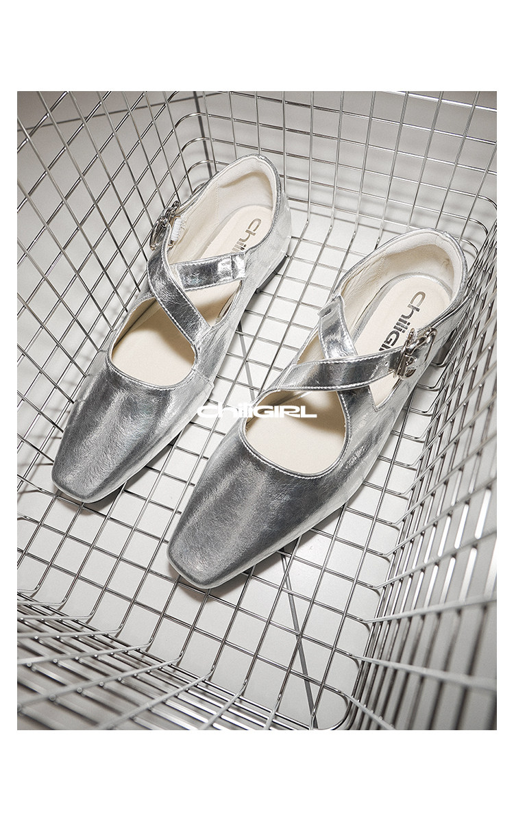 CHILIGIRL Crossed Strap Small Square Head Flats