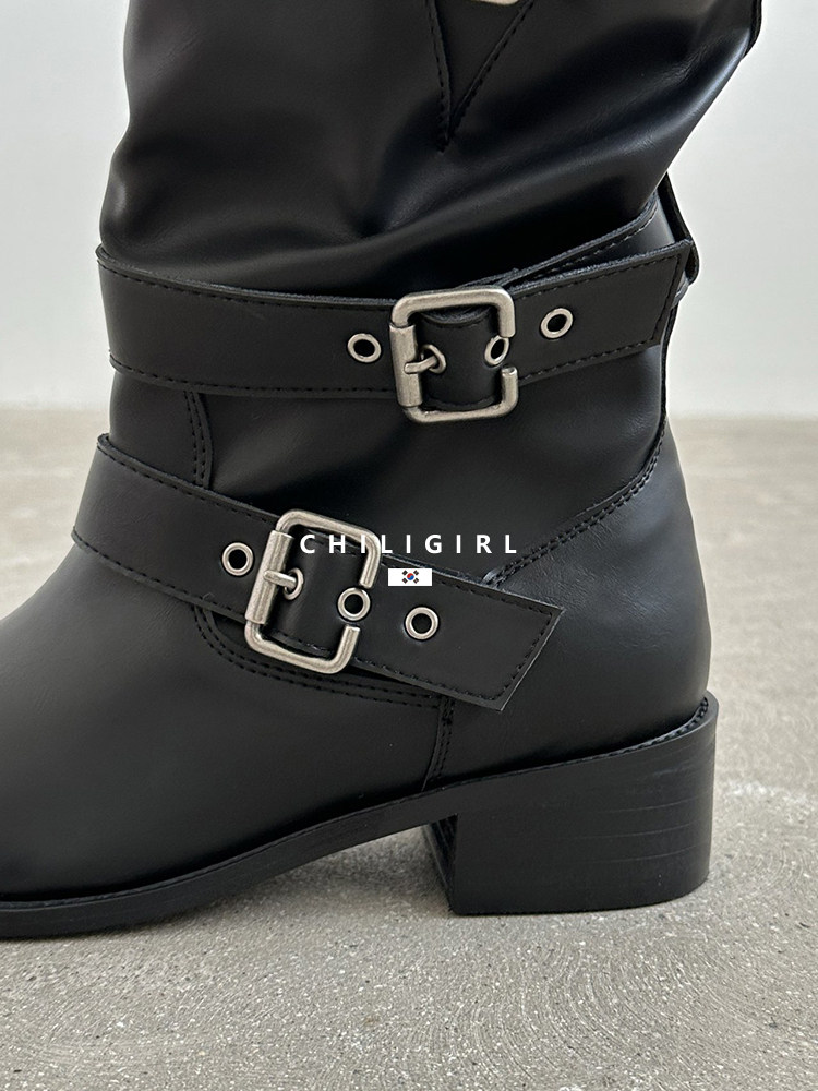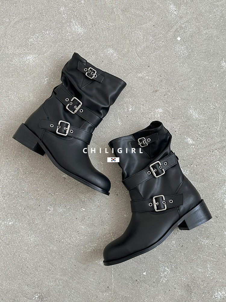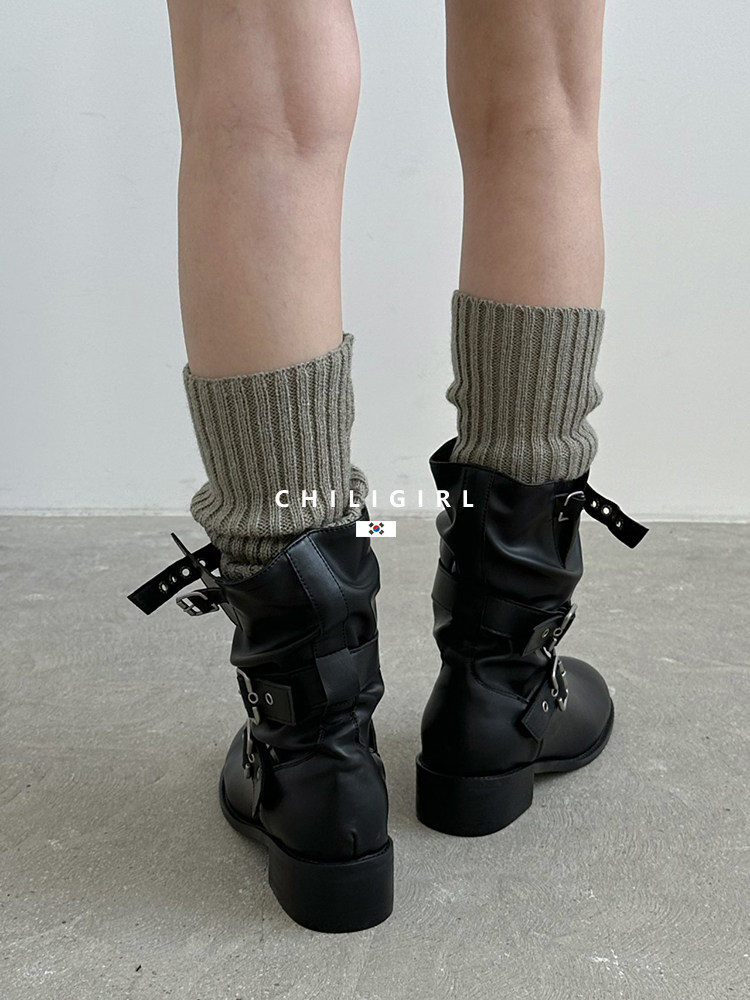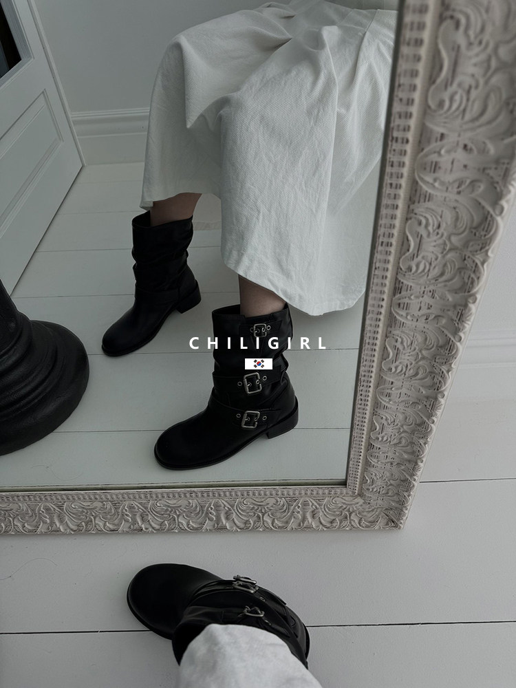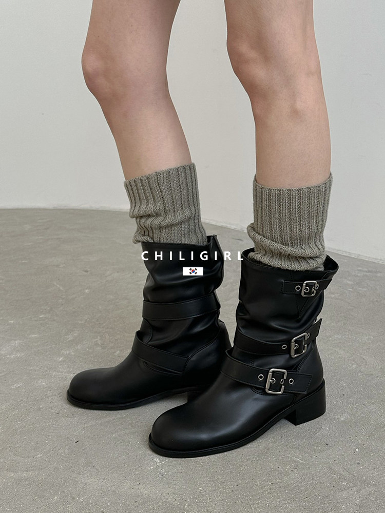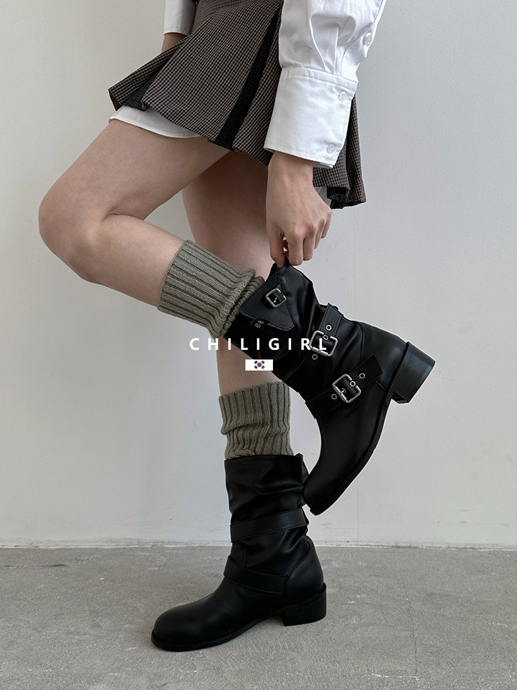 CHILIGIRL Soft Leather Belt Buckle Versatile Coarse Heel Sleeve Boots