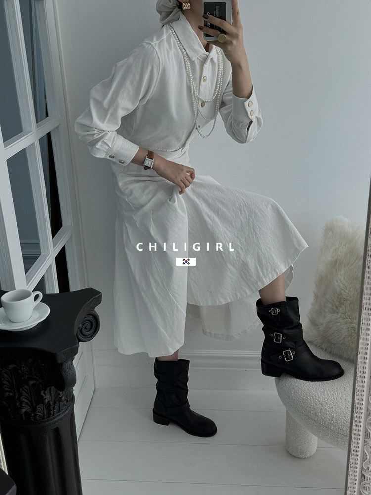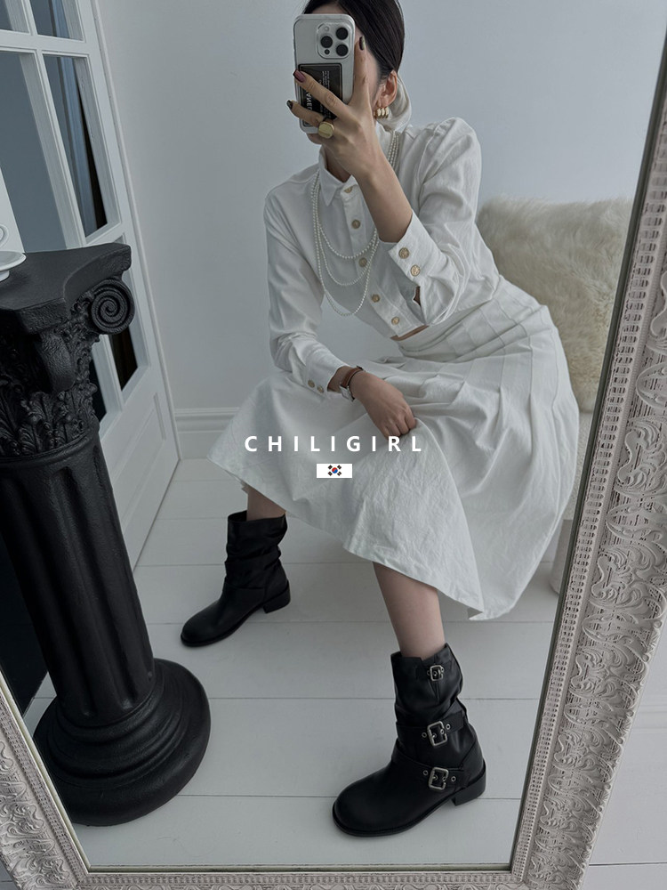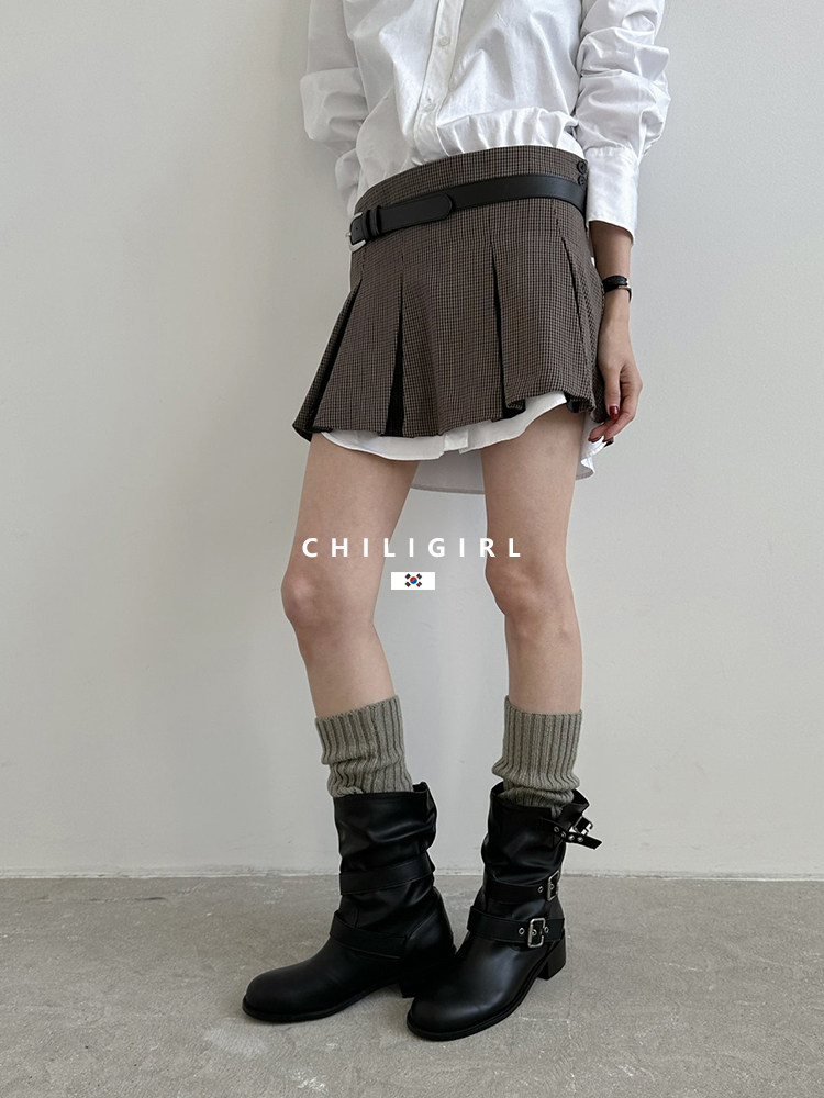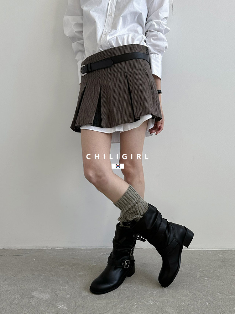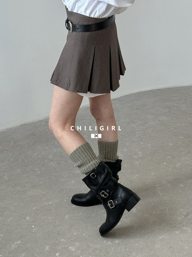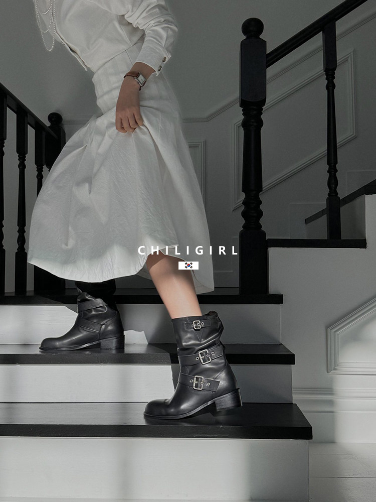 CHILIGIRL Soft Leather Belt Buckle Versatile Coarse Heel Sleeve Boots