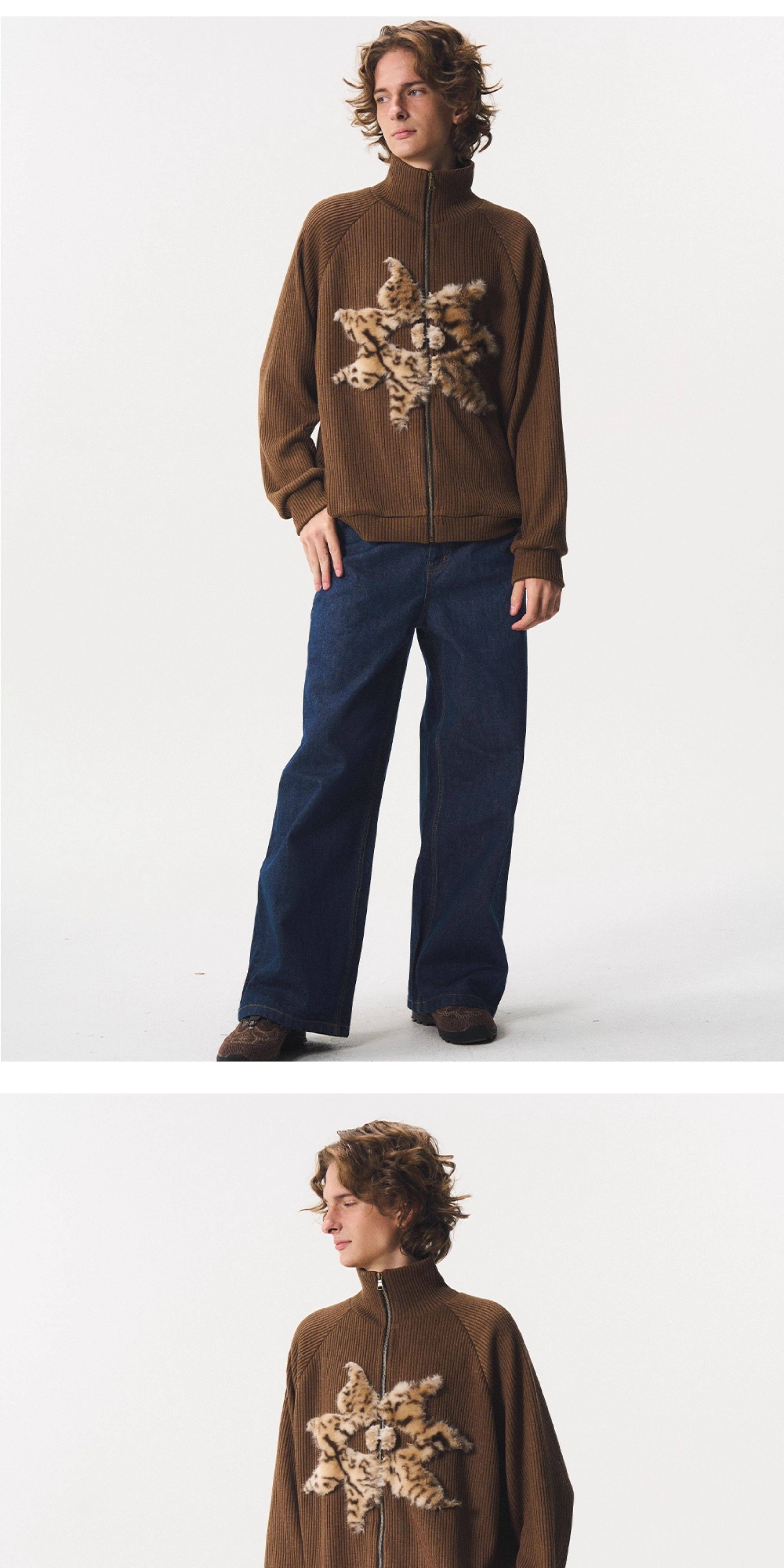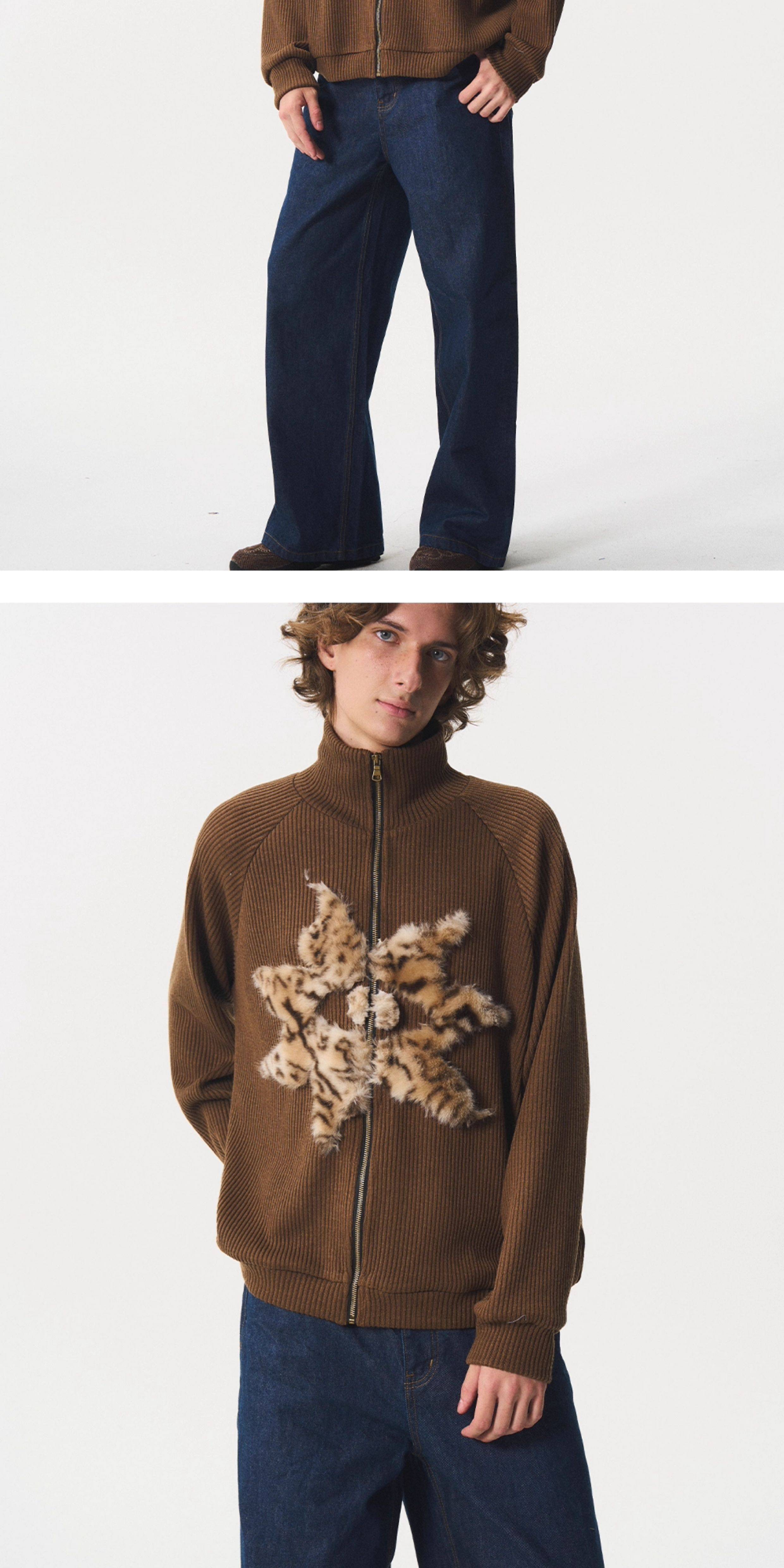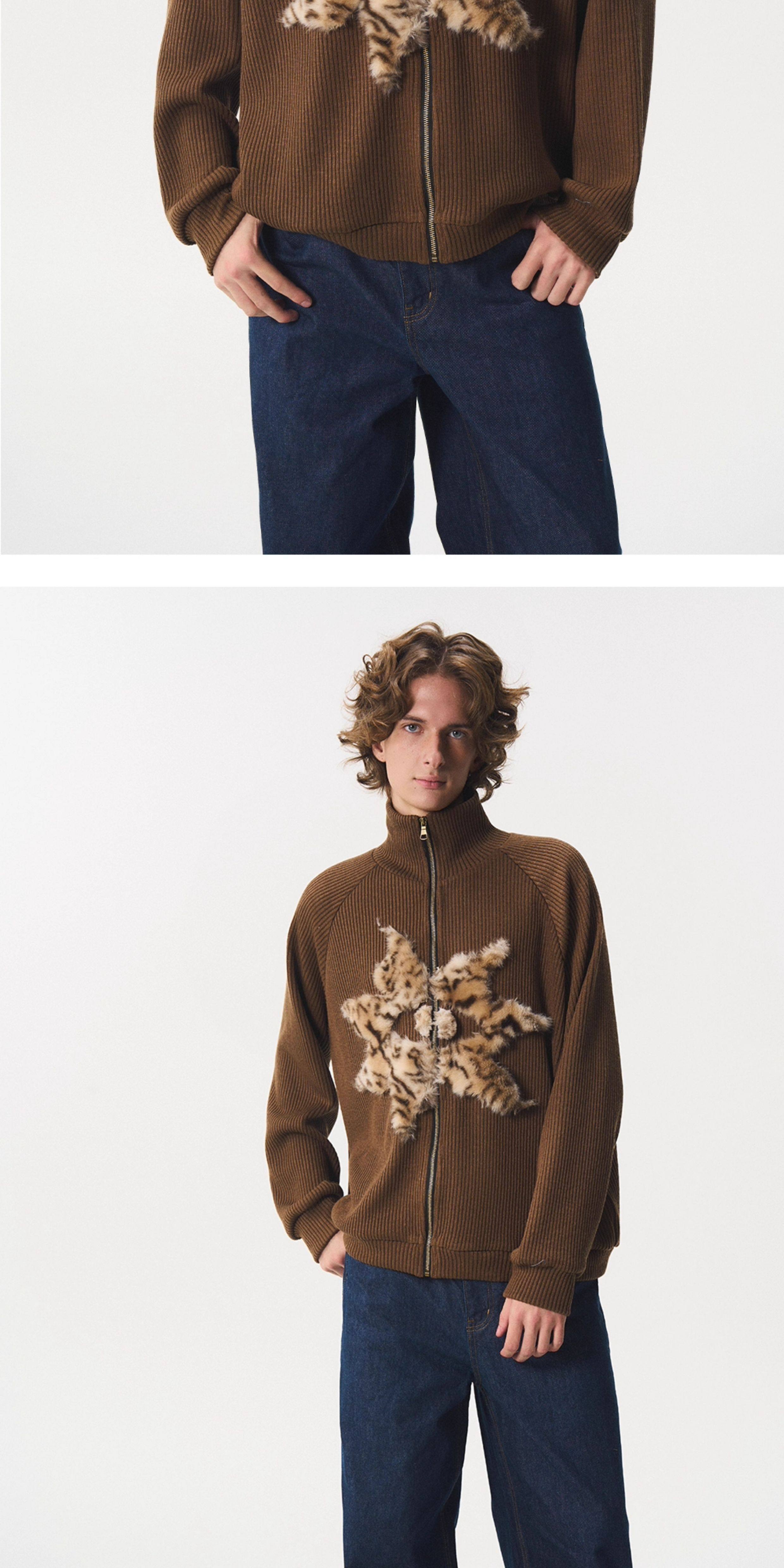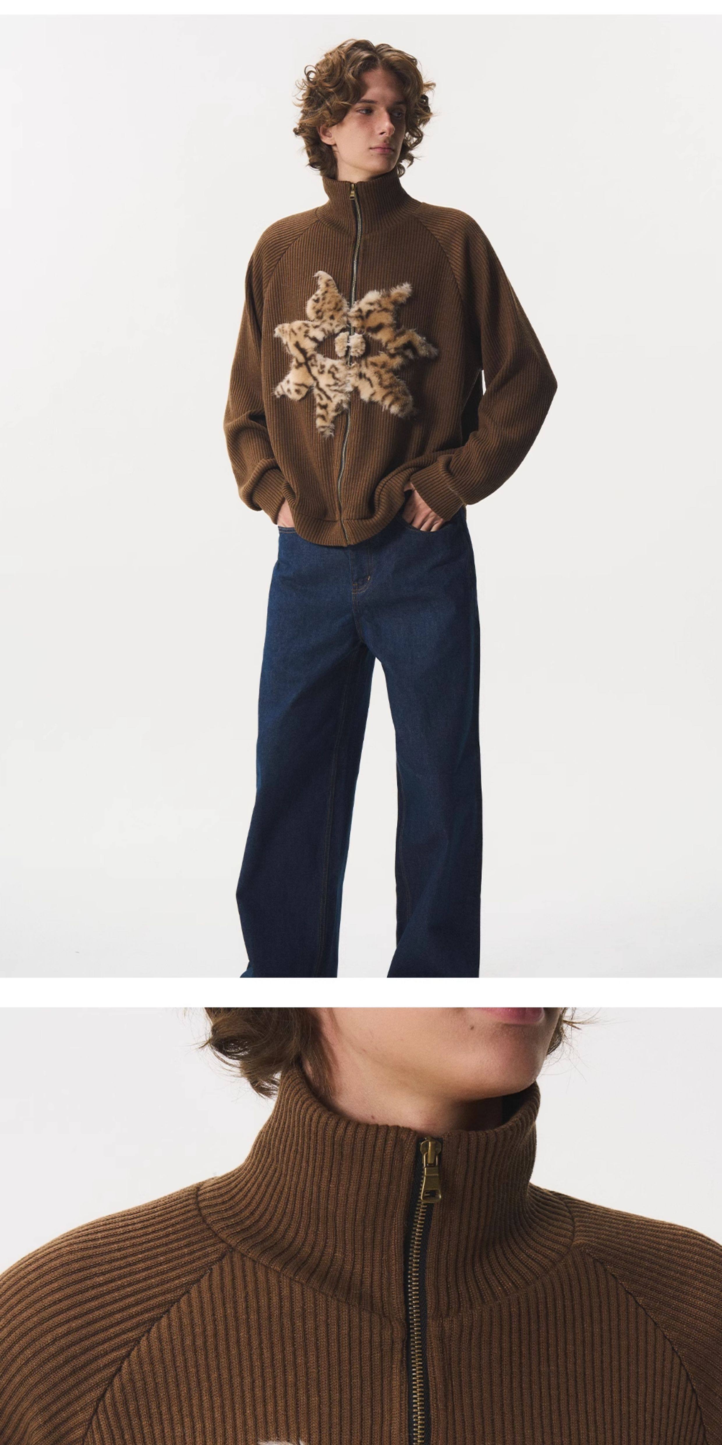 CNEW Retro Insulated Plush Patchwork Knit Jacket