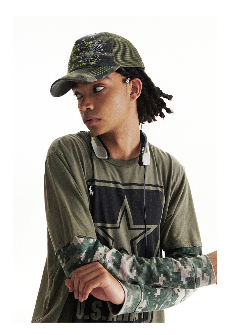CONP 24SS "Scattered Dandelions" Hand Thread Embroidery Camouflage Truck Cap