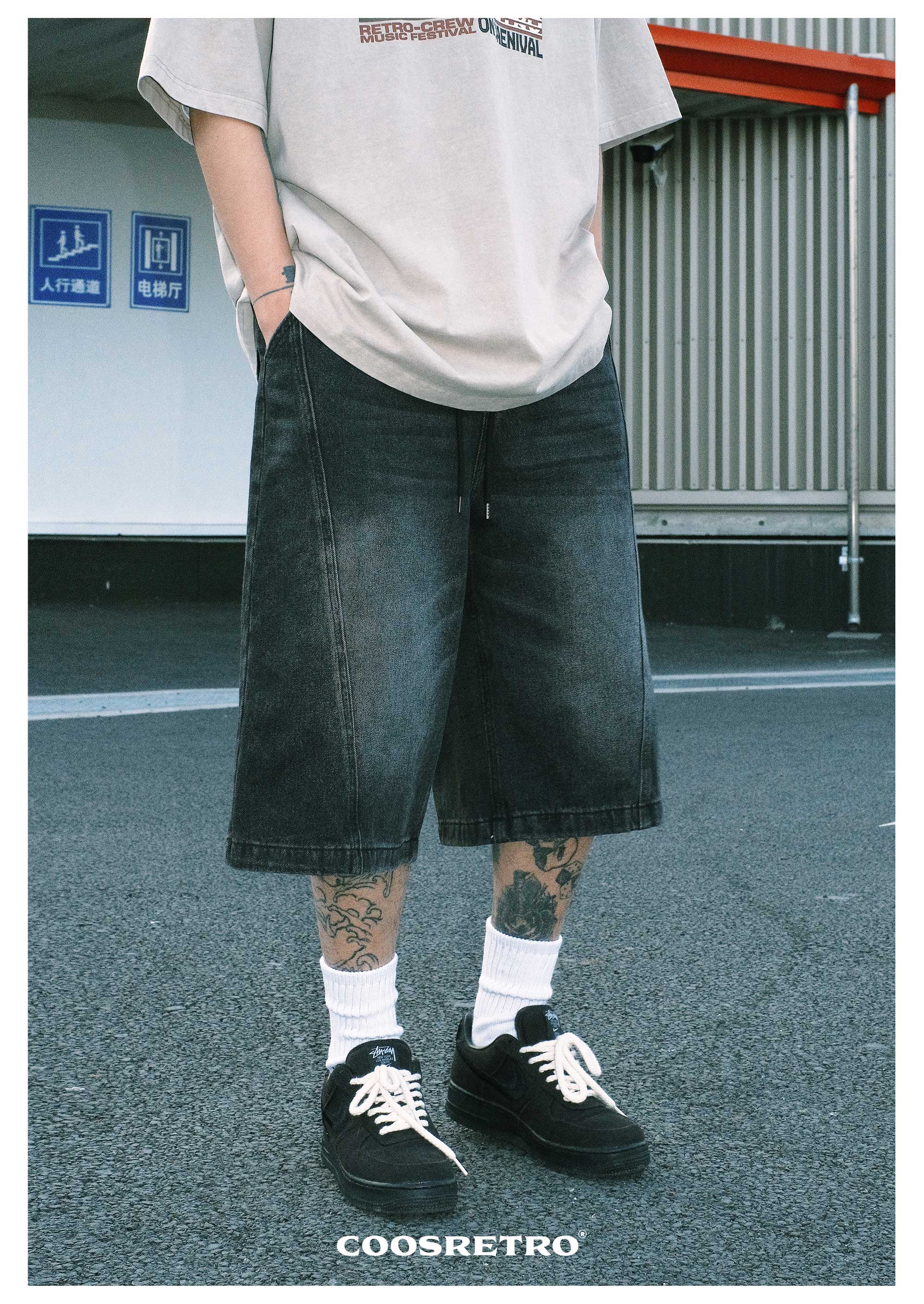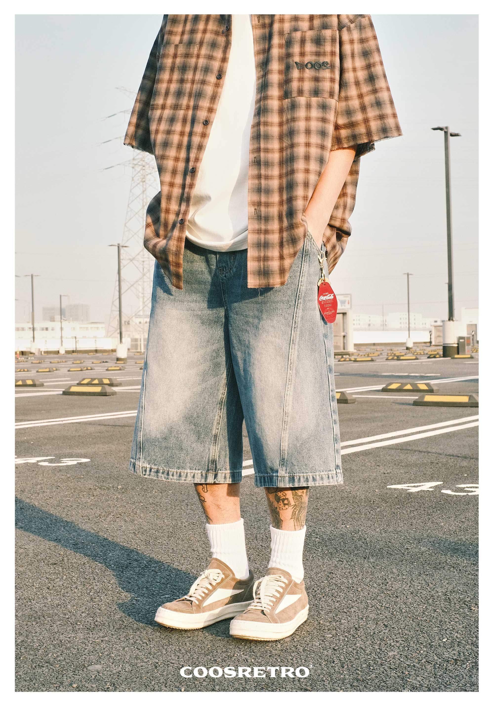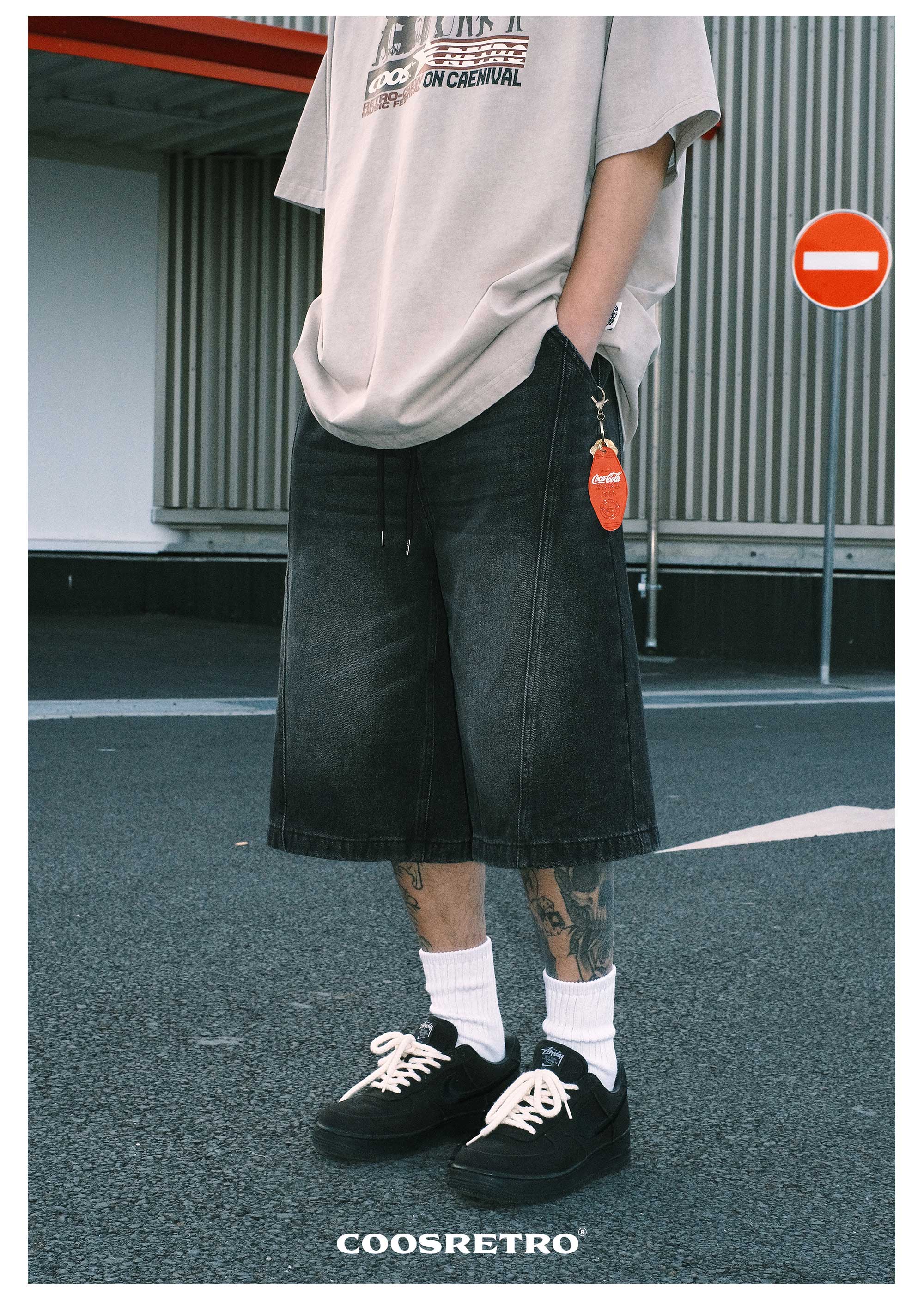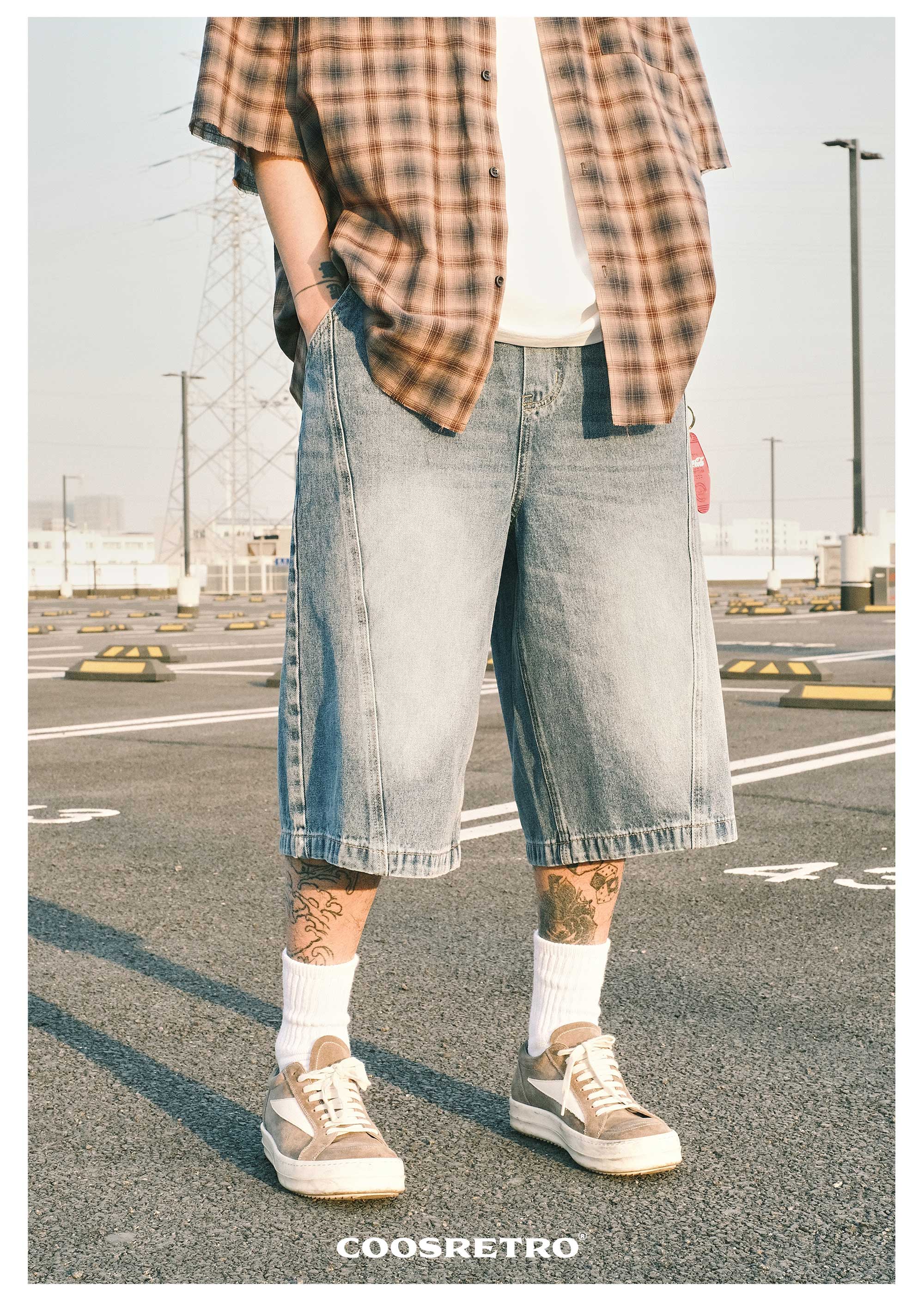 CoosRetro Retro Three-dimensional Cut Line Polished White Seven-point Denim Shorts