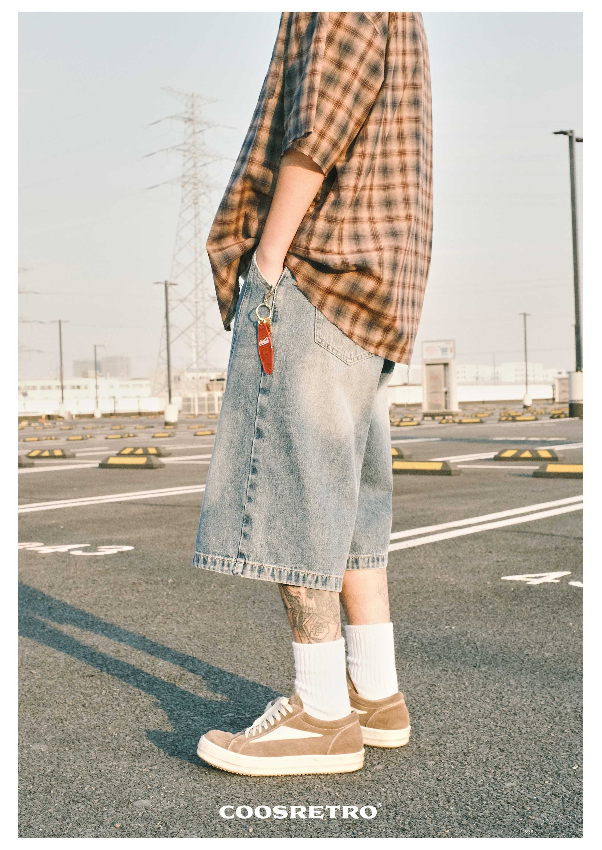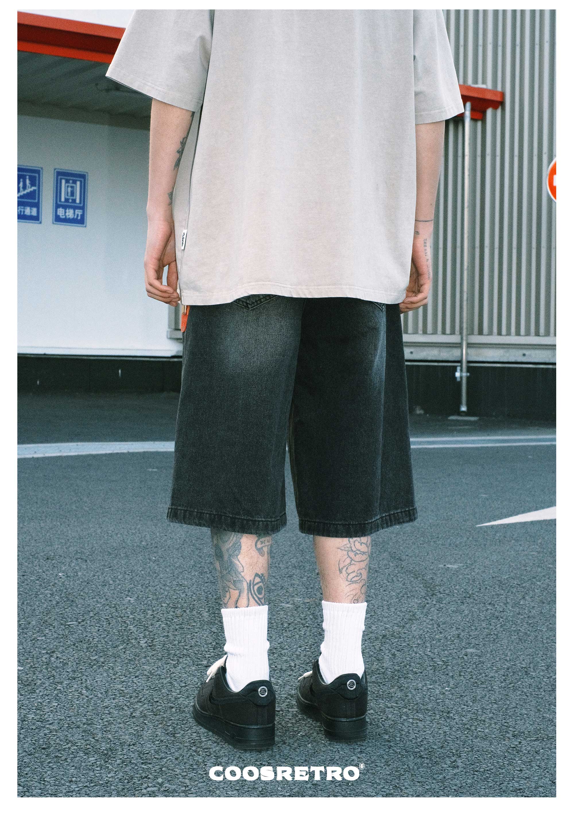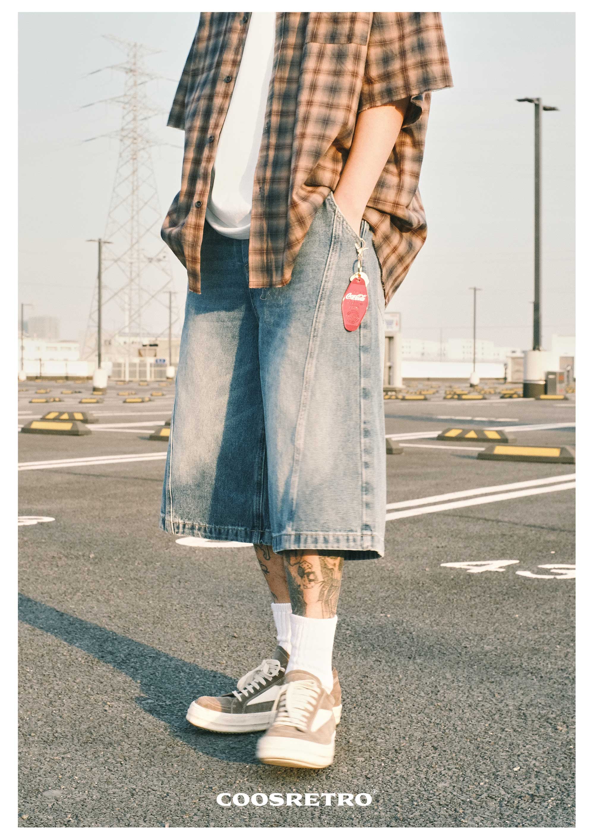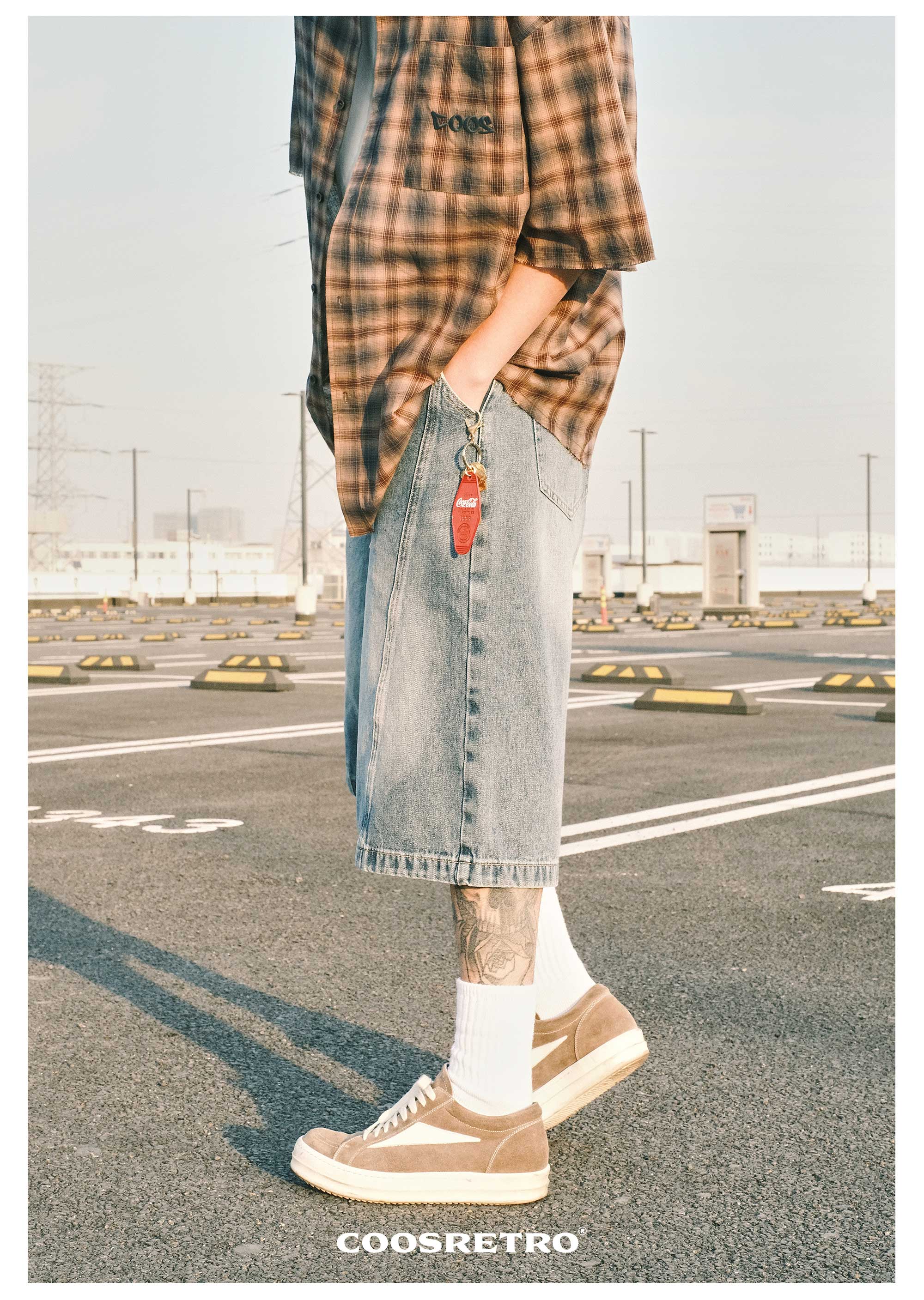 CoosRetro Retro Three-dimensional Cut Line Polished White Seven-point Denim Shorts