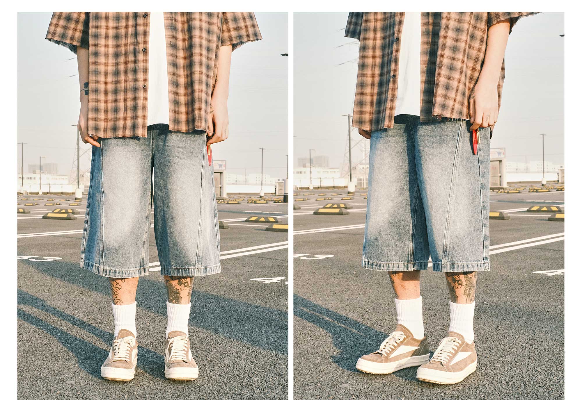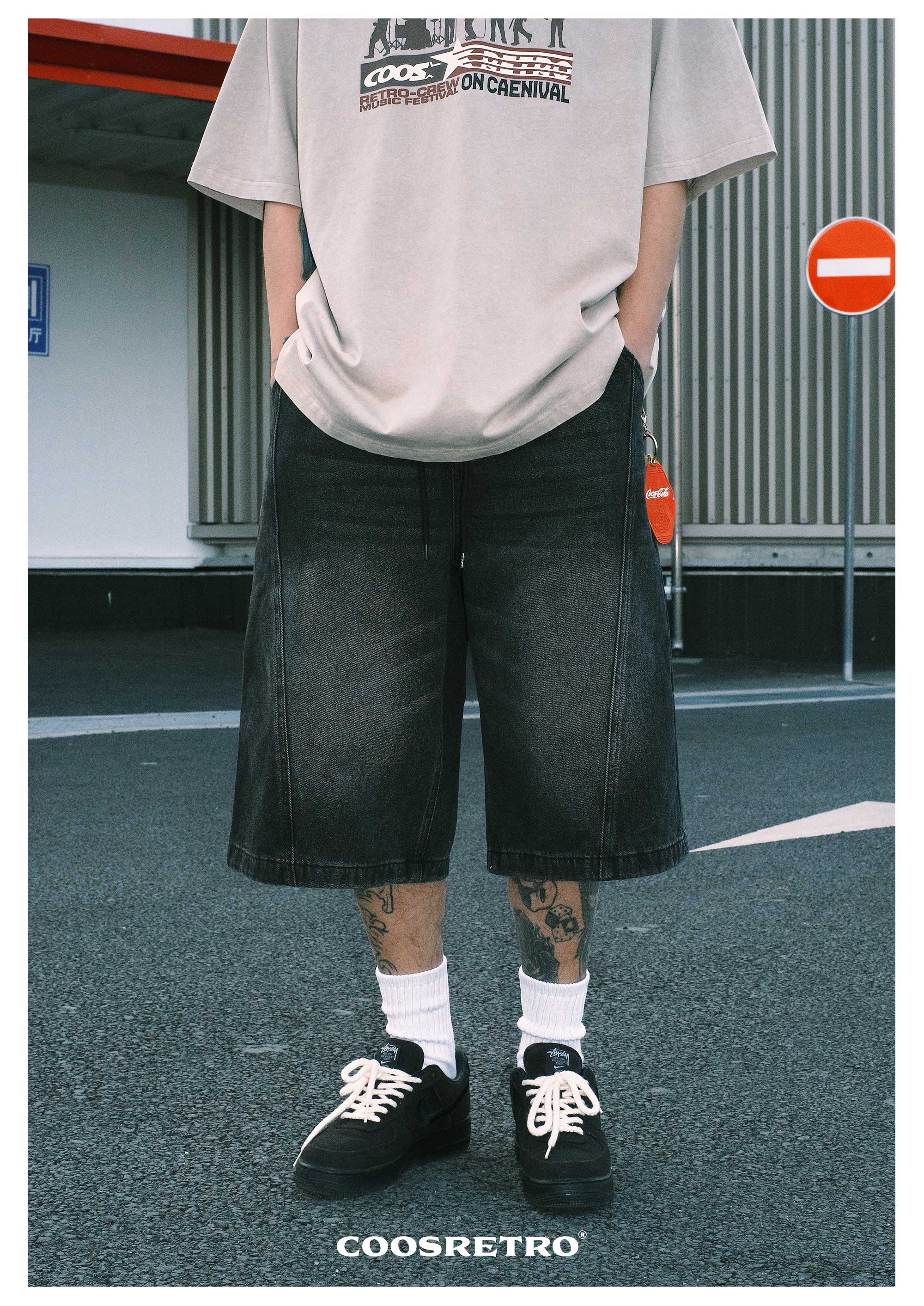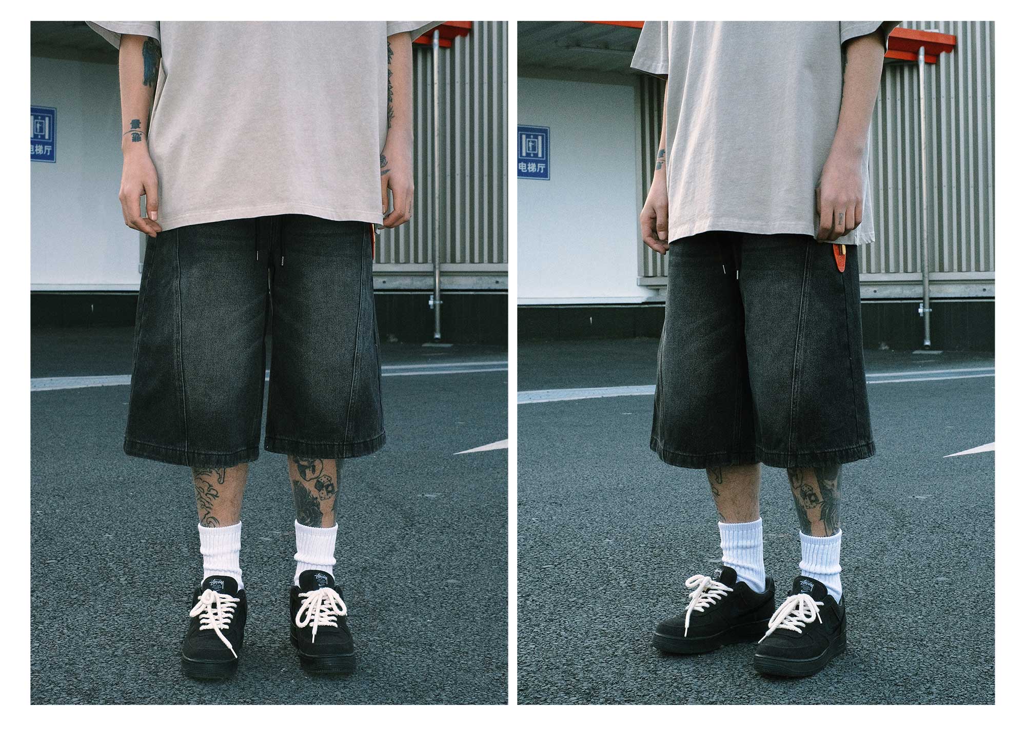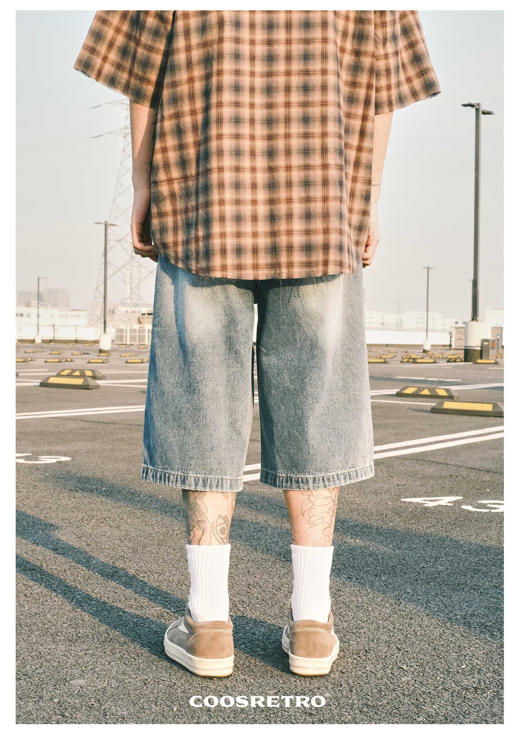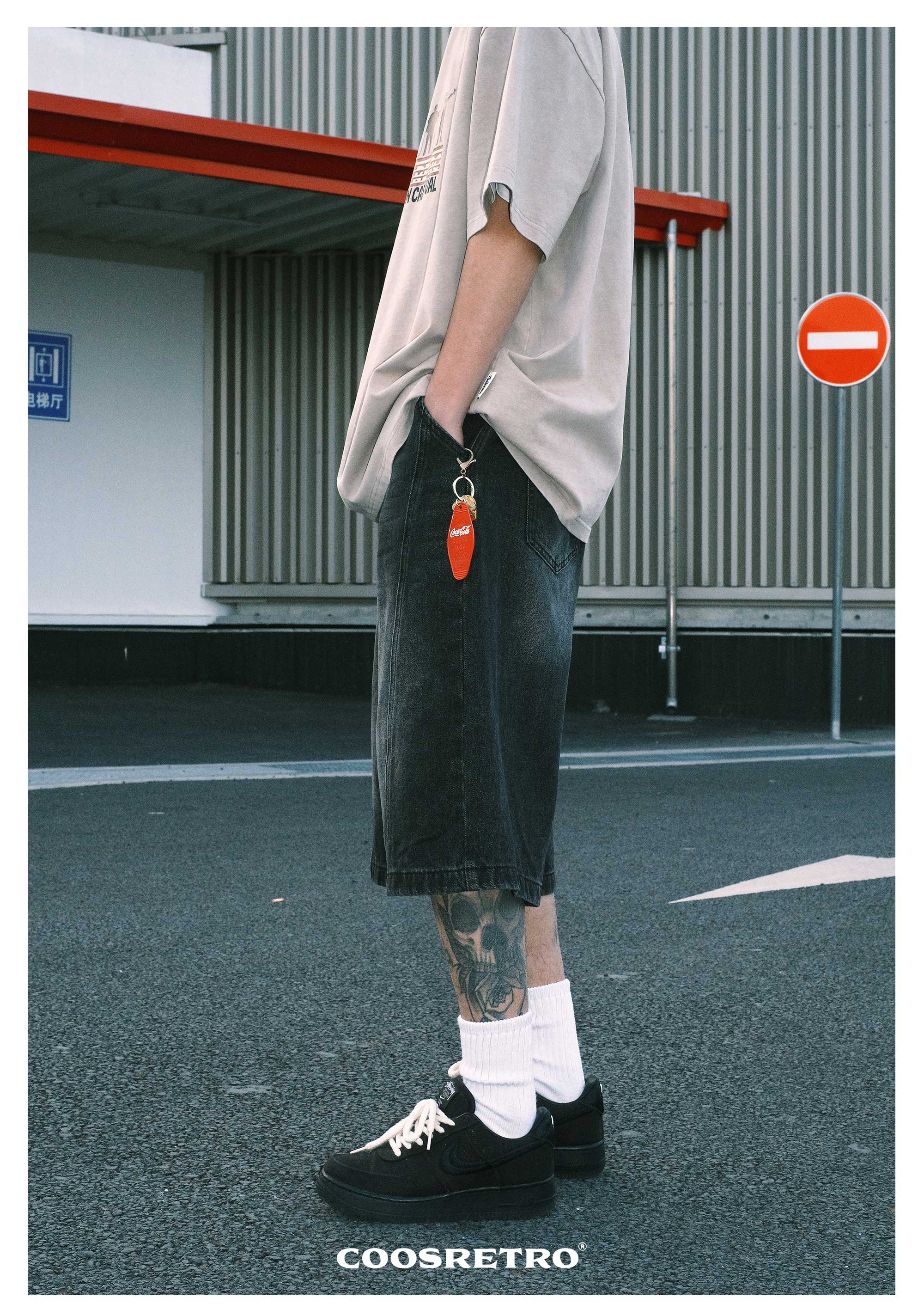CoosRetro Retro Three-dimensional Cut Line Polished White Seven-point Denim Shorts