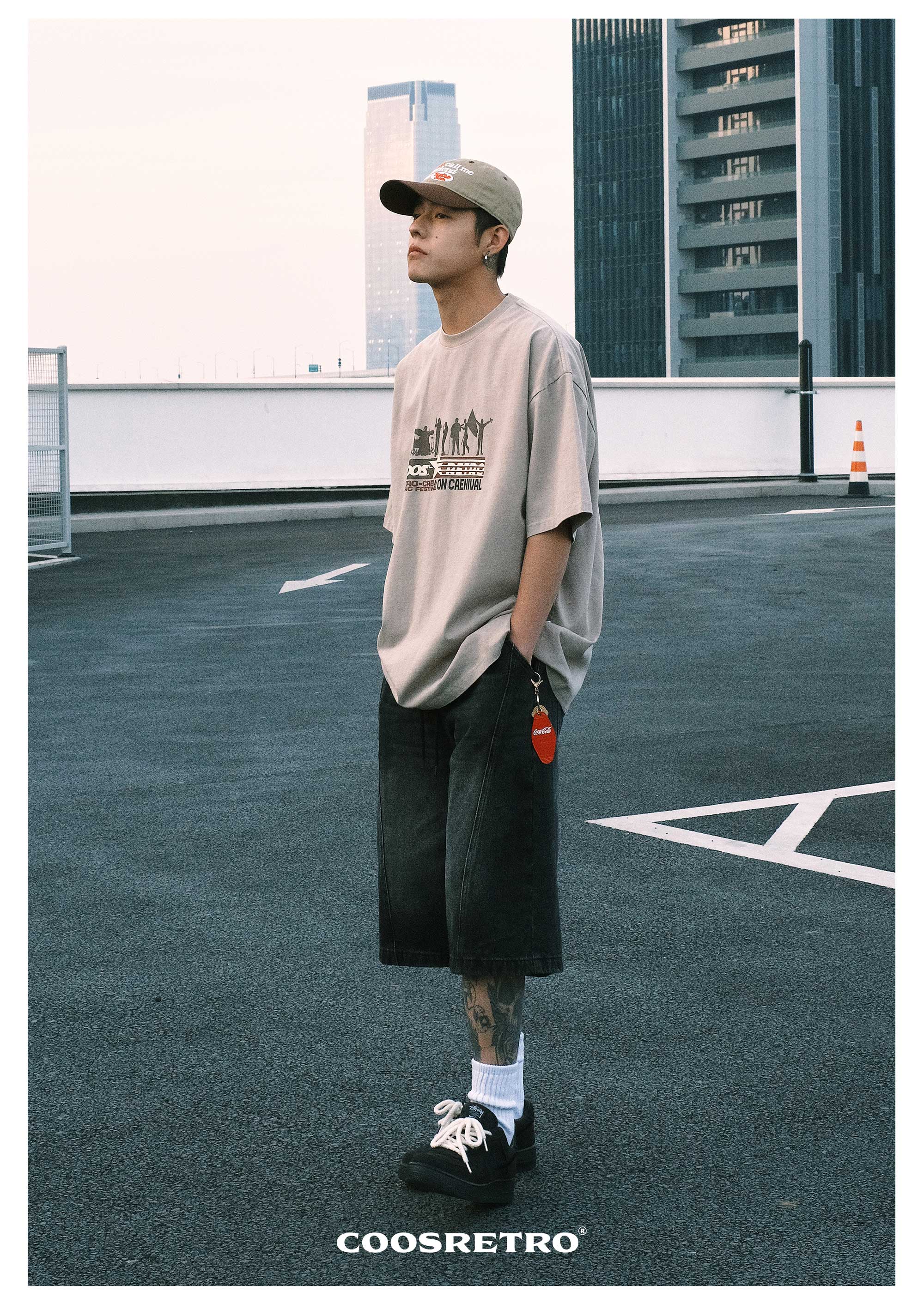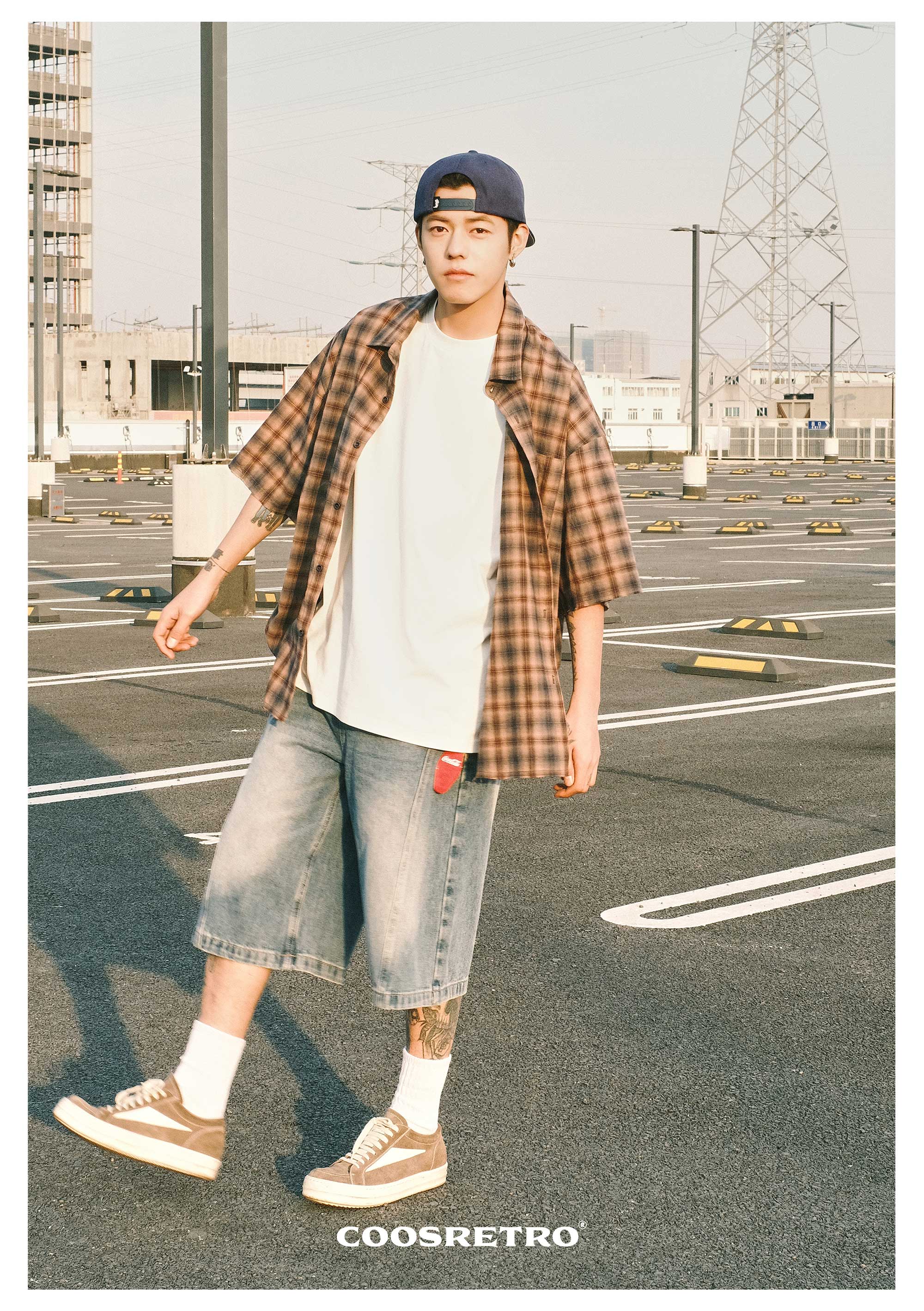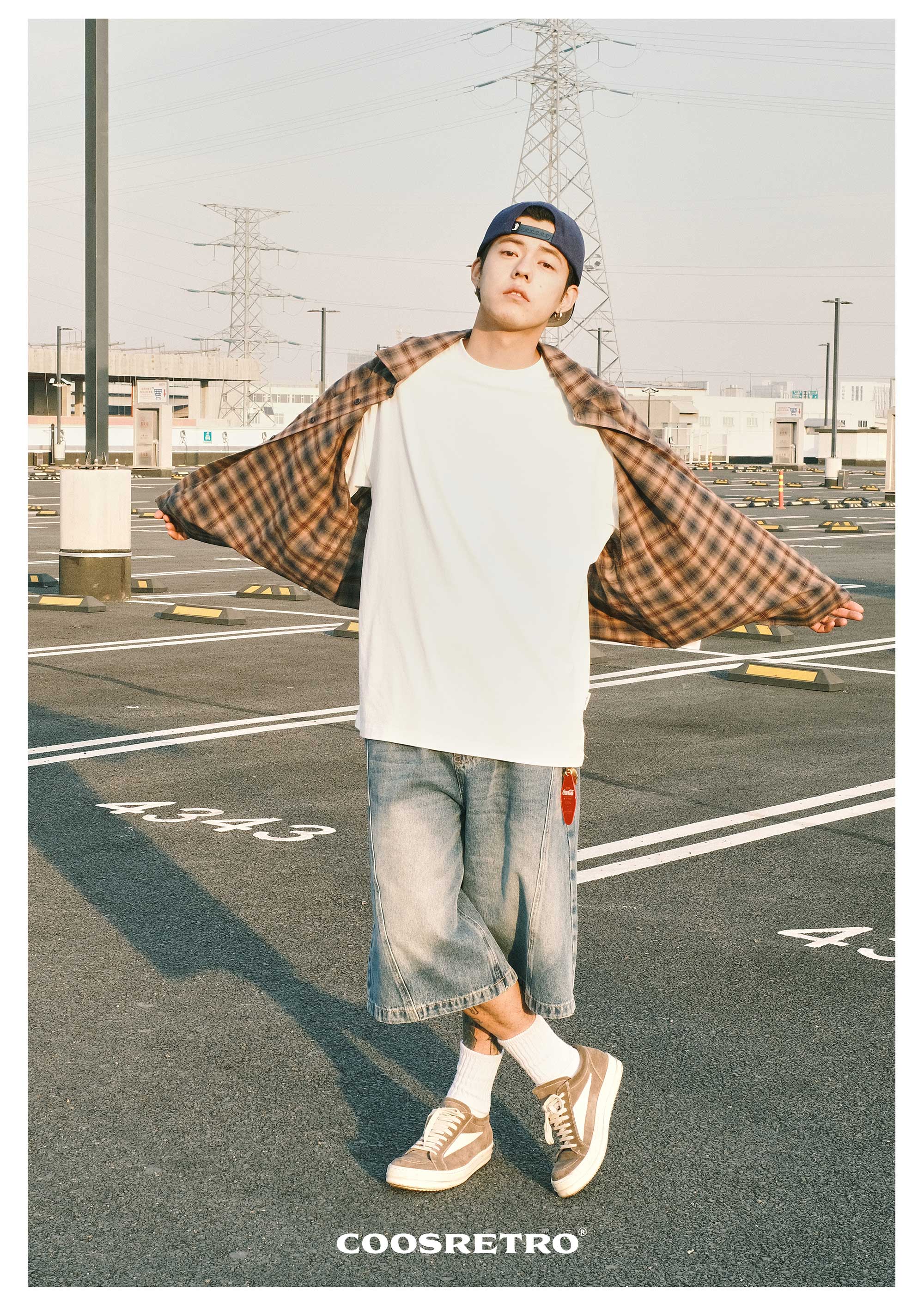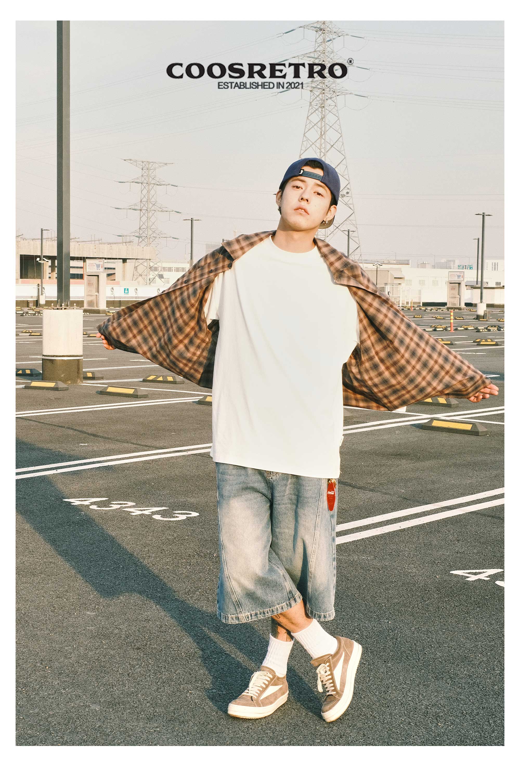 CoosRetro Retro Three-dimensional Cut Line Polished White Seven-point Denim Shorts