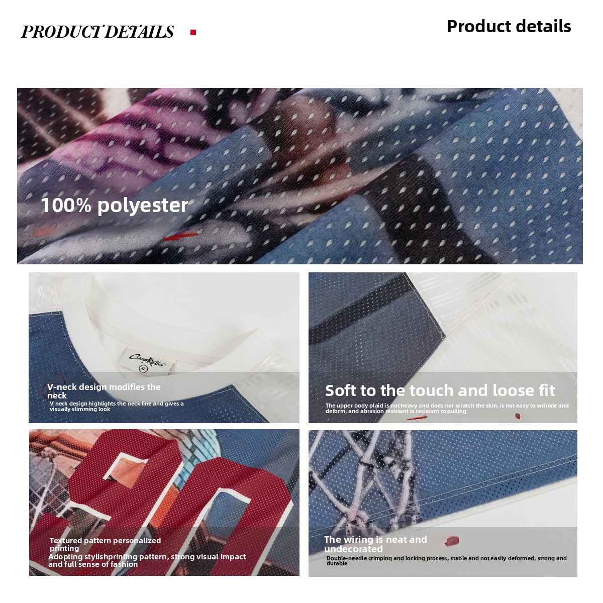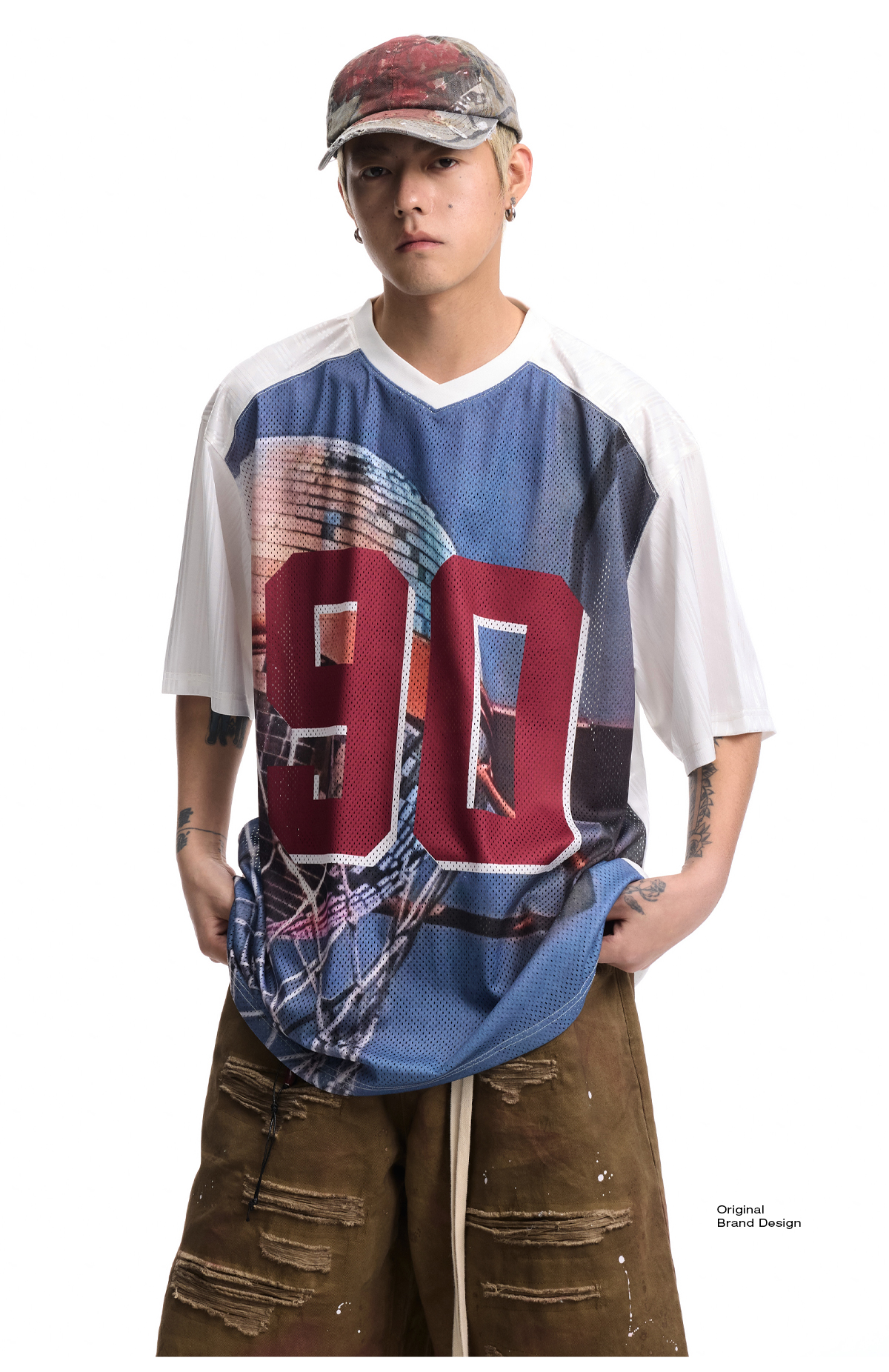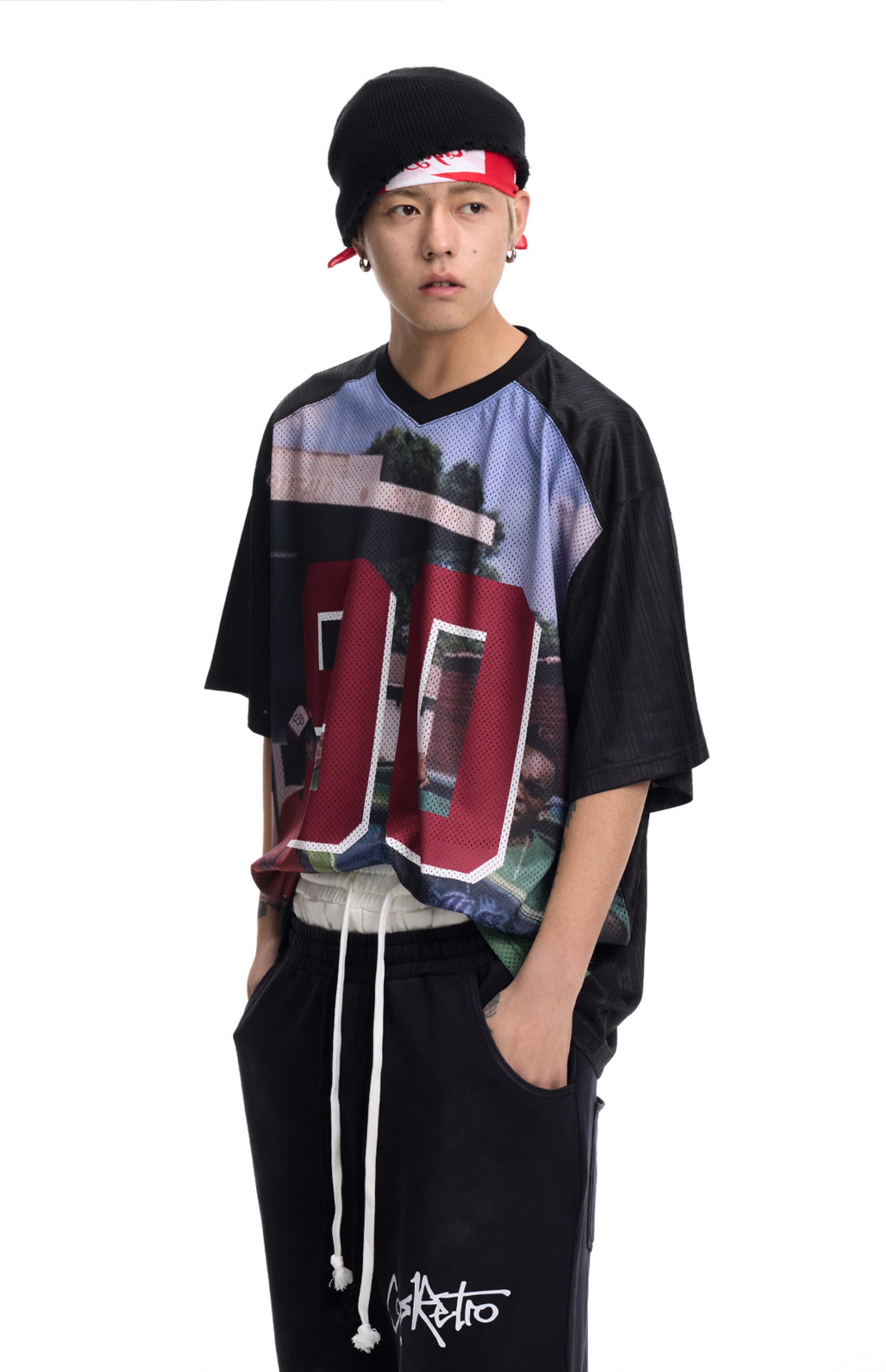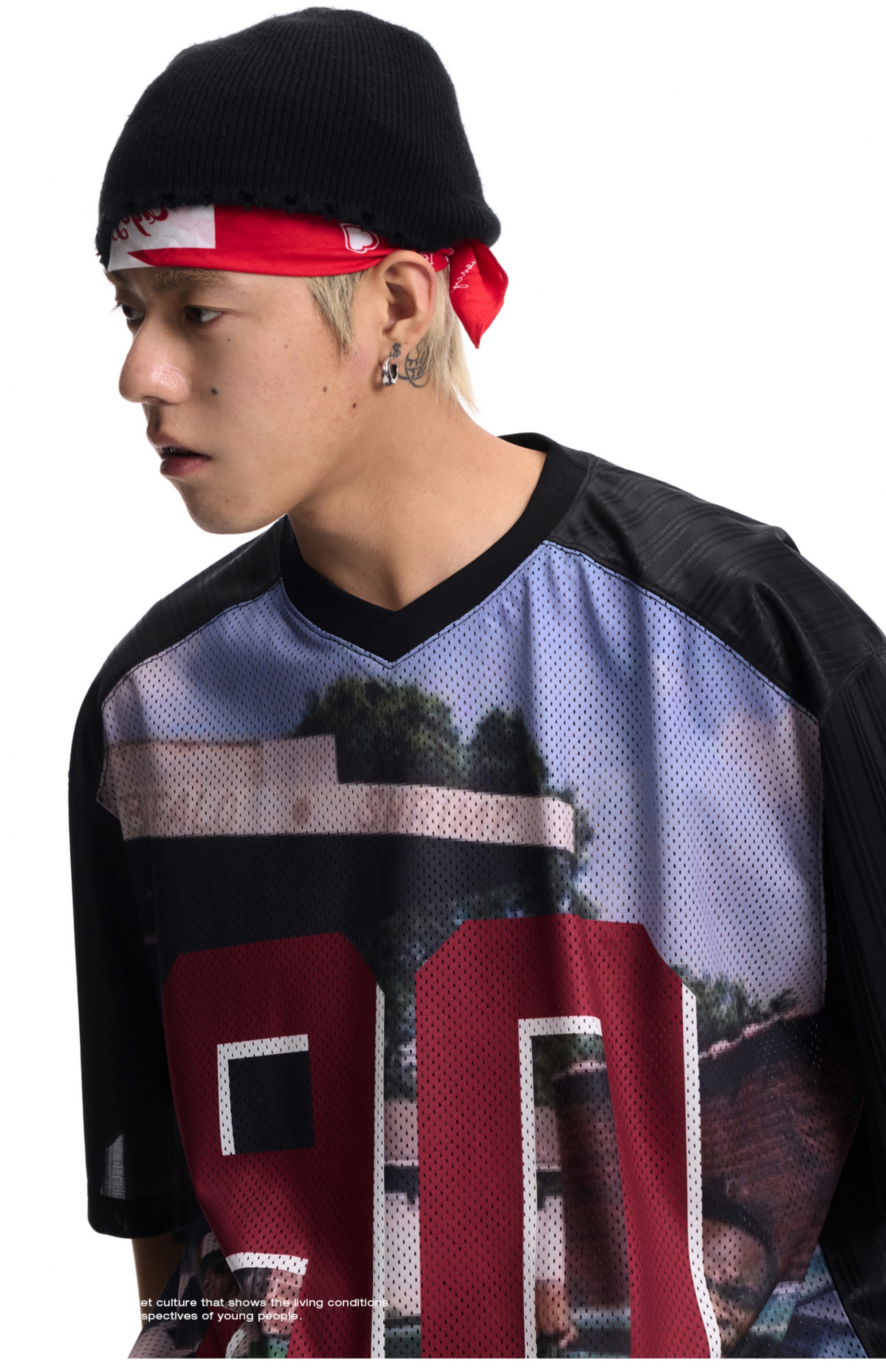 CoosRetro Vintage Street Print V-Neck Jersey Tee