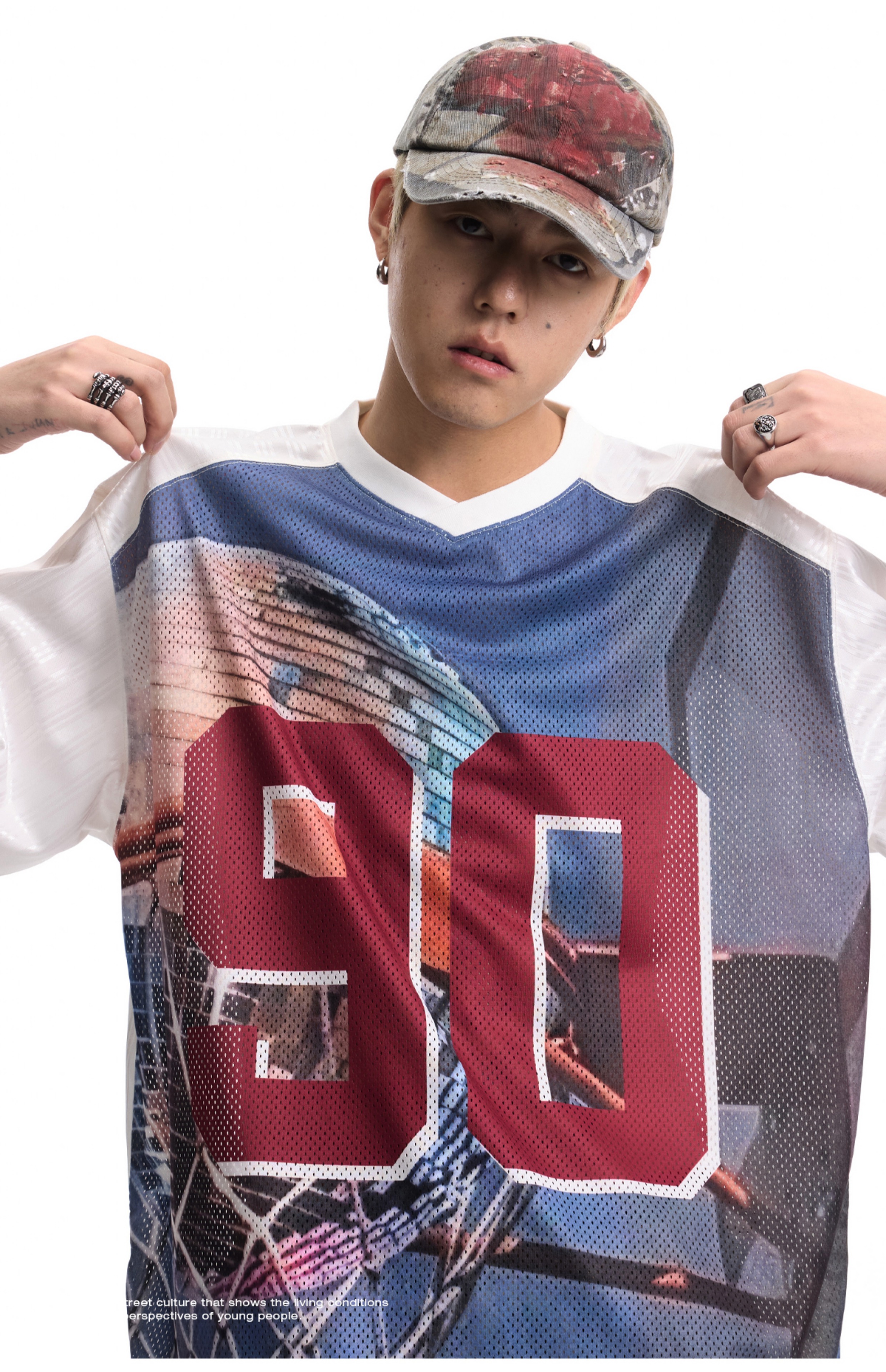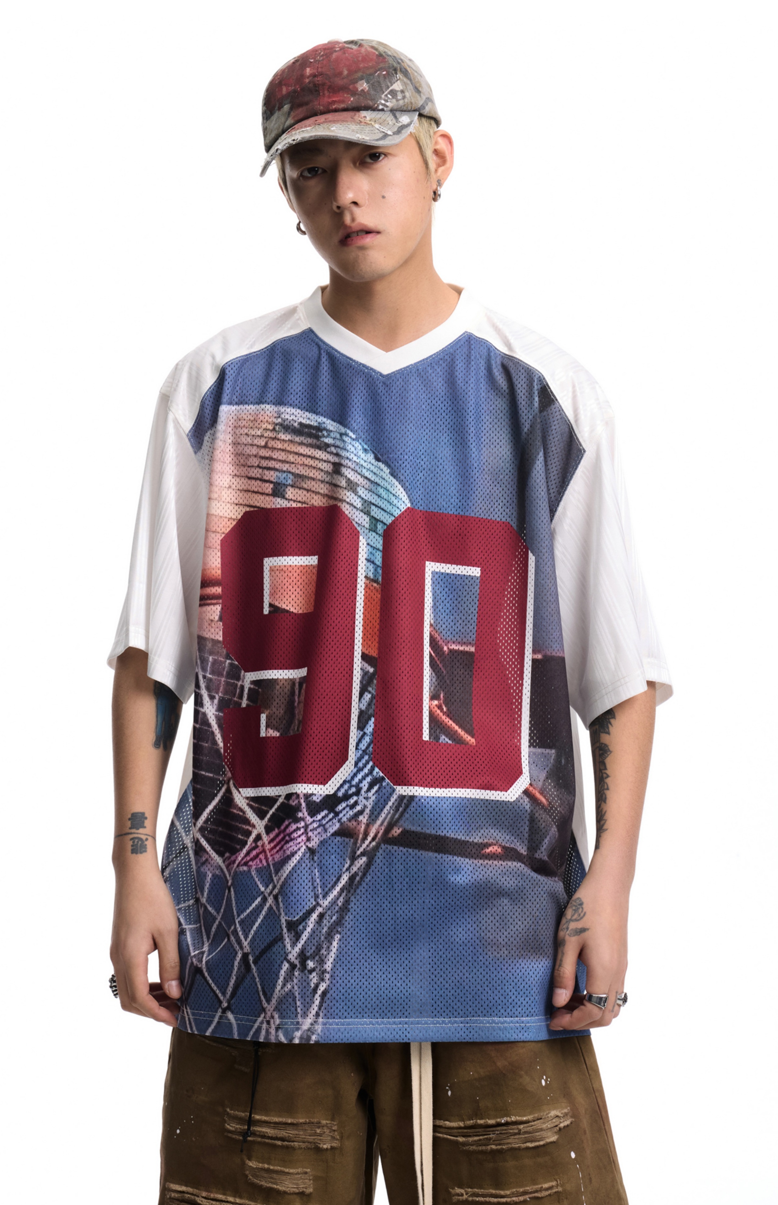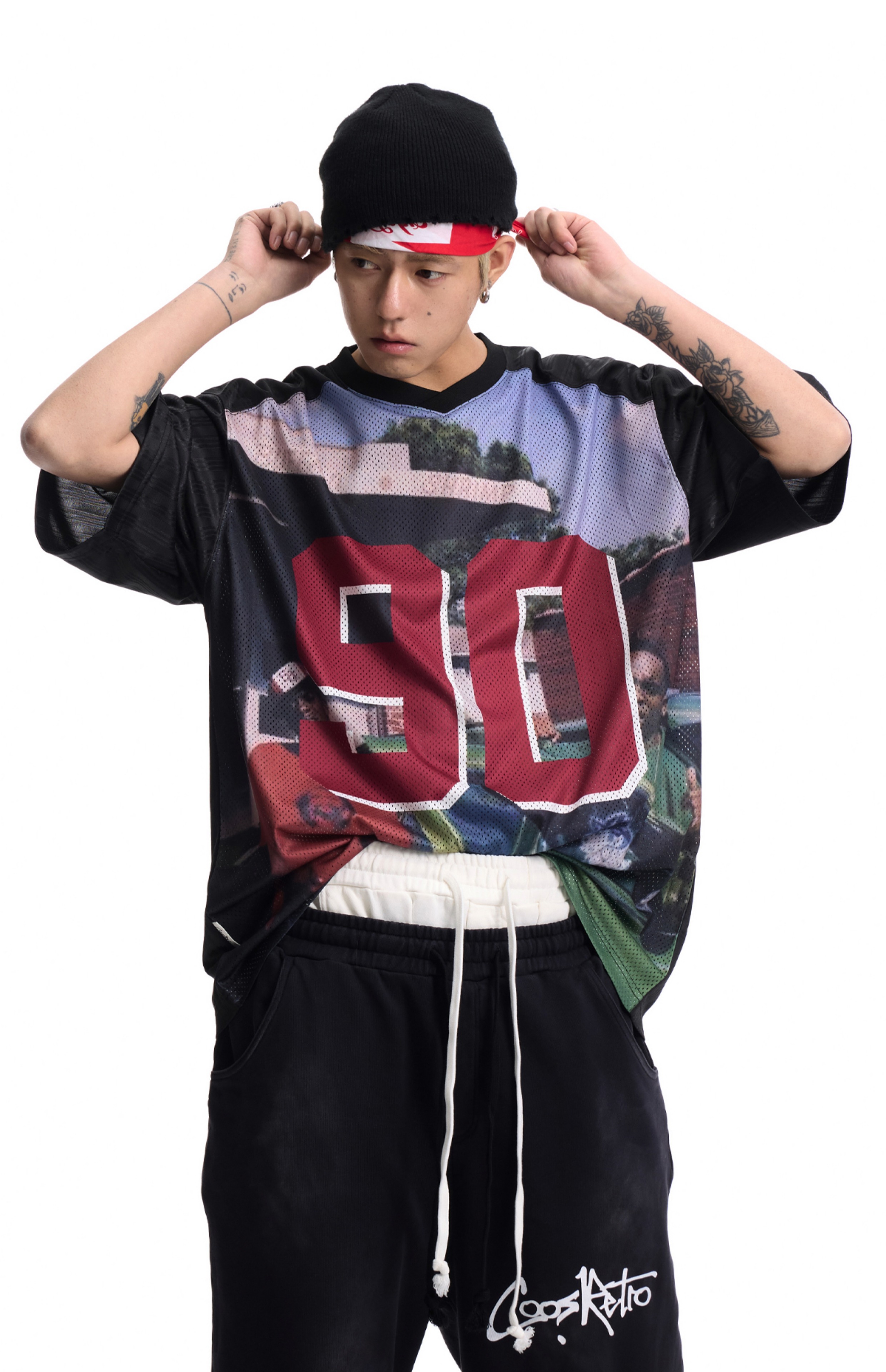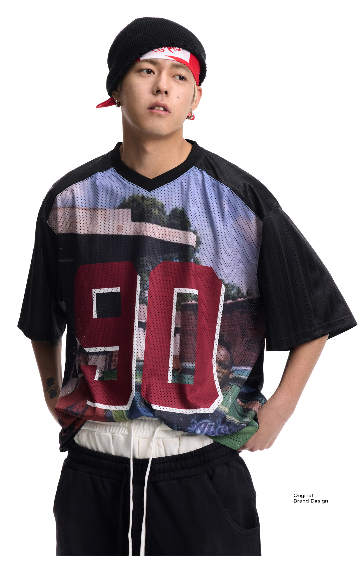 CoosRetro Vintage Street Print V-Neck Jersey Tee