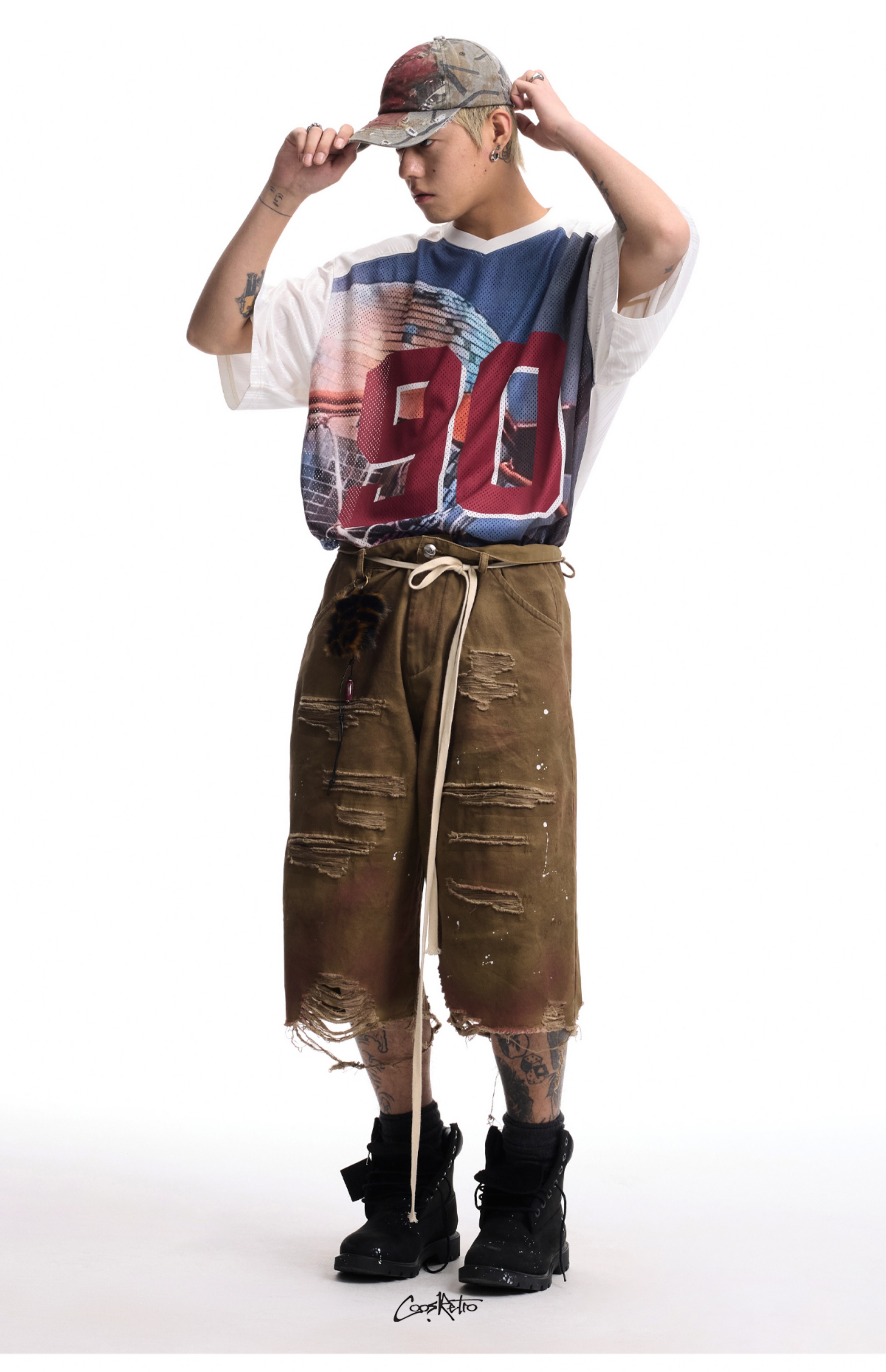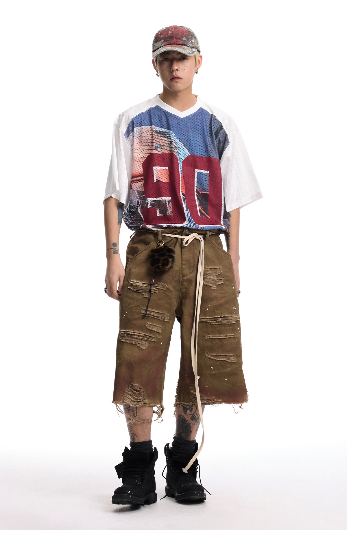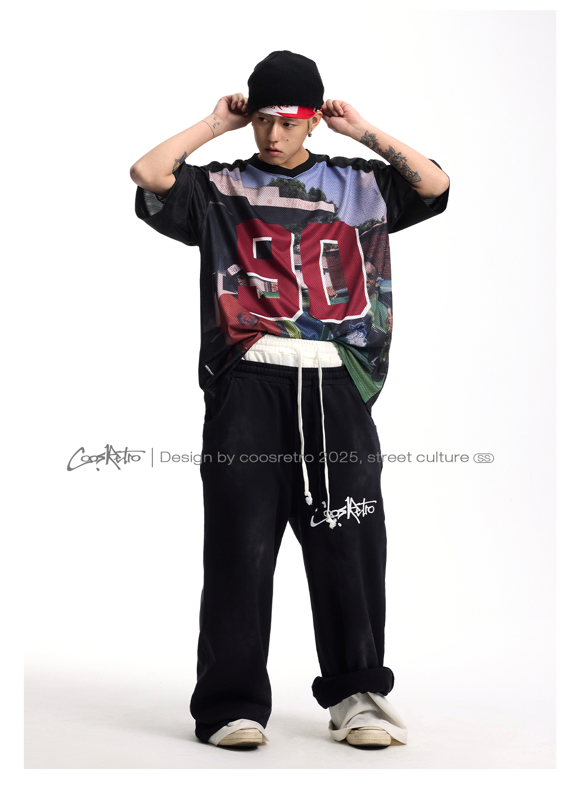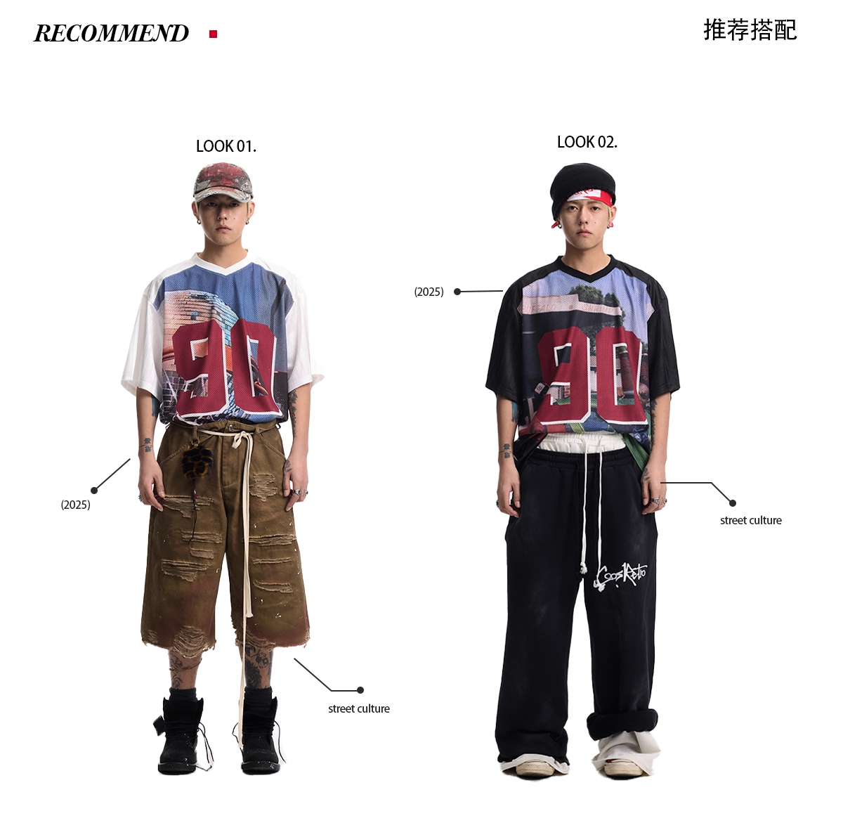 CoosRetro Vintage Street Print V-Neck Jersey Tee