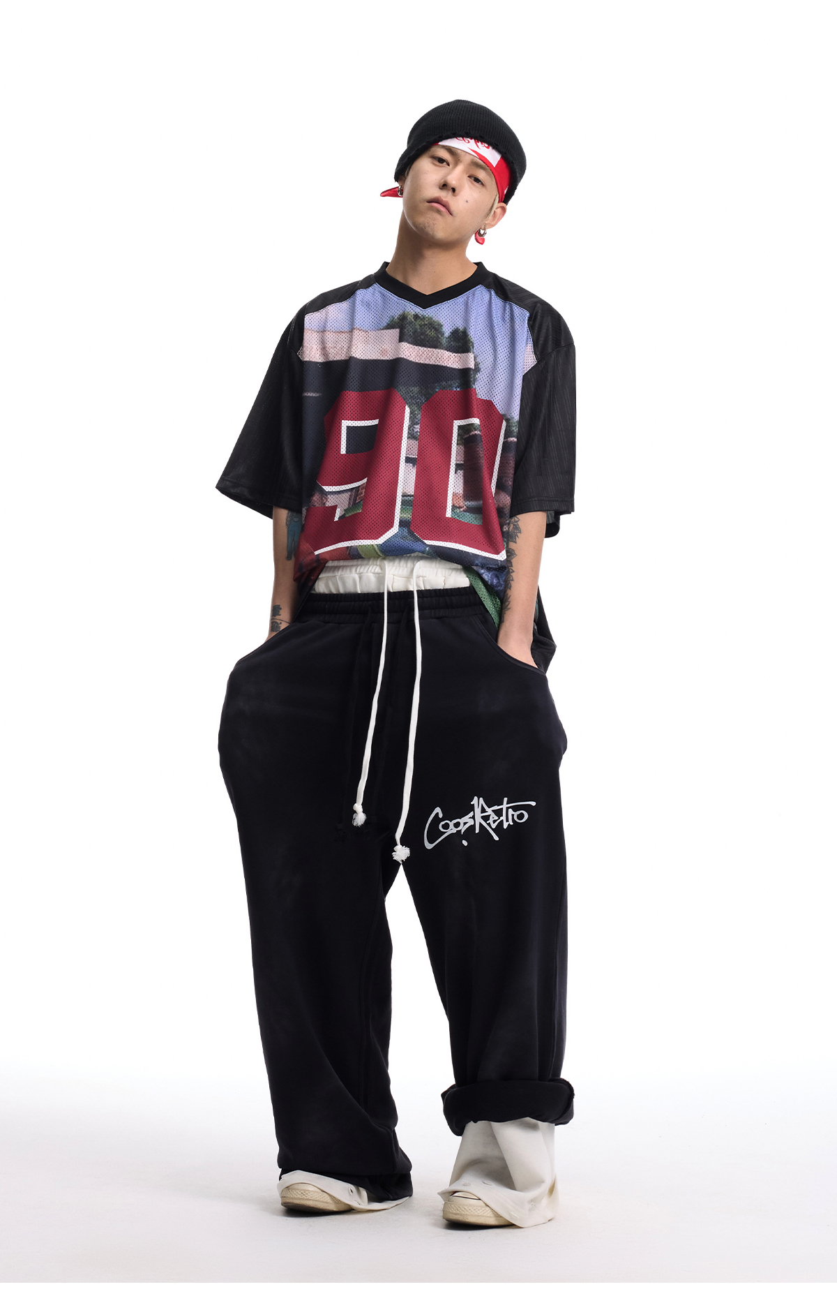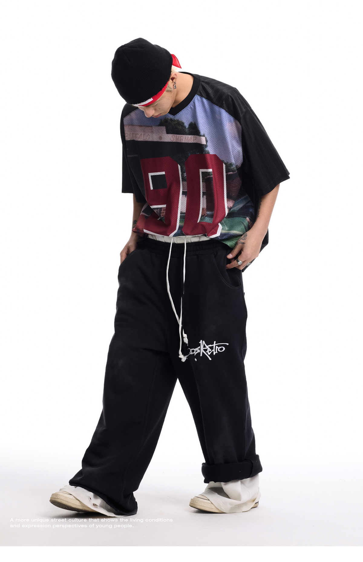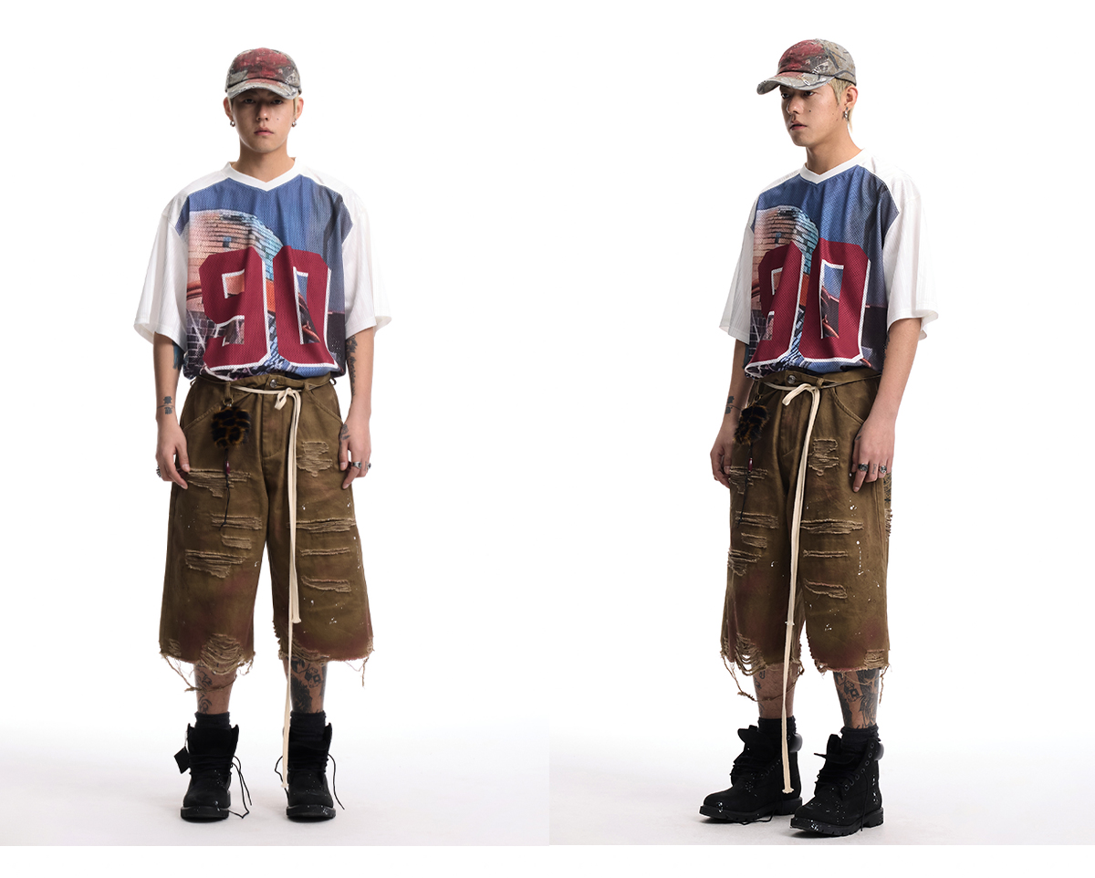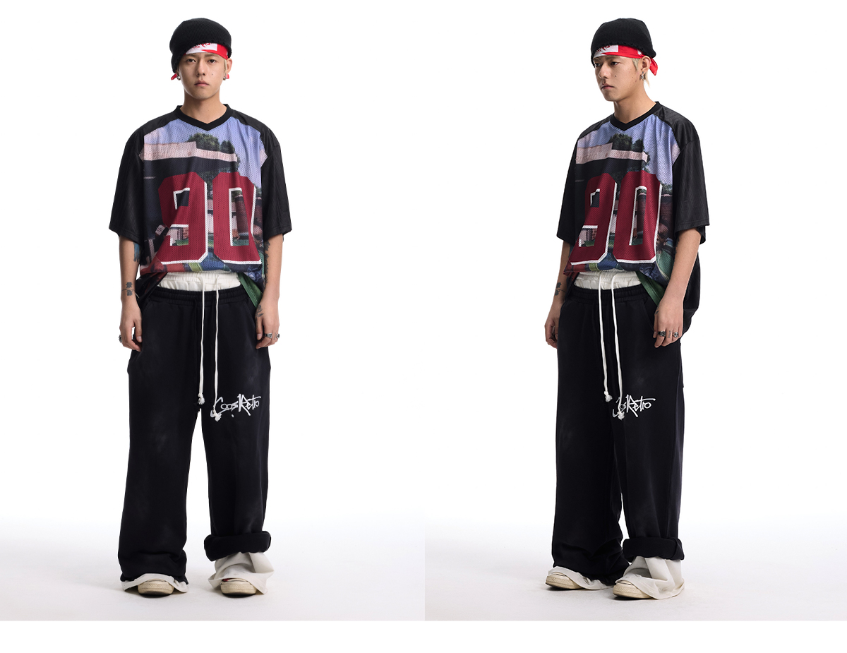 CoosRetro Vintage Street Print V-Neck Jersey Tee