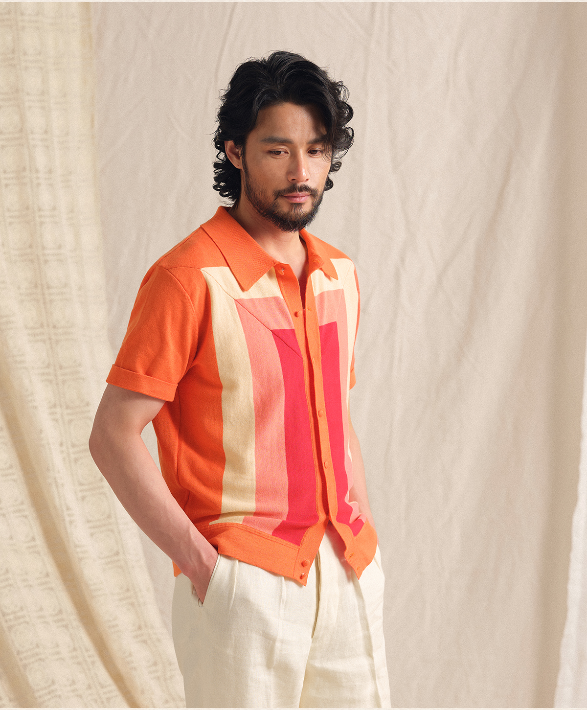 CULTAM Vintage Cardigan Short Sleeve Knitted Polo Shirt