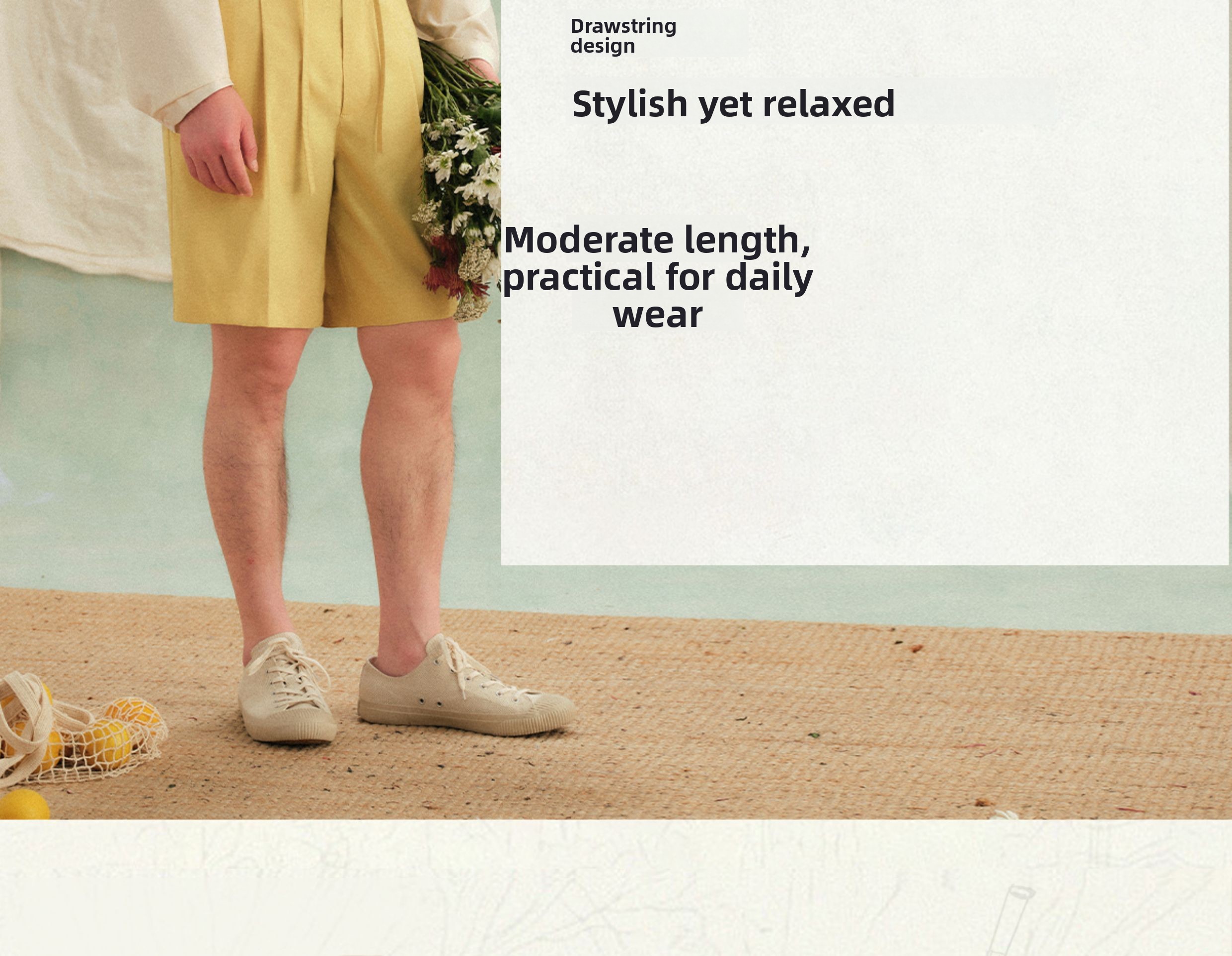 CULTUM Lazy Drawstring Single-pleated Straight-leg Loose Shorts