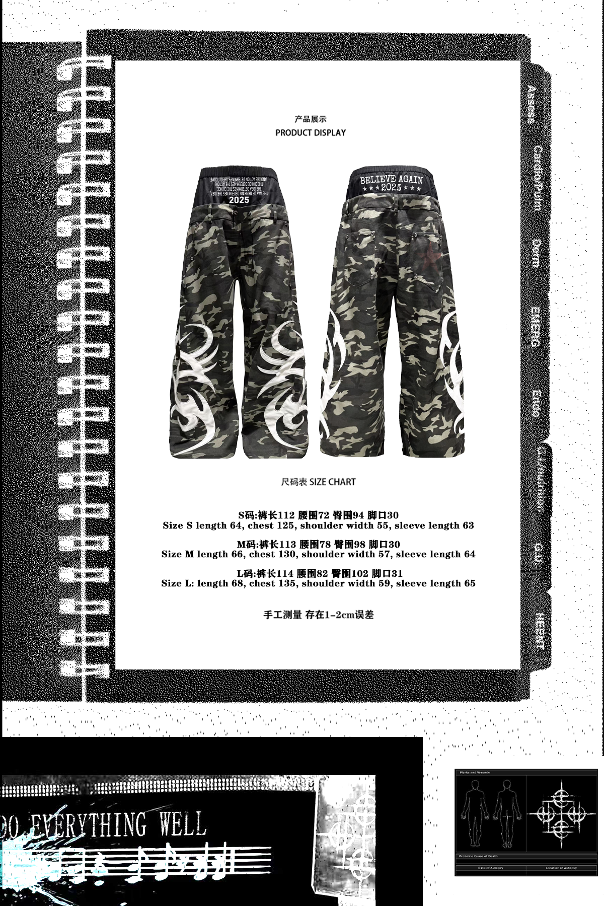 DETW Camouflage Double-waisted Boxing Pants Profile Three-dimensional Casual Pants
