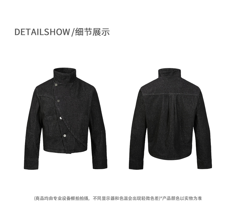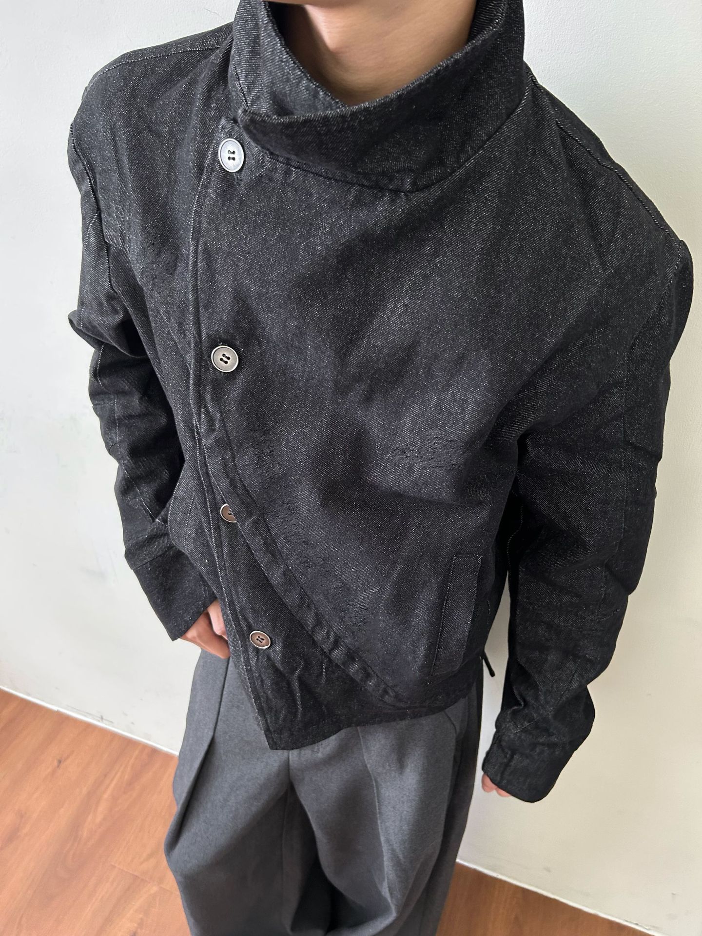 EME Stand-up Collar Button-down Denim Irregular Jacket