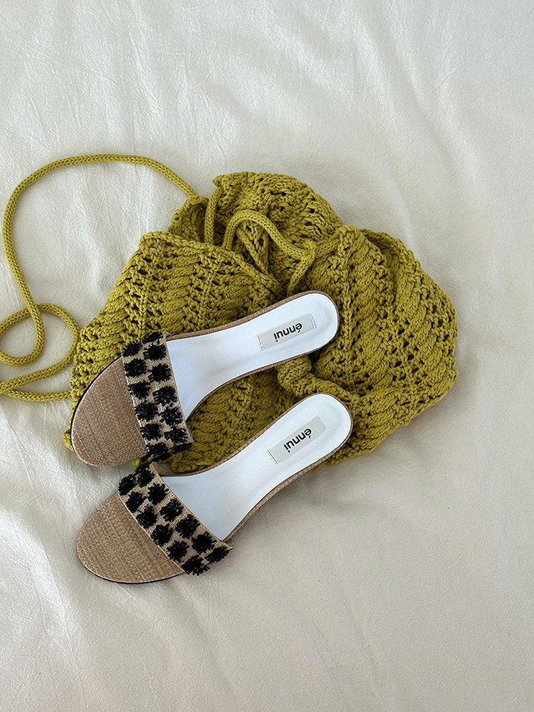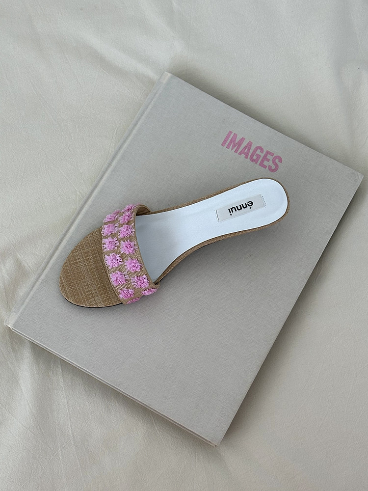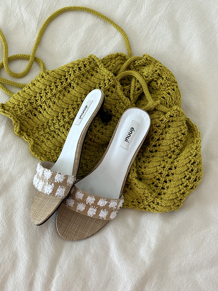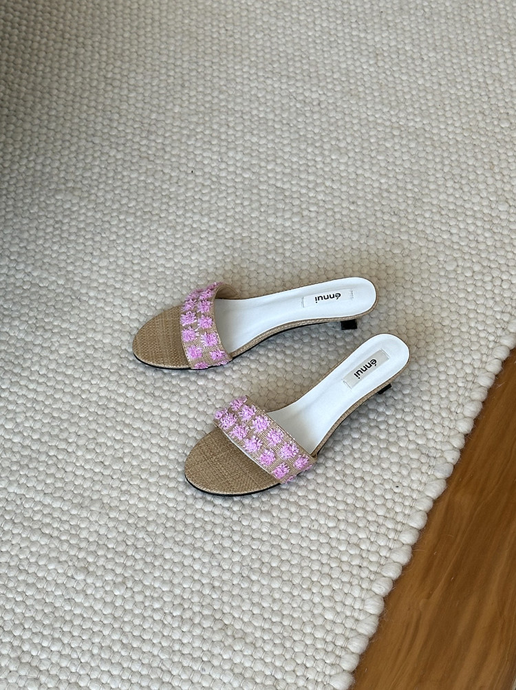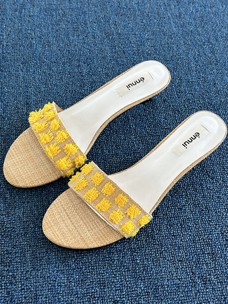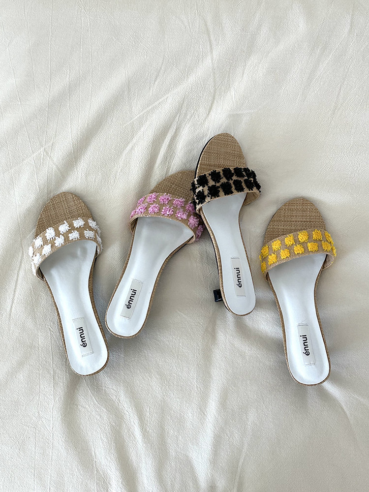 ENNUI Simple and Comfortable One-word Strap Low-heeled Small-heeled Slippers