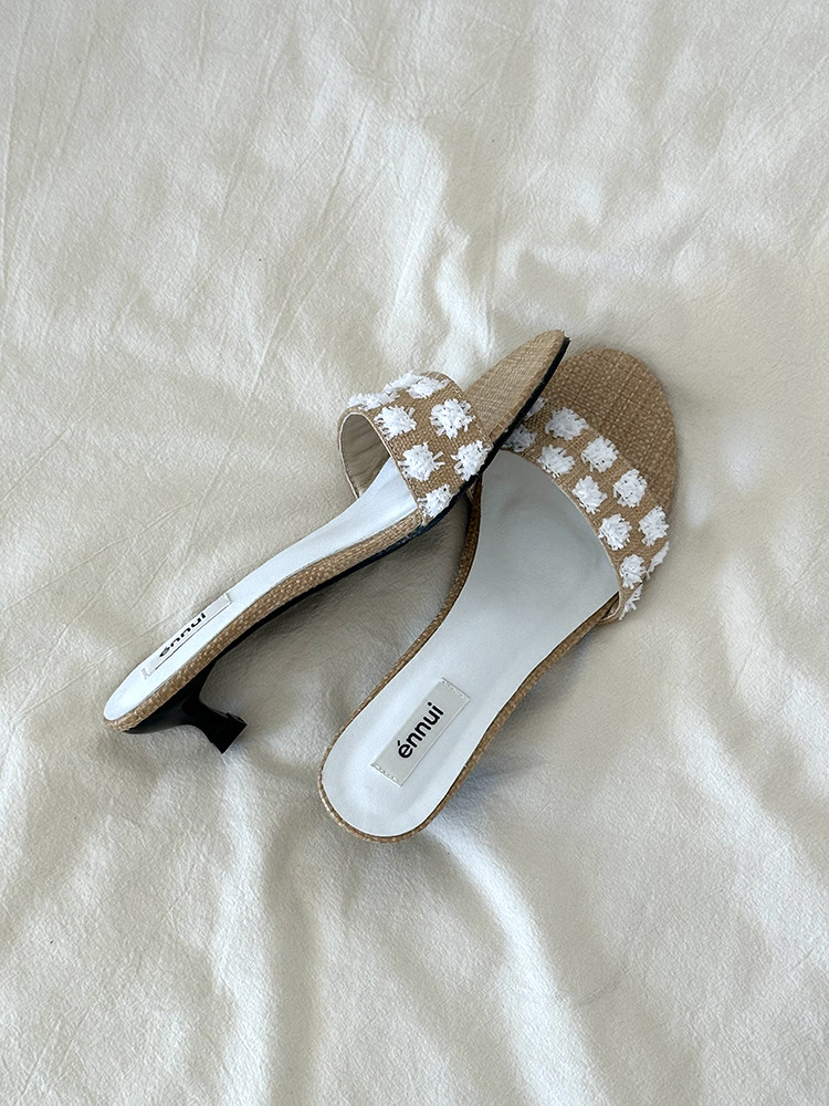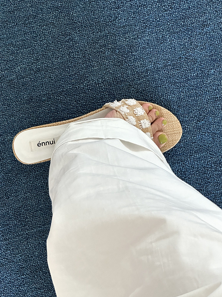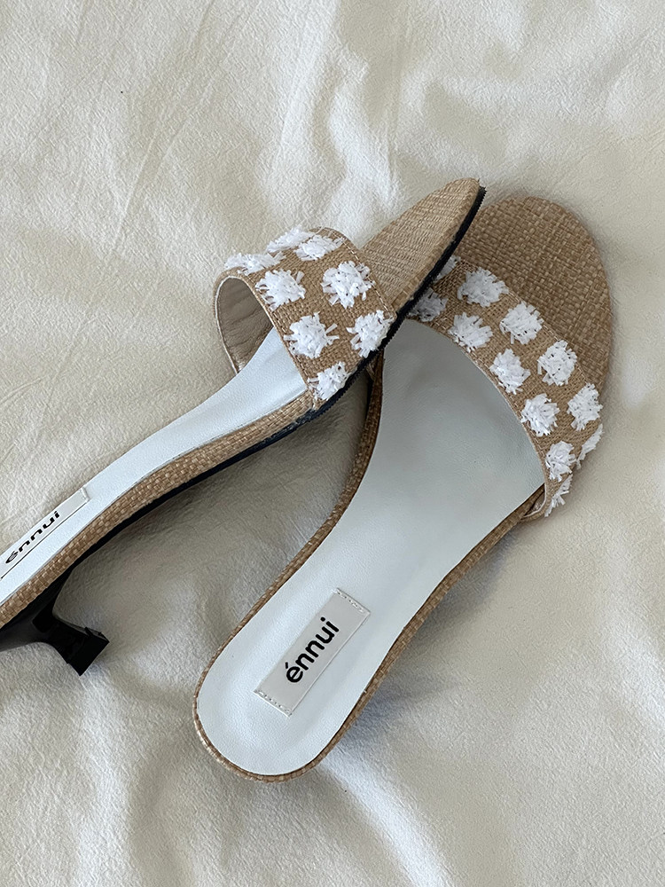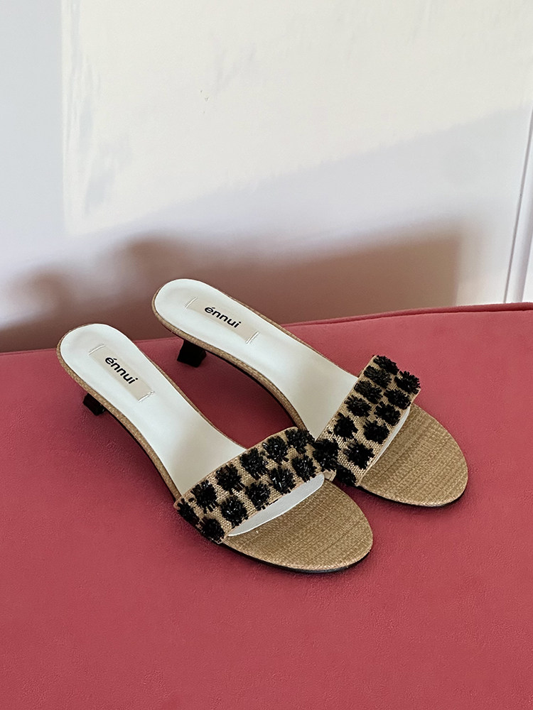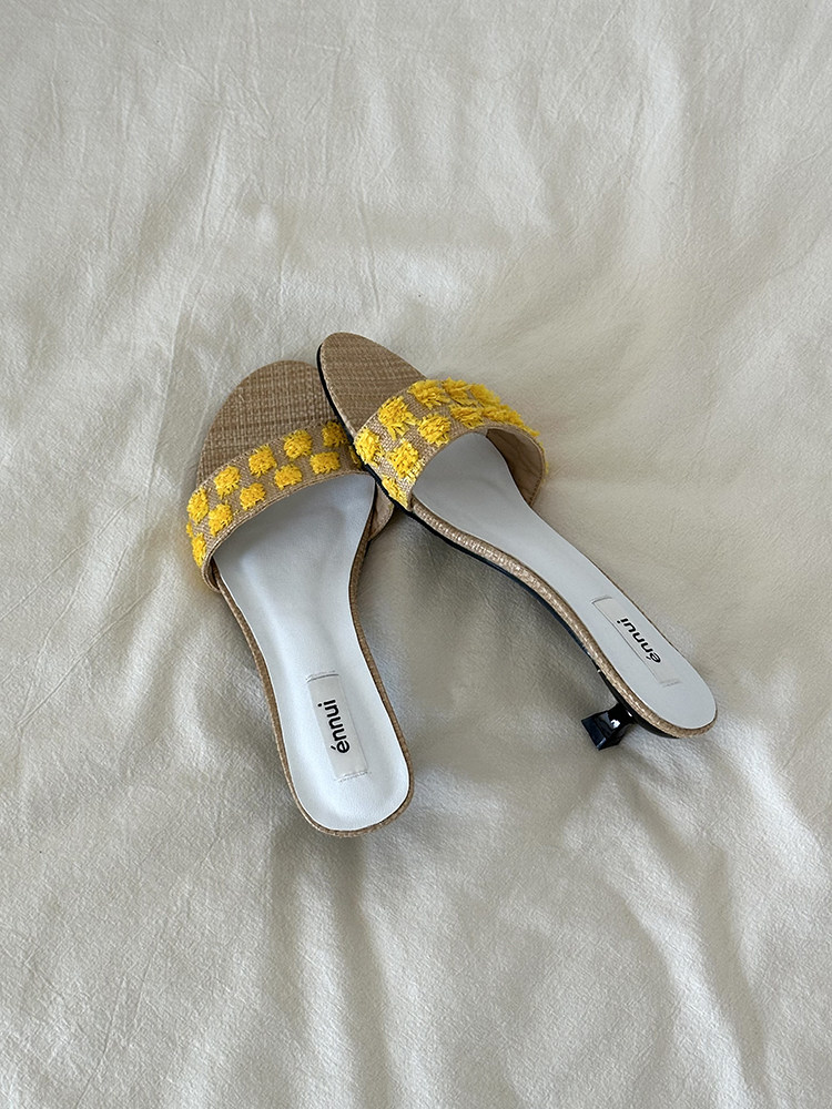 ENNUI Simple and Comfortable One-word Strap Low-heeled Small-heeled Slippers