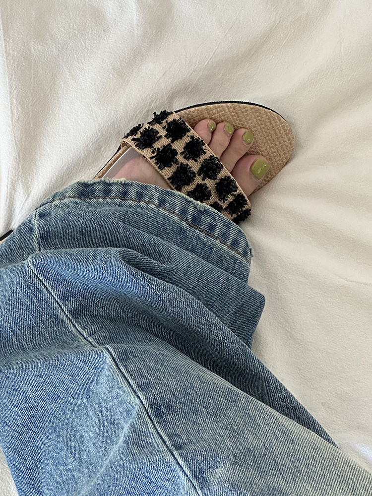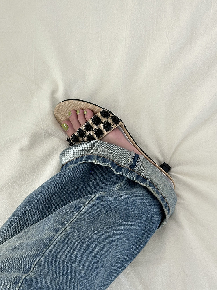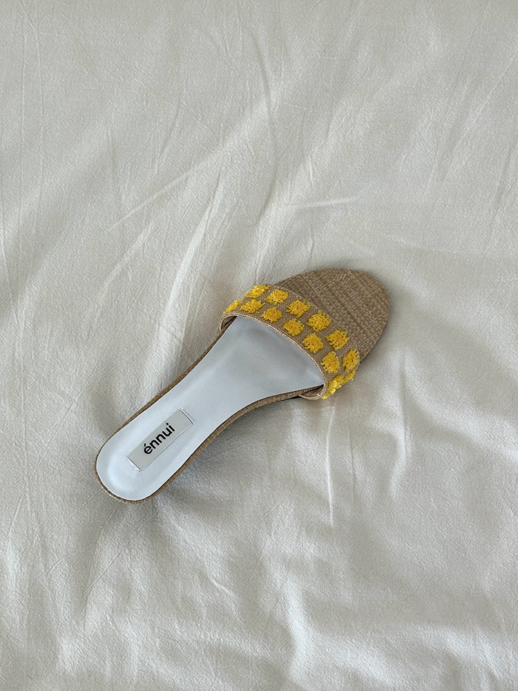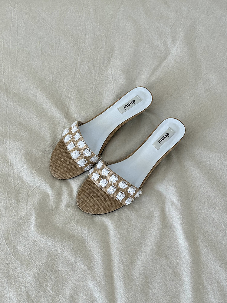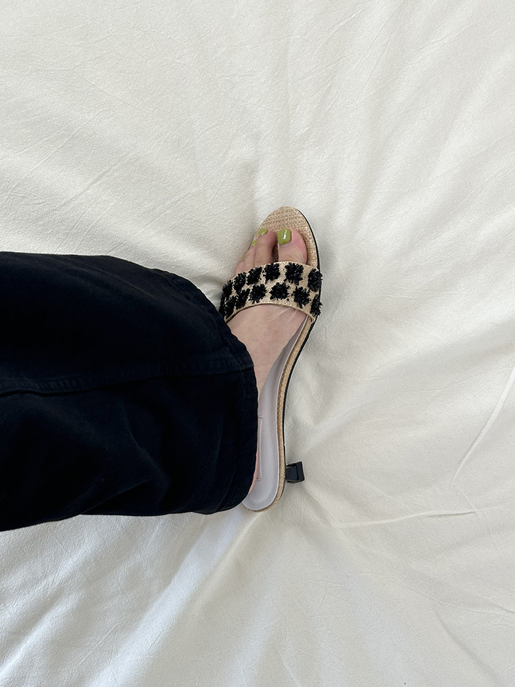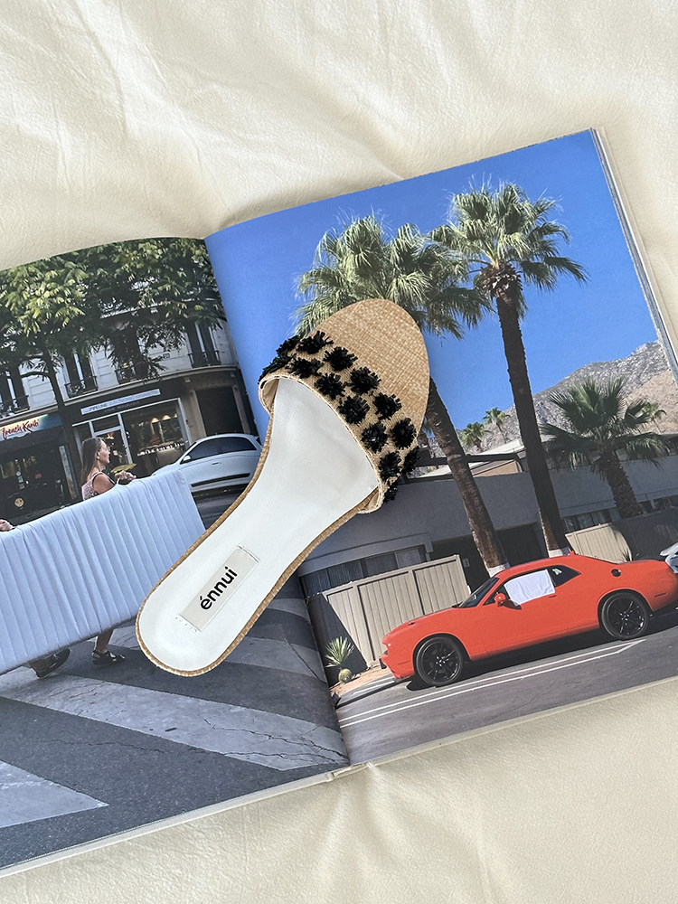 ENNUI Simple and Comfortable One-word Strap Low-heeled Small-heeled Slippers