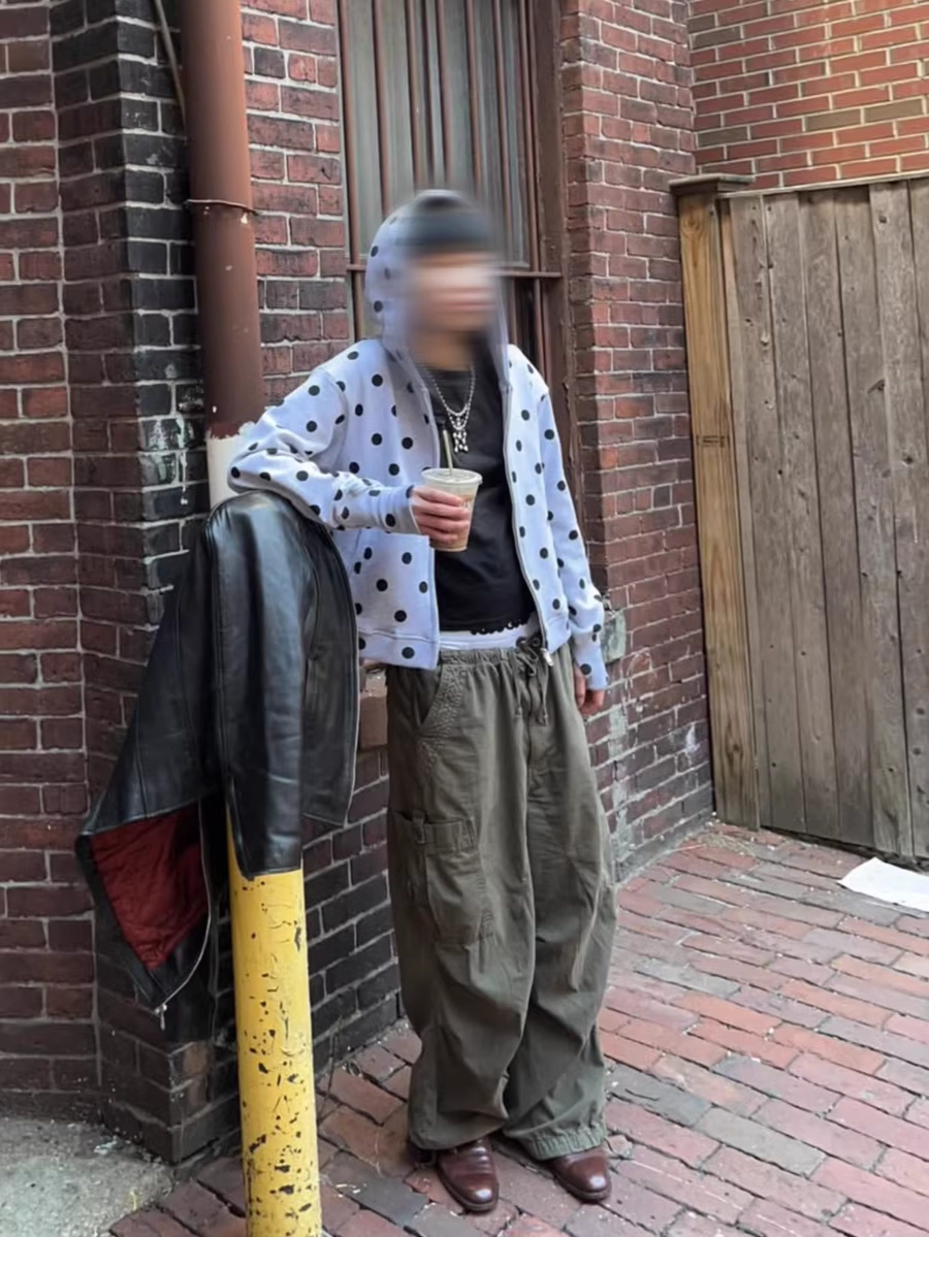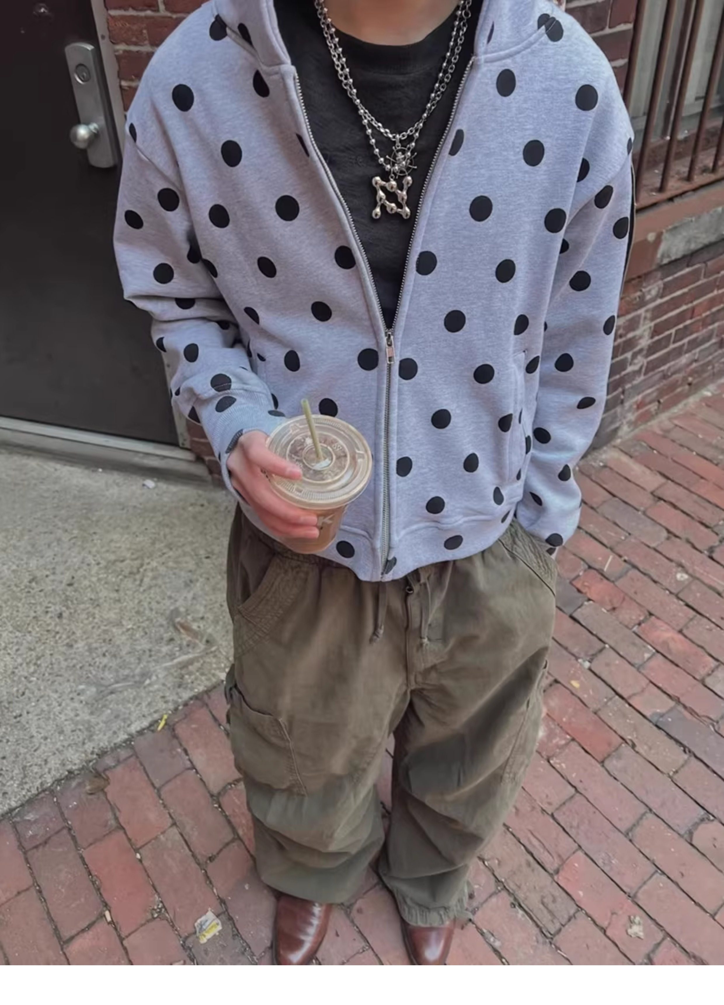FTS Polka Dot Shoulder Short Zip Hooded Jacket