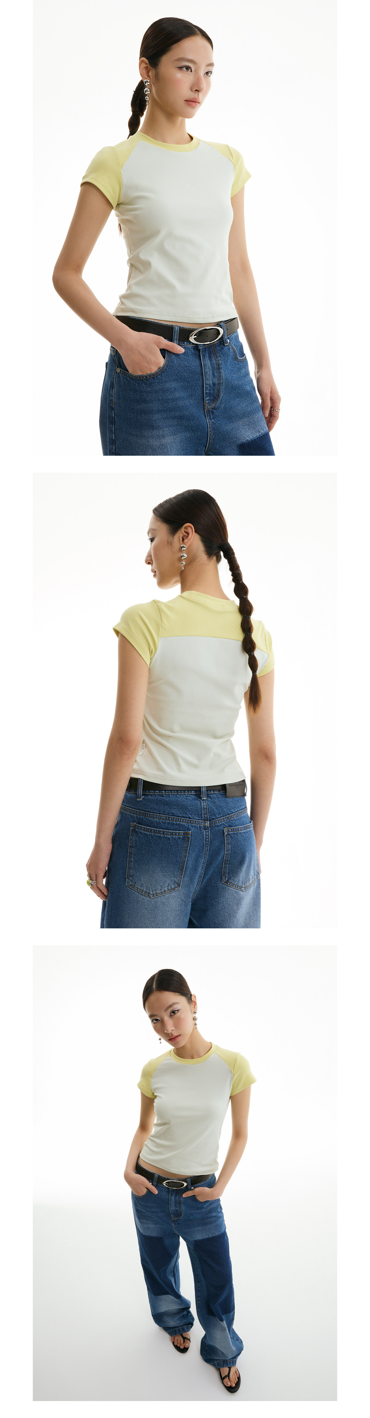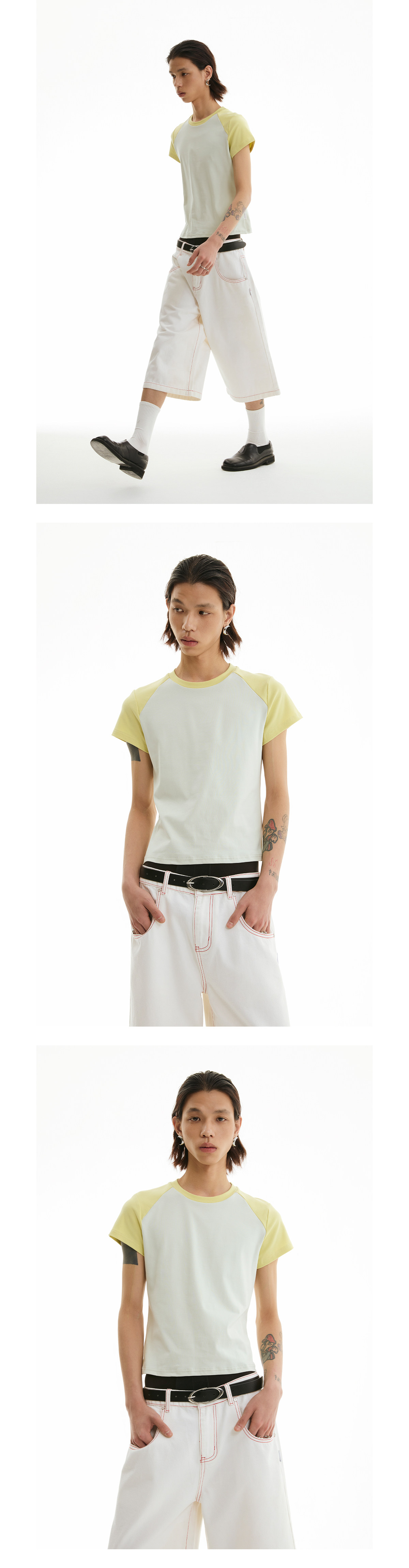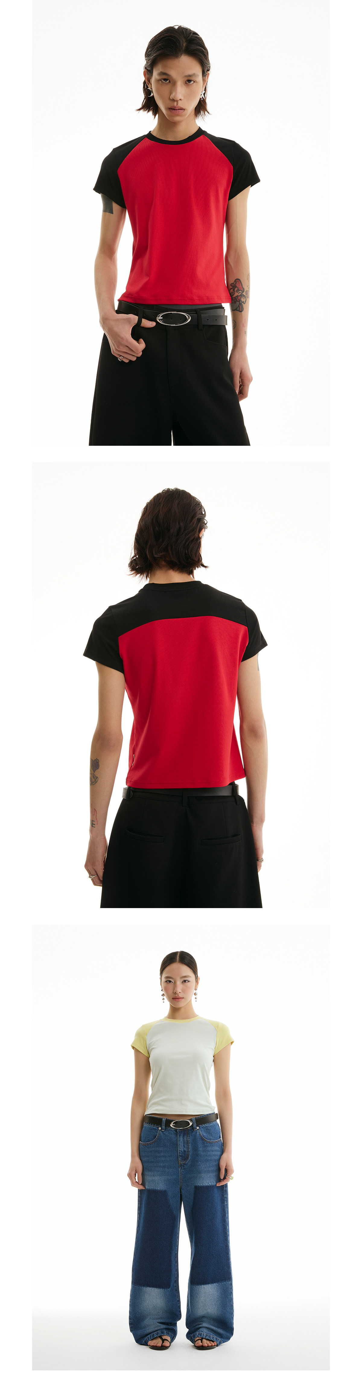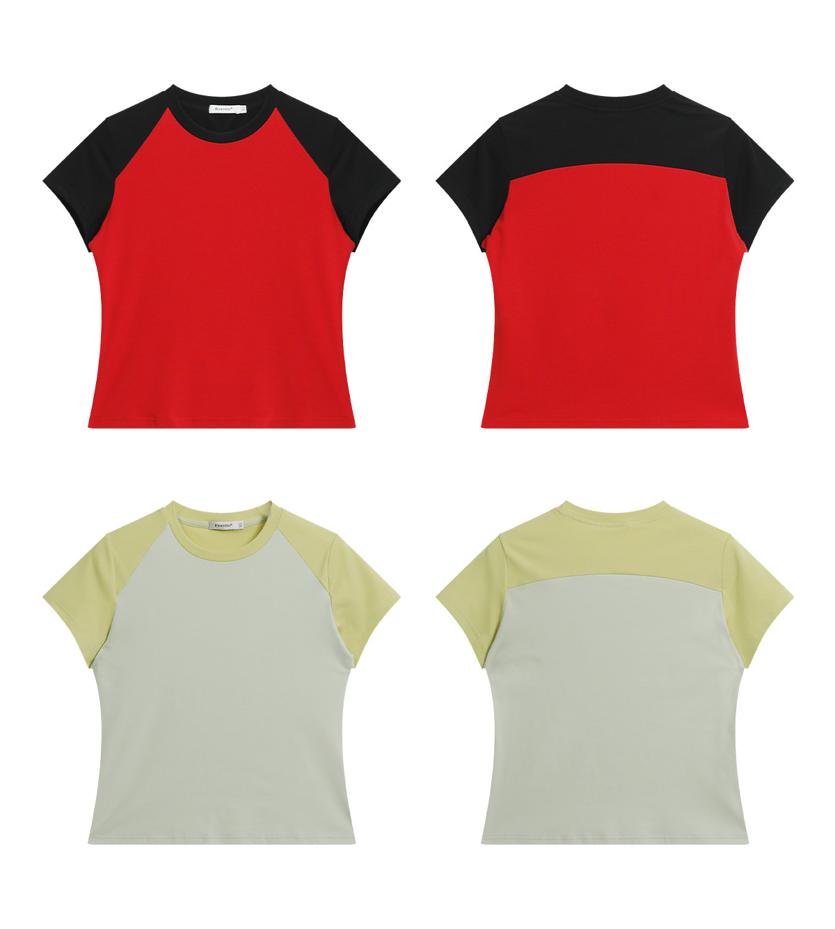 FUNKYFUN Elastic Thread Contrasting Shoulder Sleeve Tee