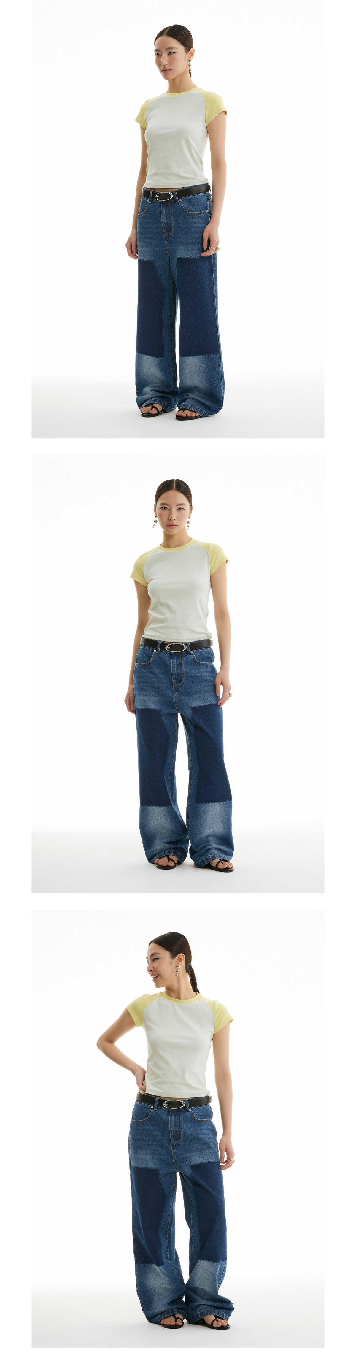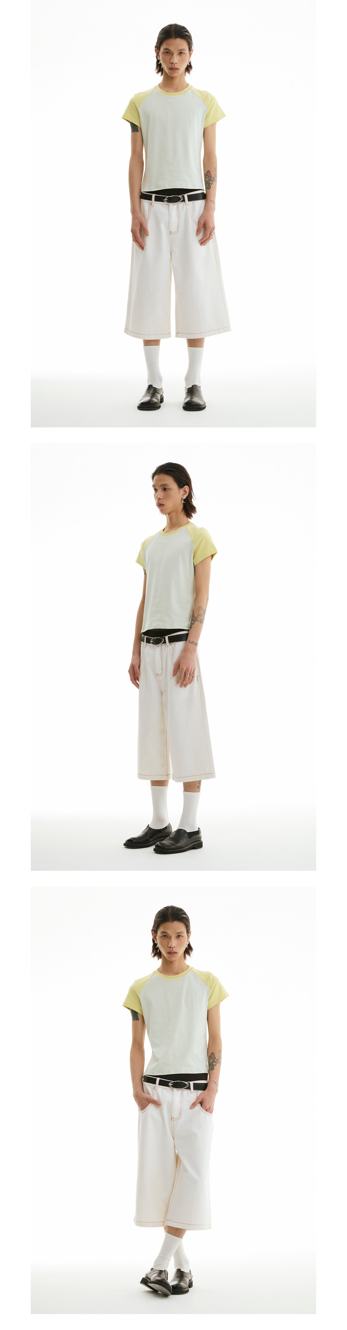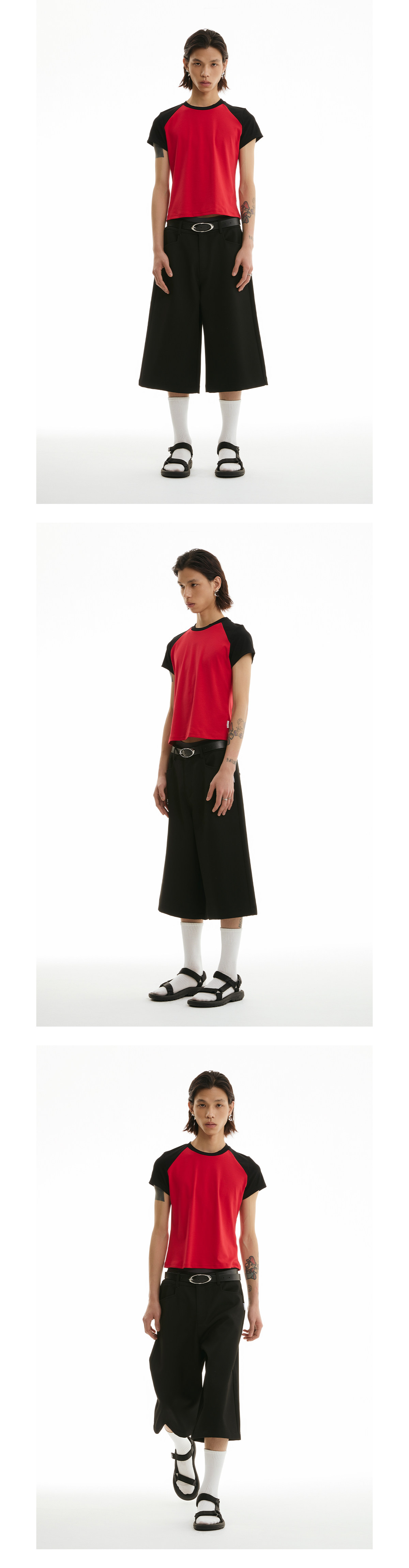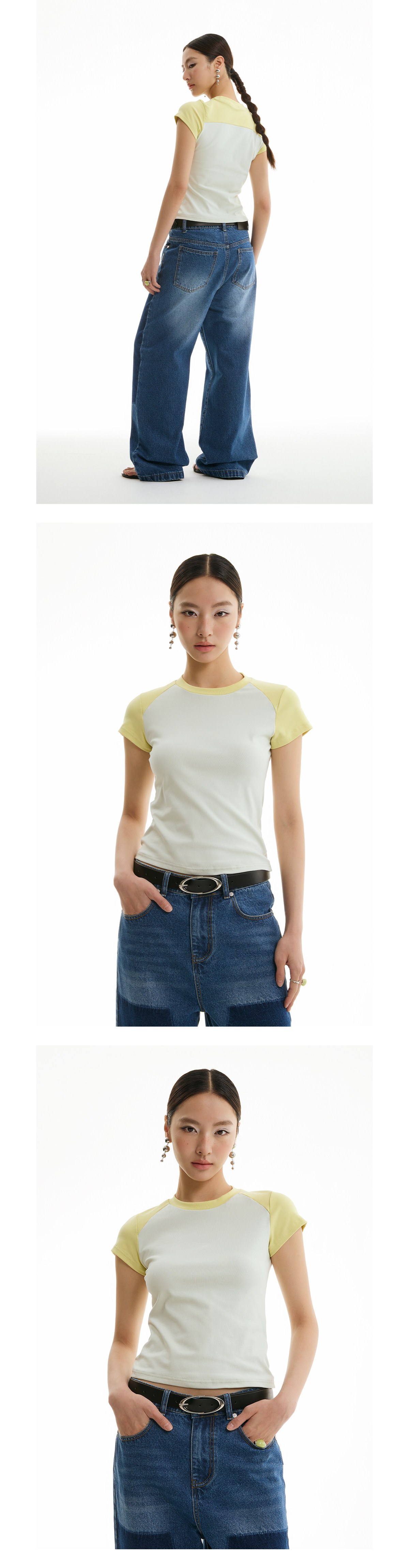 FUNKYFUN Elastic Thread Contrasting Shoulder Sleeve Tee
