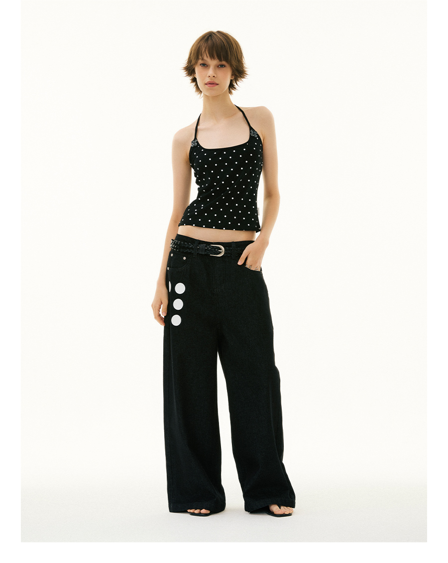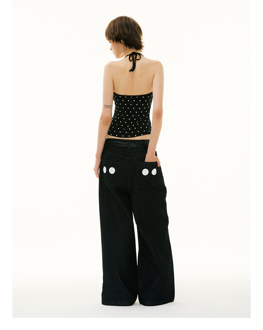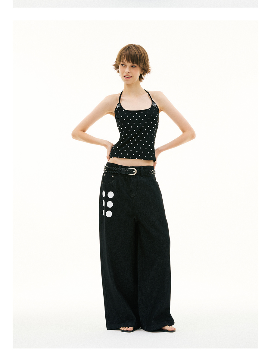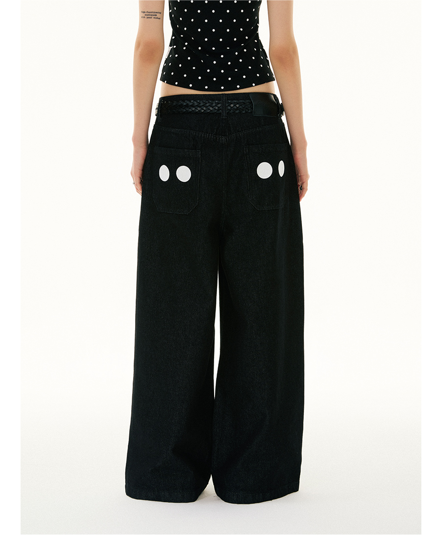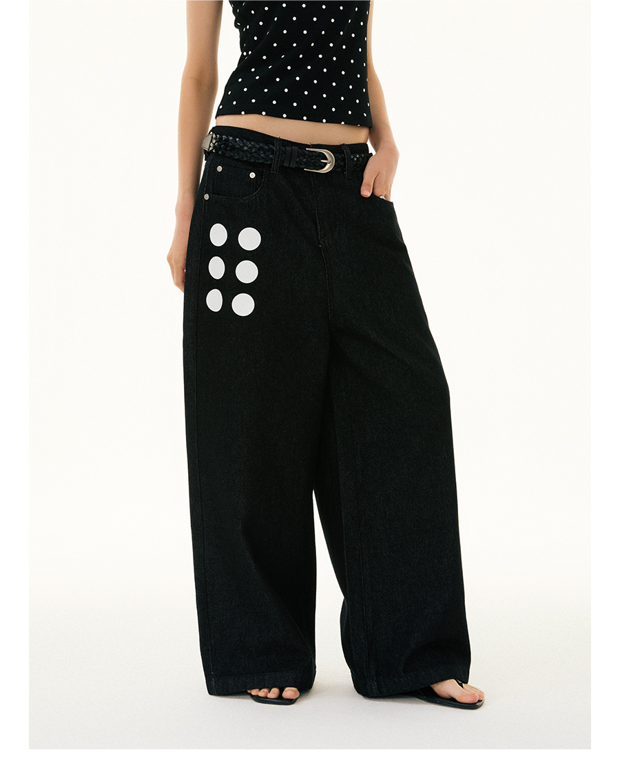 FUNKYFUN Front and Rear Polka Dot Print Loose Jeans