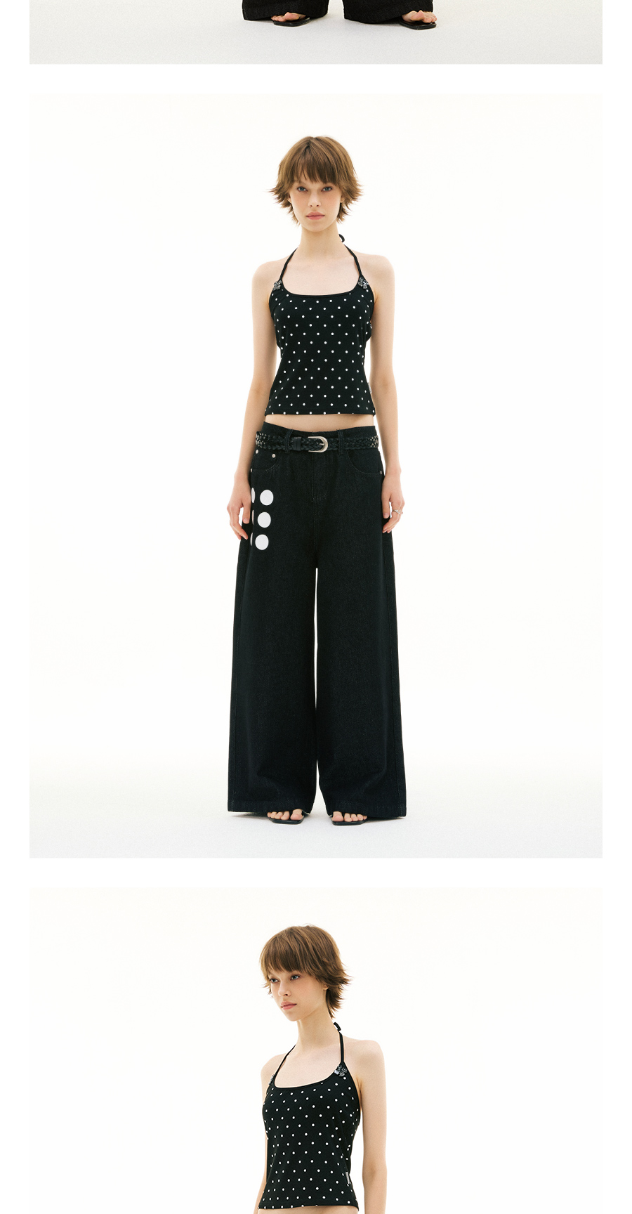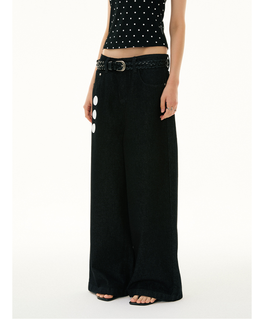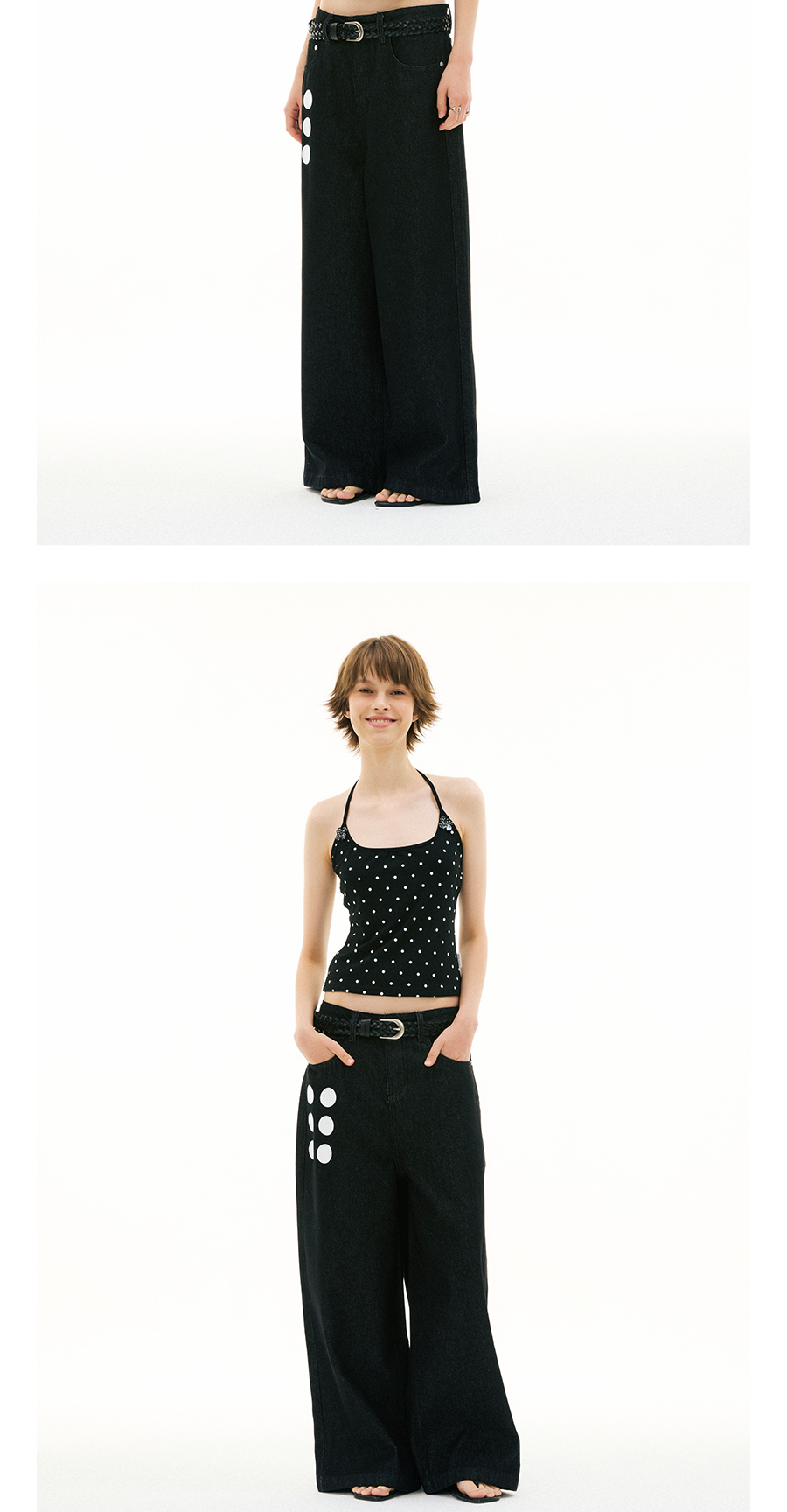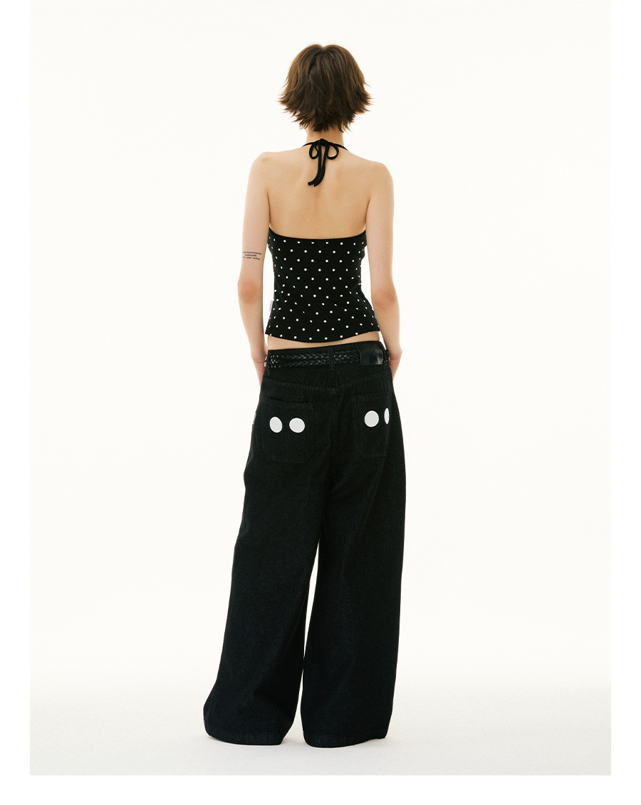 FUNKYFUN Front and Rear Polka Dot Print Loose Jeans