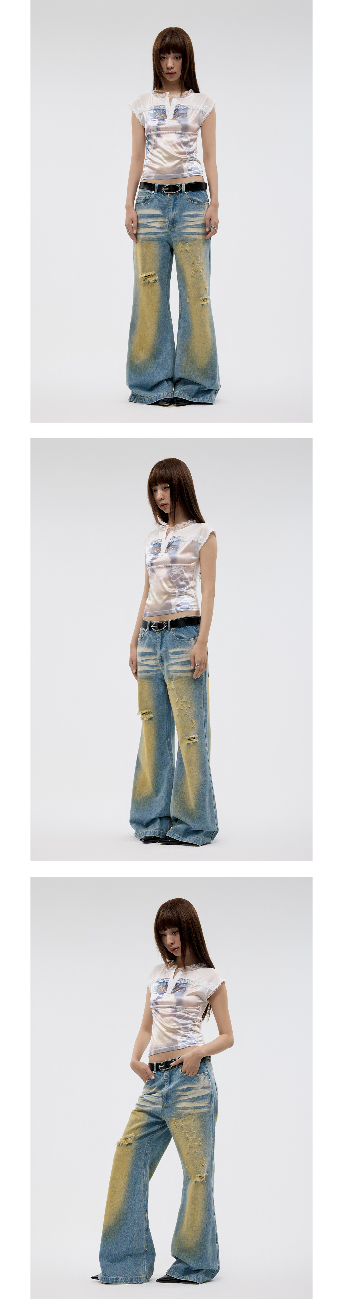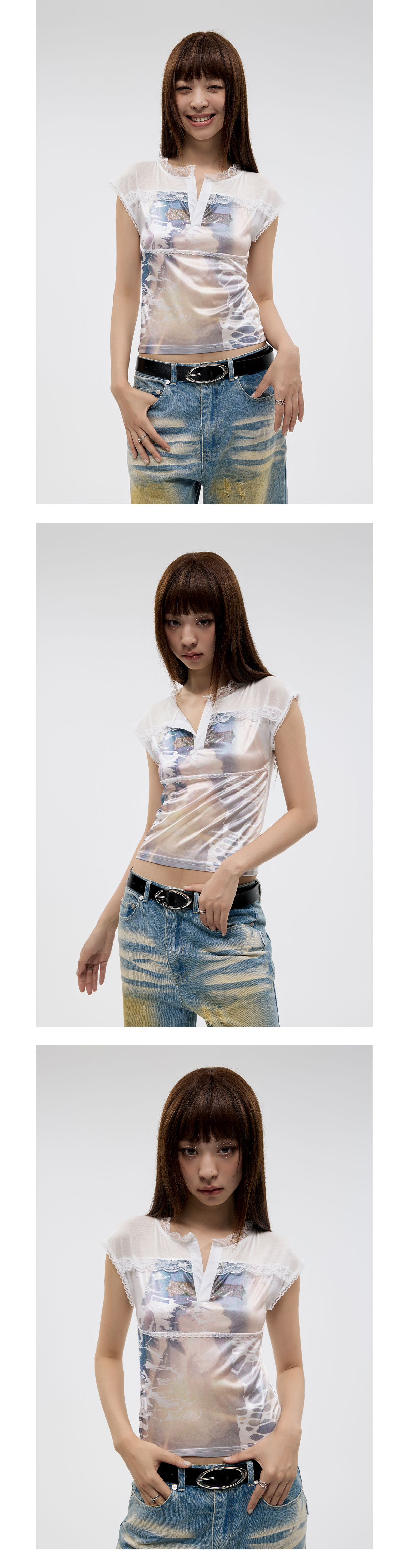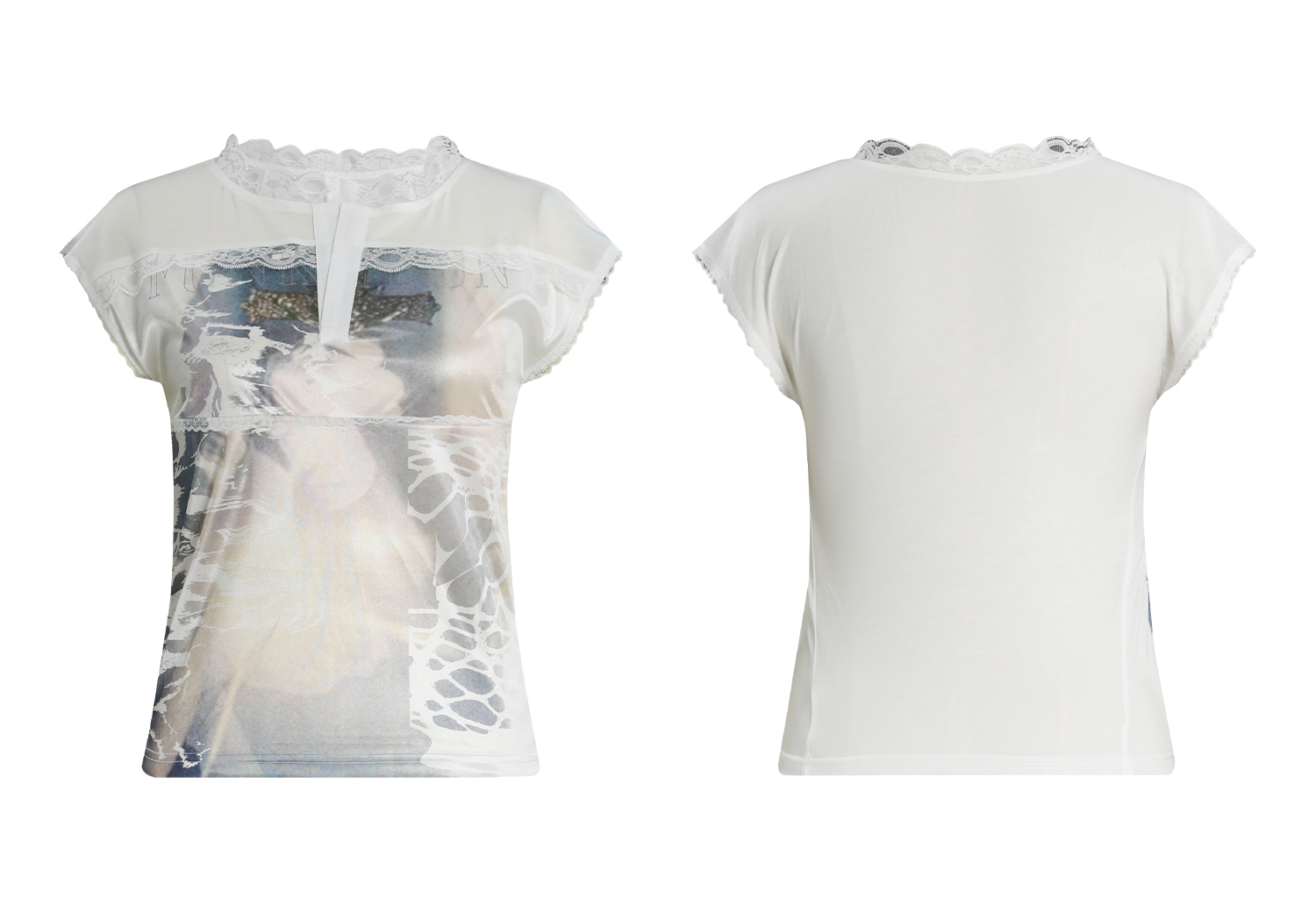 FUNKYFUN Lace Collage Full Print Small Flying Sleeve Tee