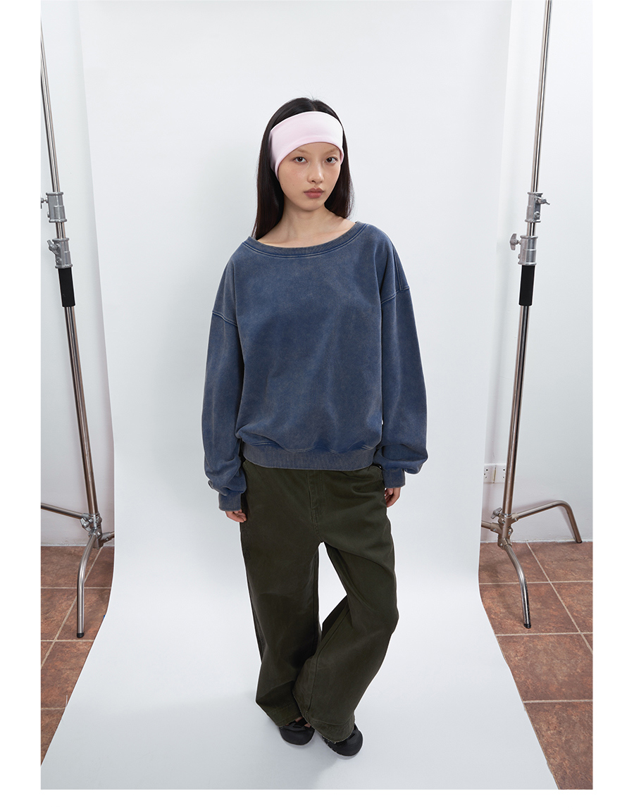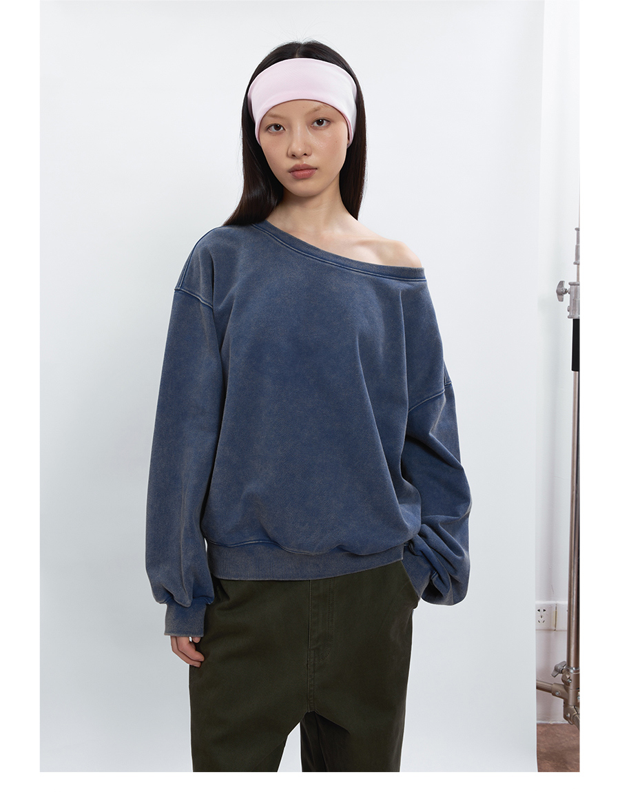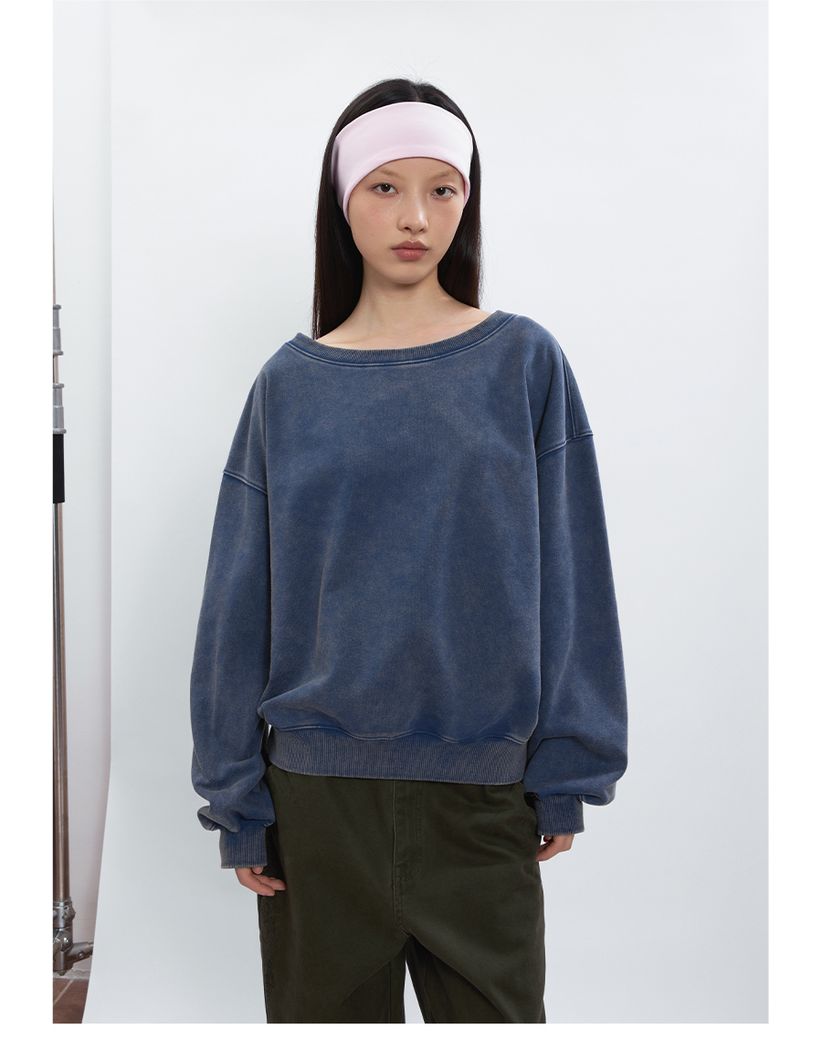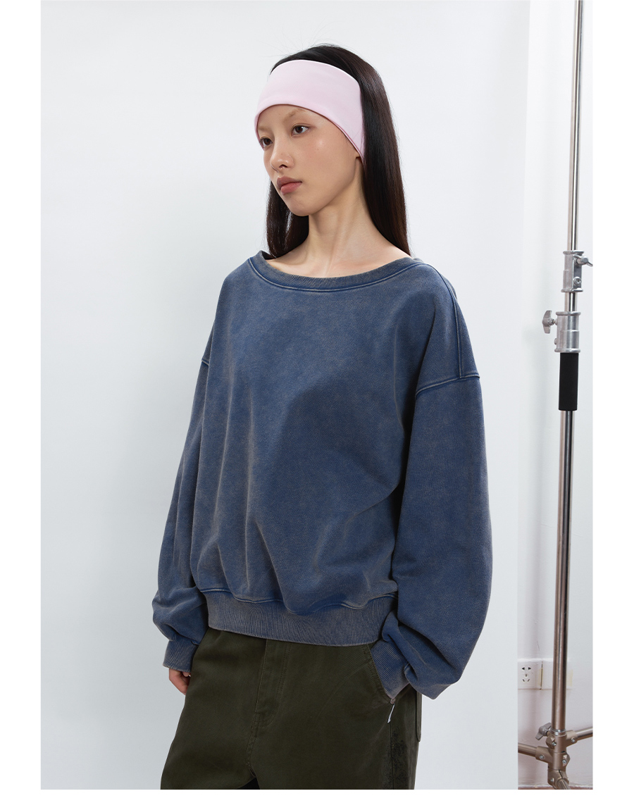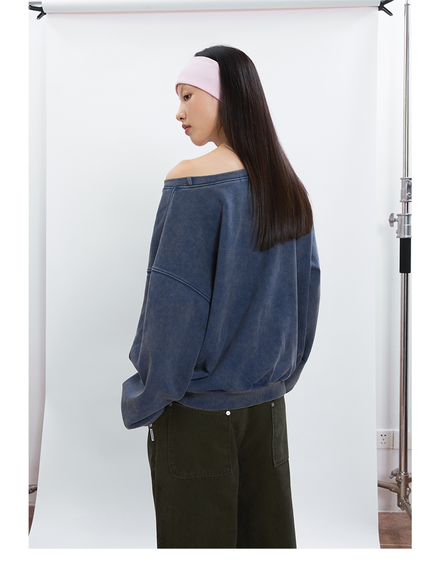 FUNKYFUN Loose Boat Collar Drop Shoulder Pullover Sweater
