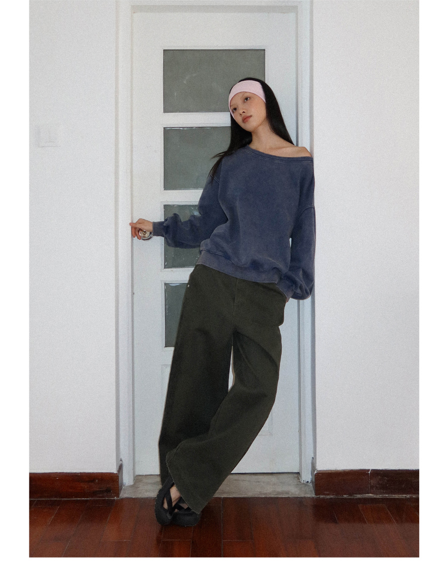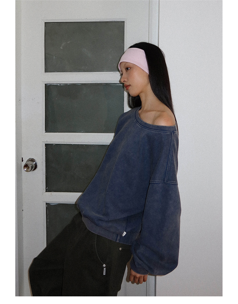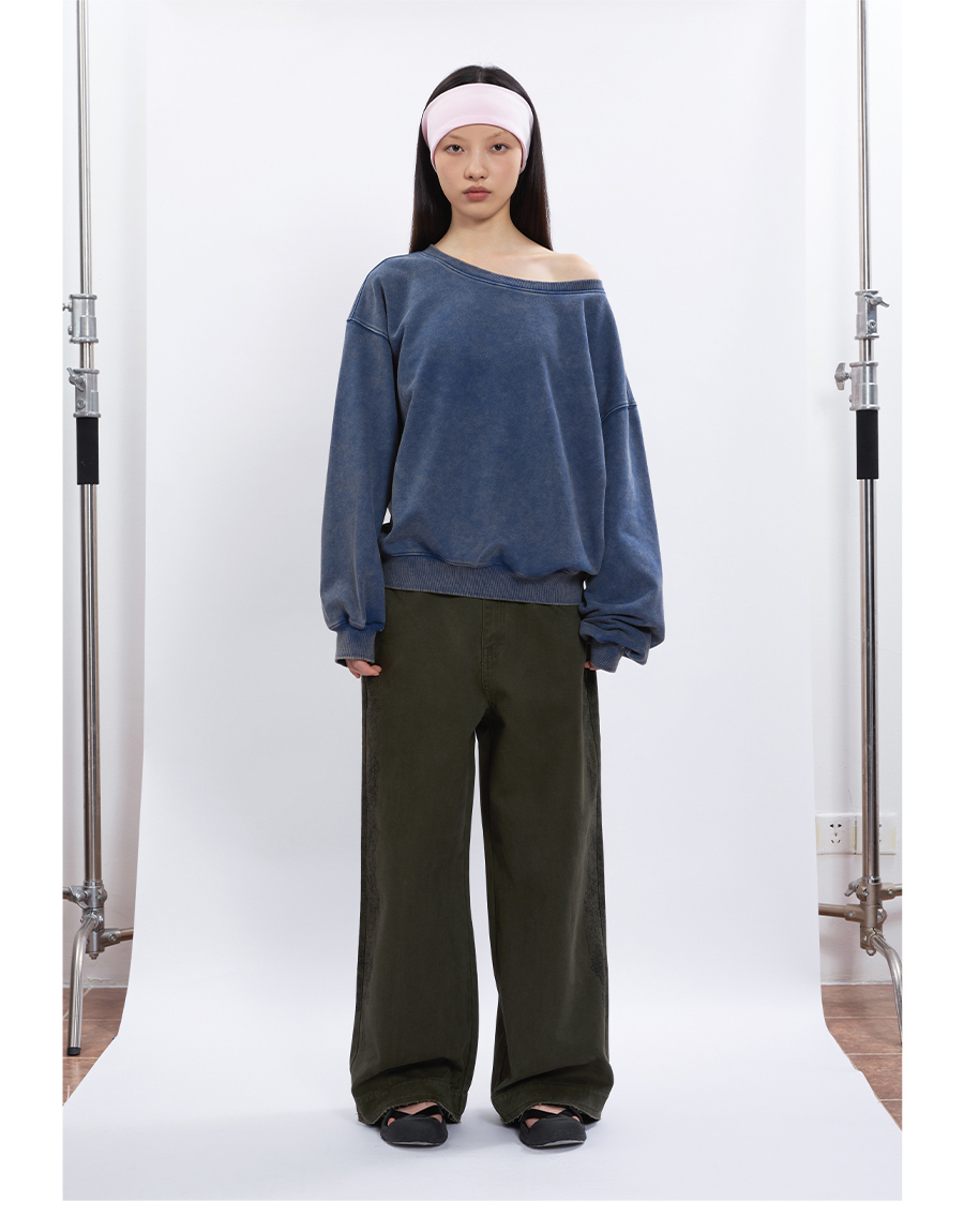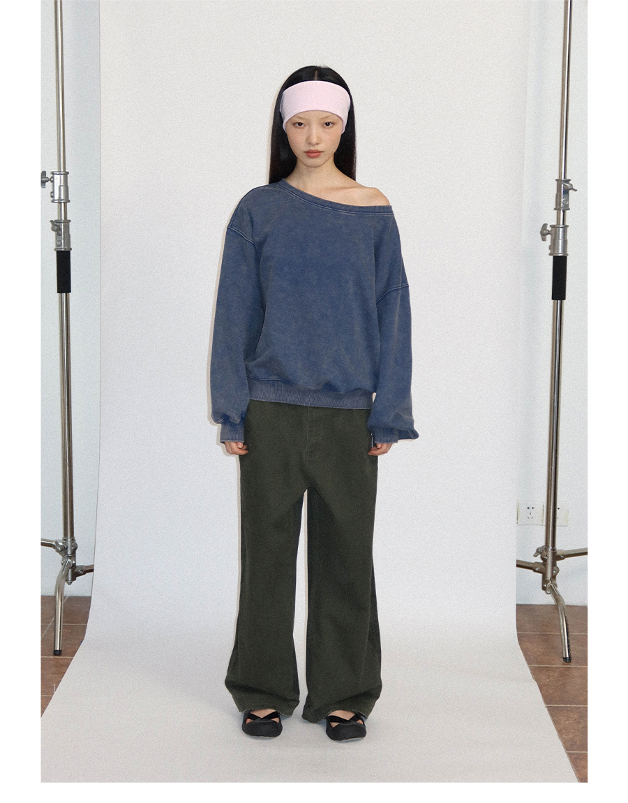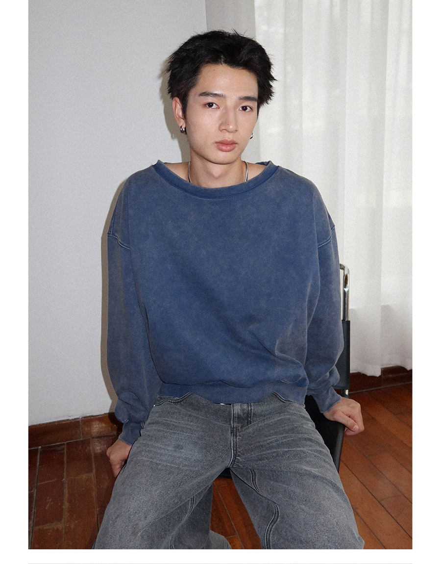 FUNKYFUN Loose Boat Collar Drop Shoulder Pullover Sweater