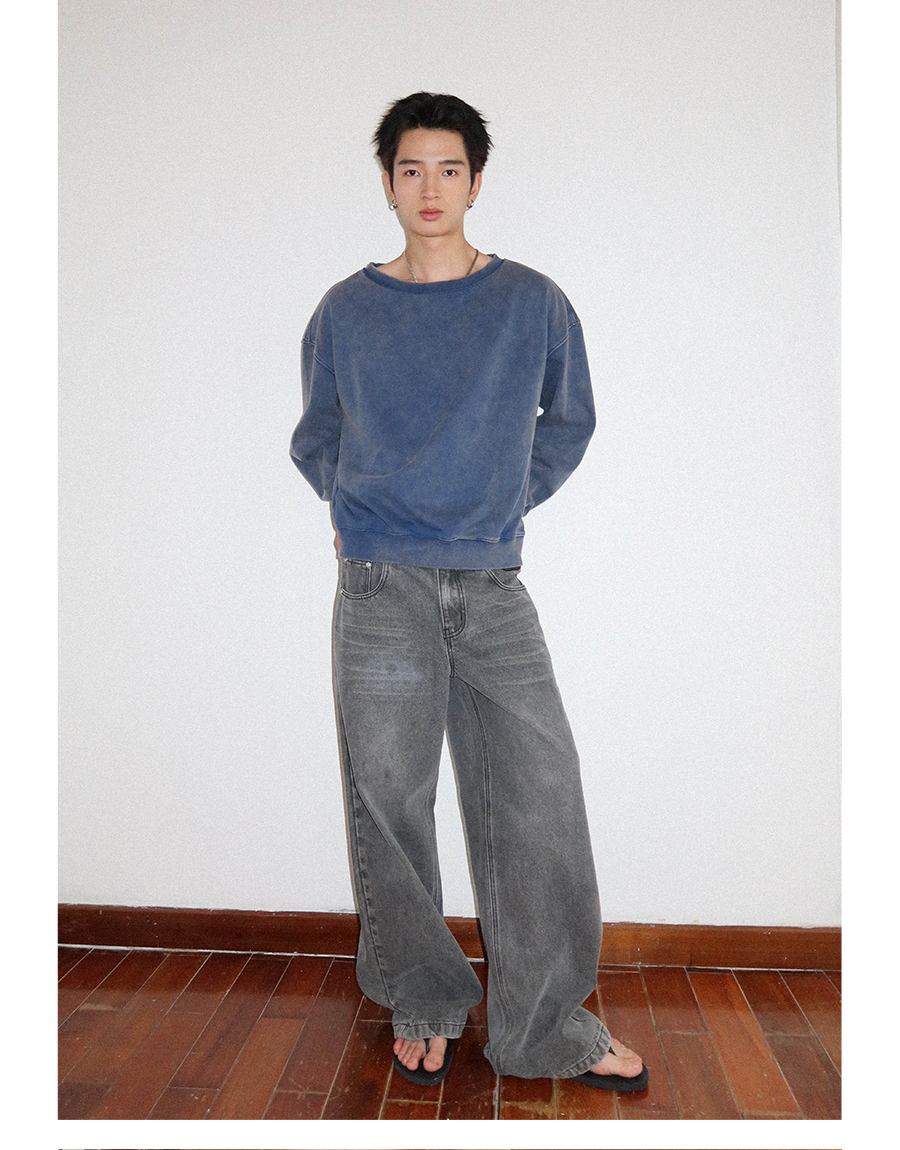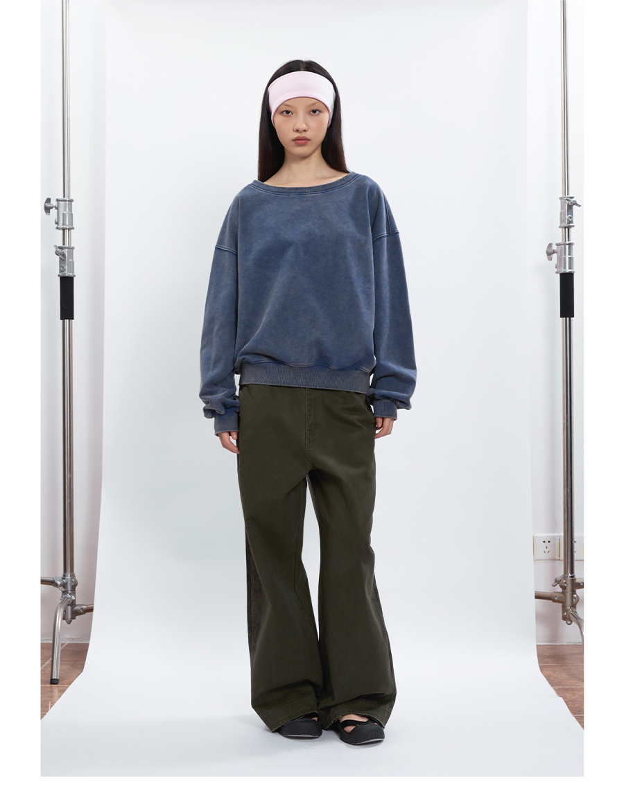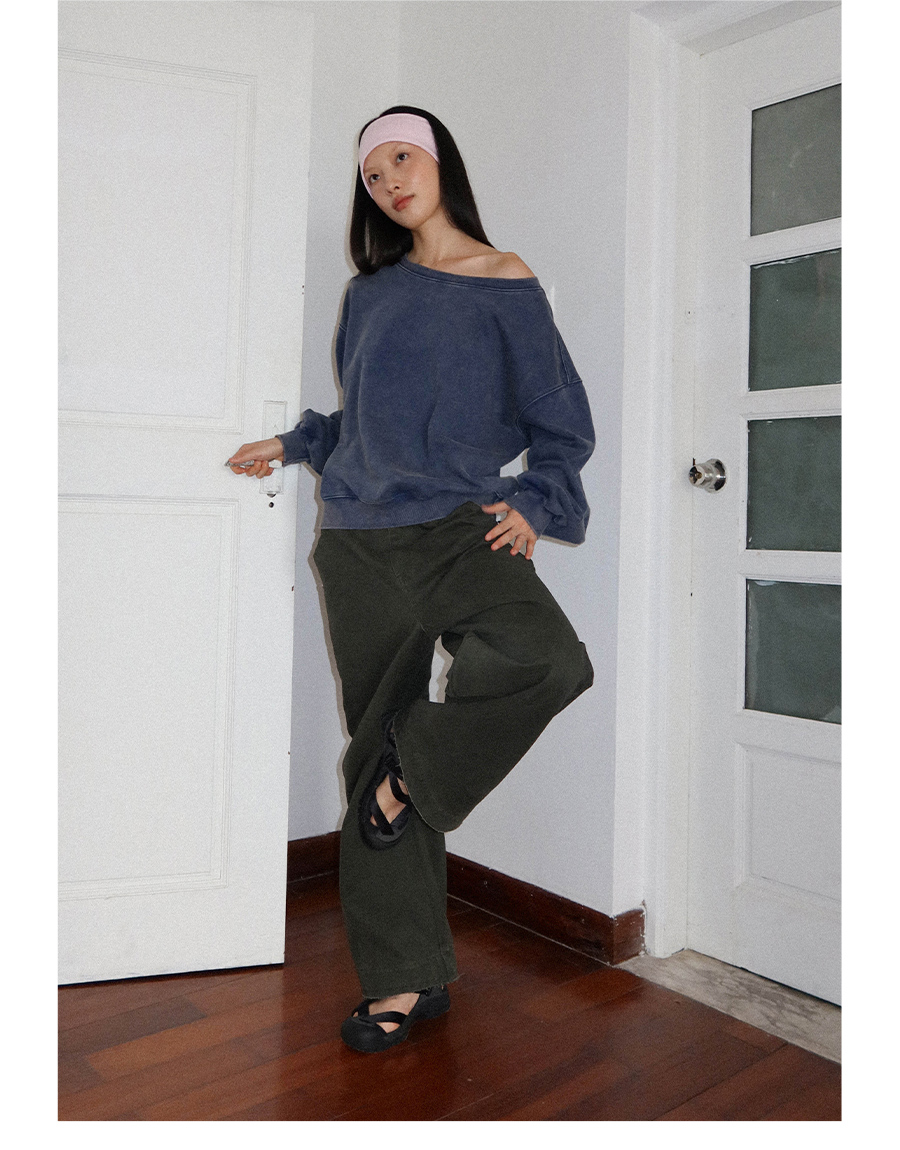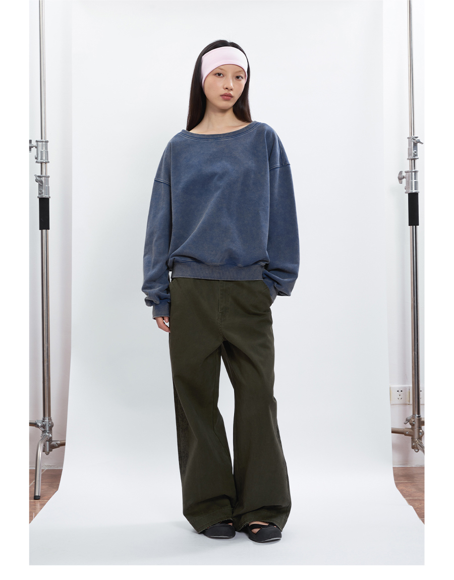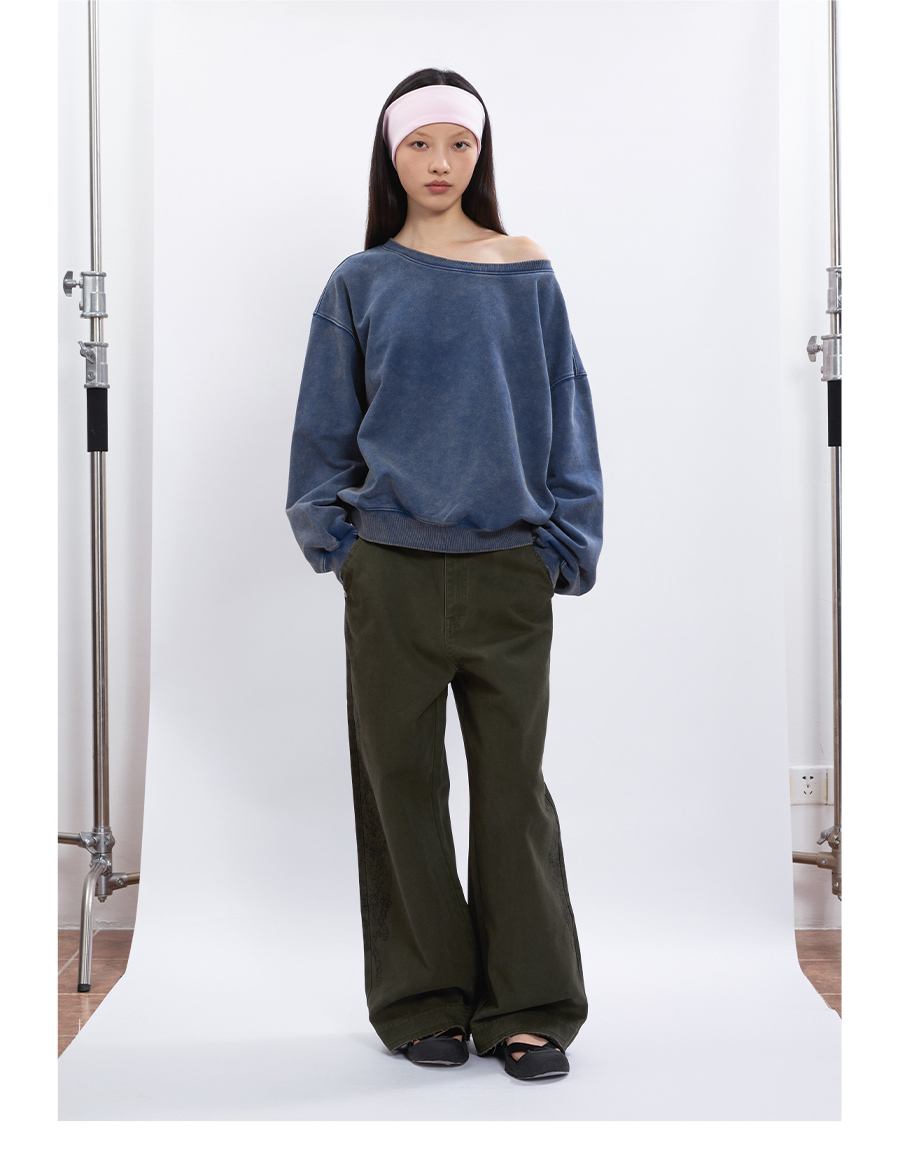 FUNKYFUN Loose Boat Collar Drop Shoulder Pullover Sweater