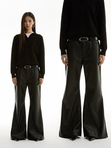 FUNKYFUN Mid-low Waist Design Micro-flared Leather Pants