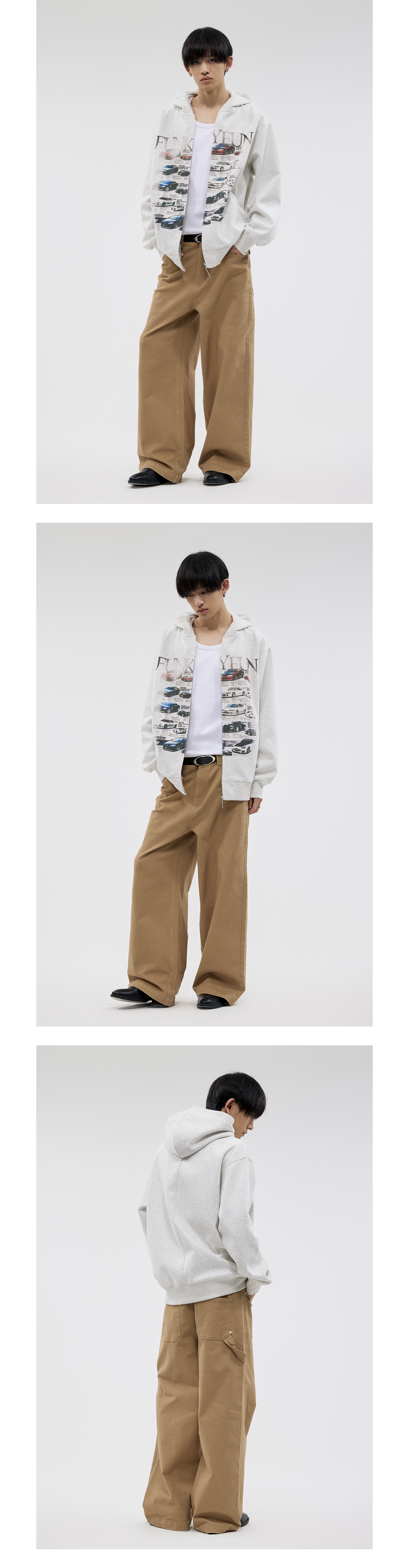 FUNKYFUN Mid-waist Khaki Straight-leg Pants