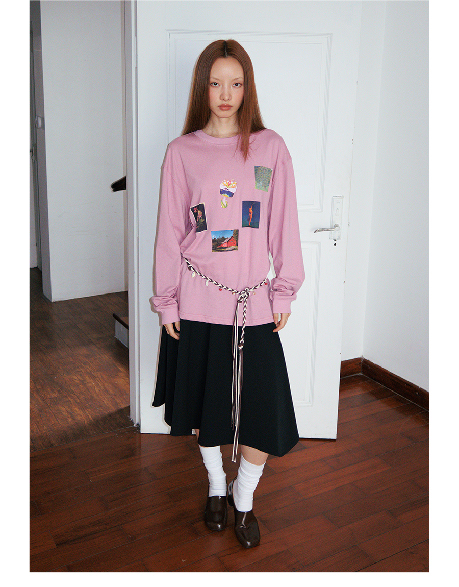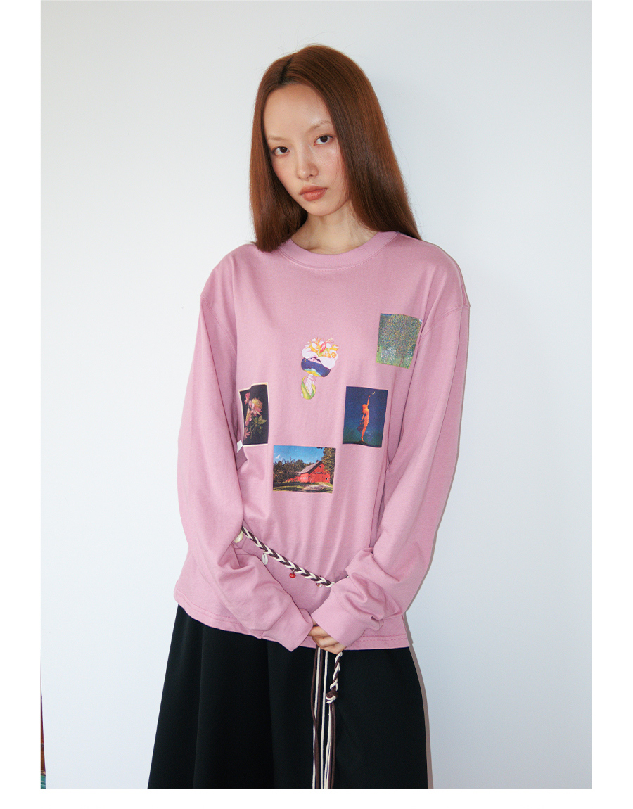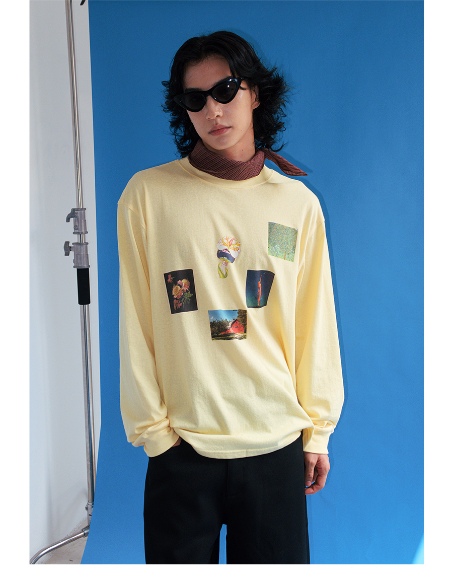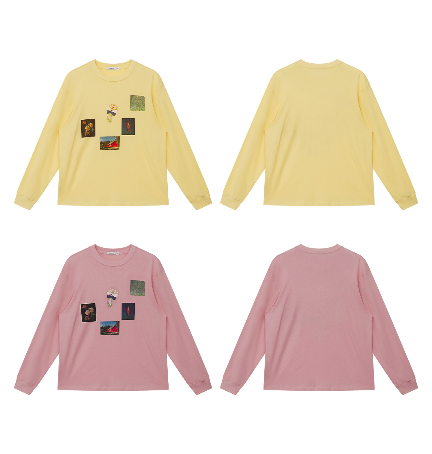 FUNKYFUN Plant Flower Collage Print Loose Long Sleeve