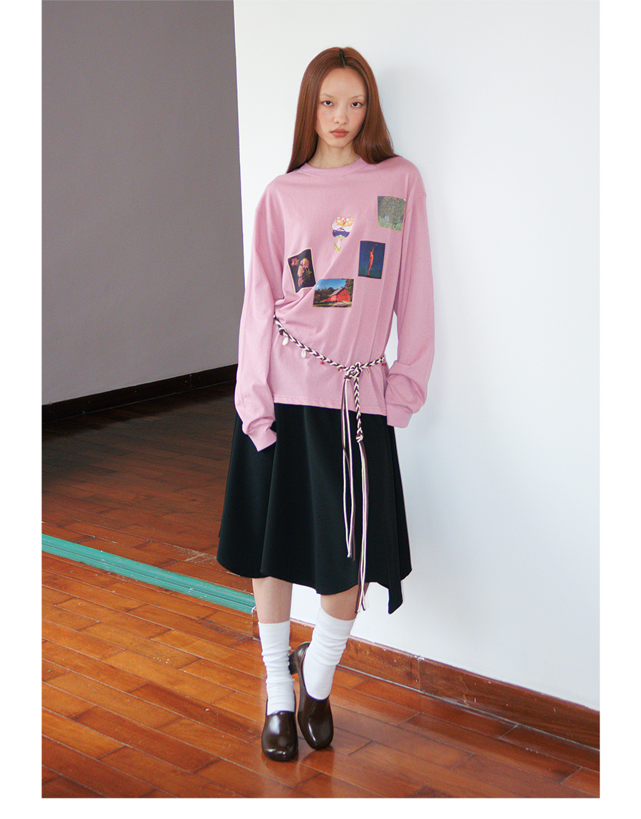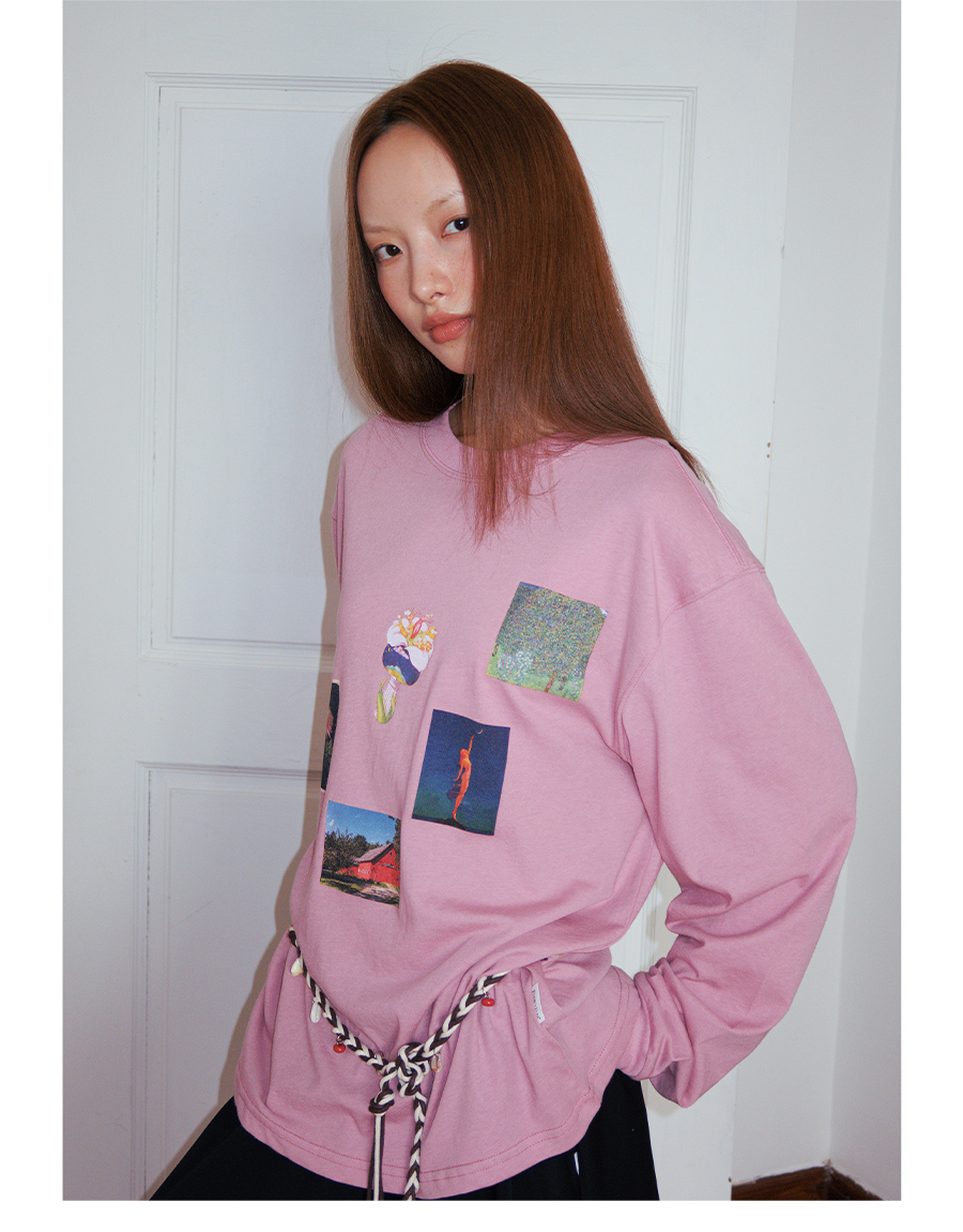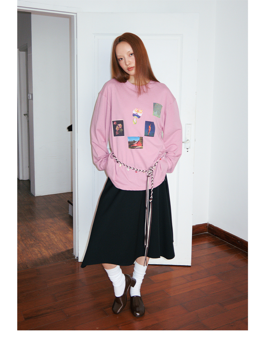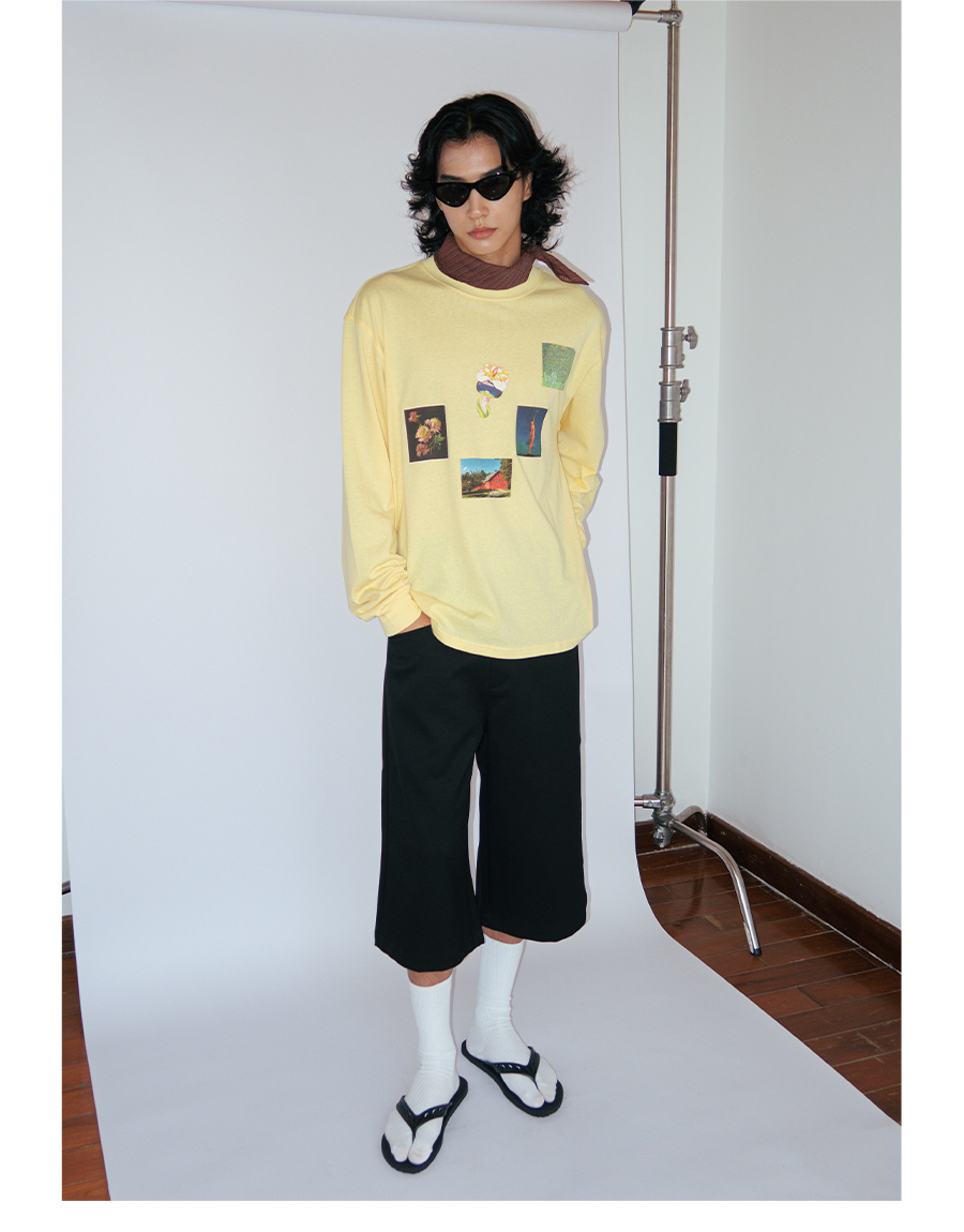 FUNKYFUN Plant Flower Collage Print Loose Long Sleeve