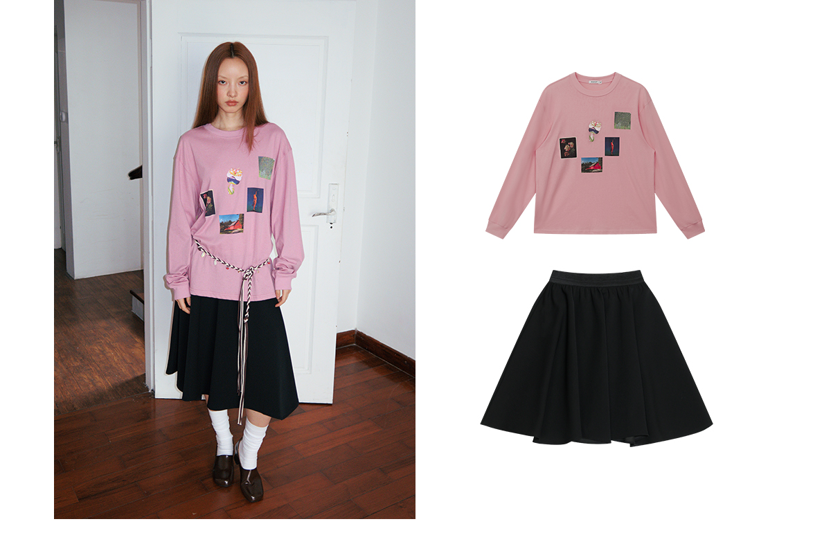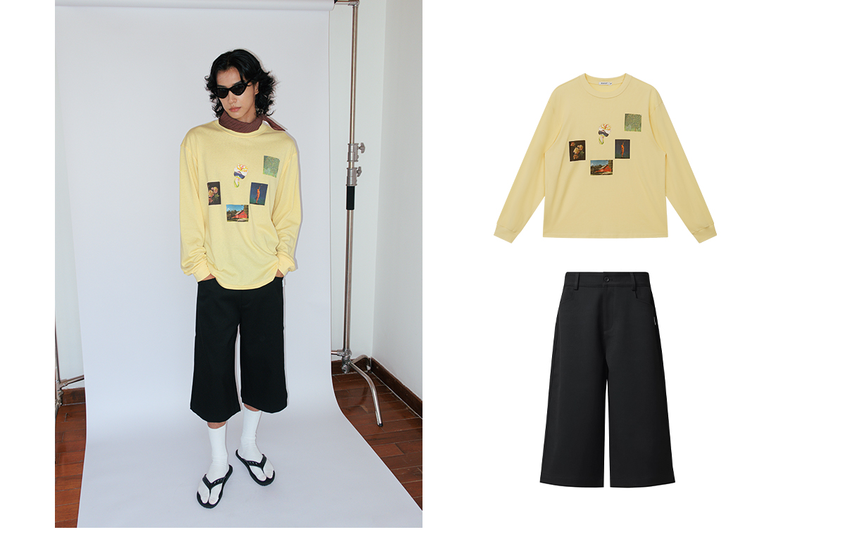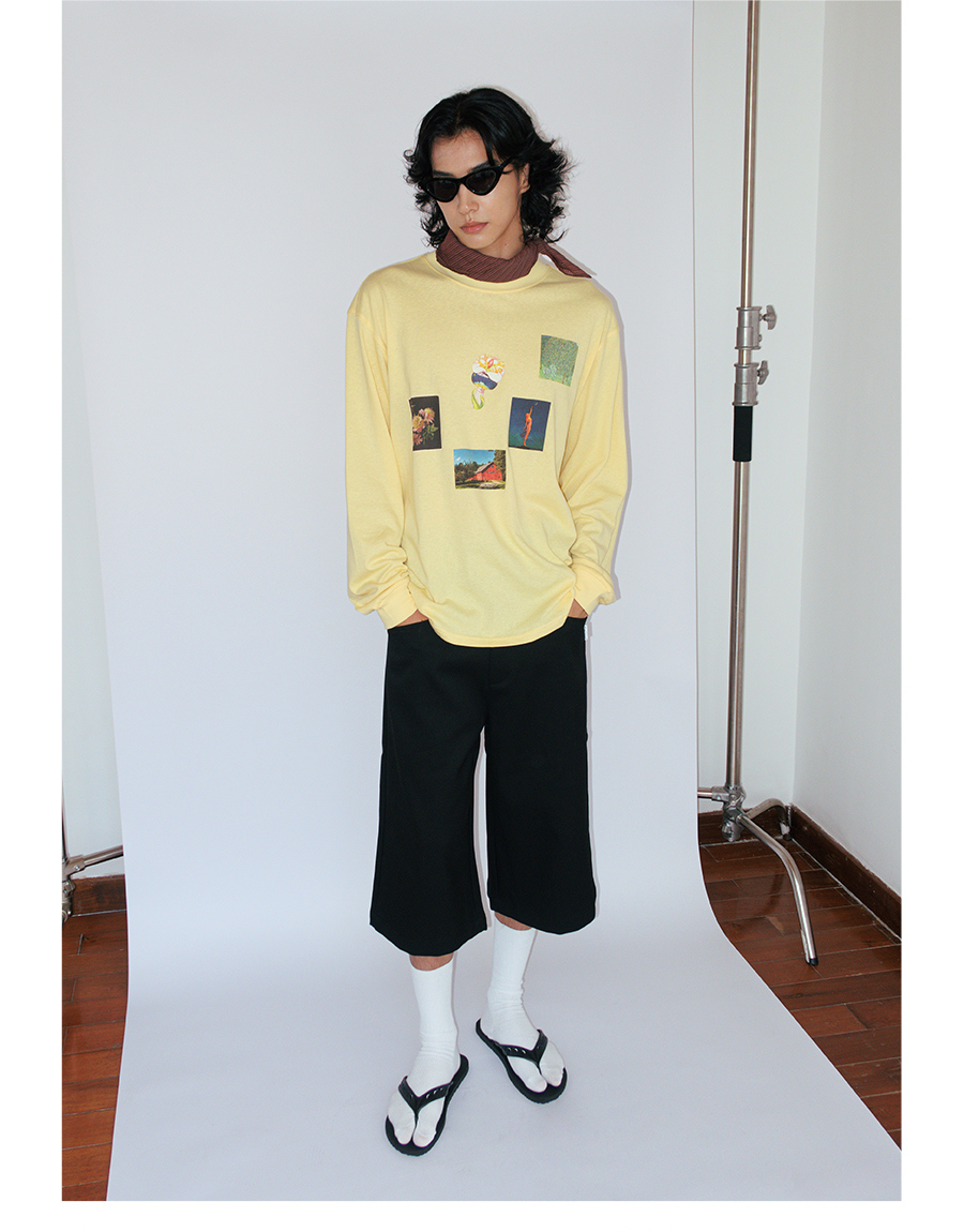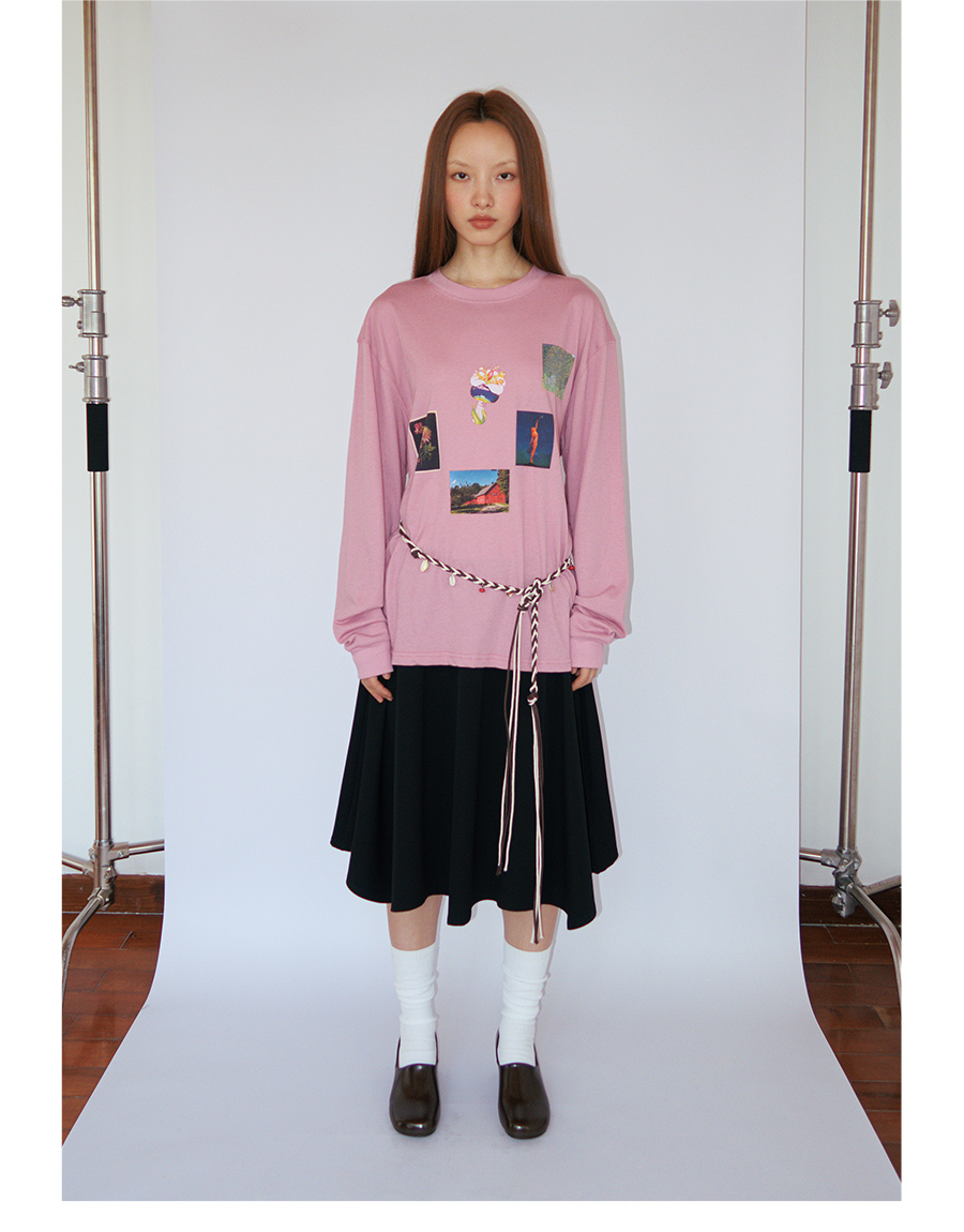FUNKYFUN Plant Flower Collage Print Loose Long Sleeve
