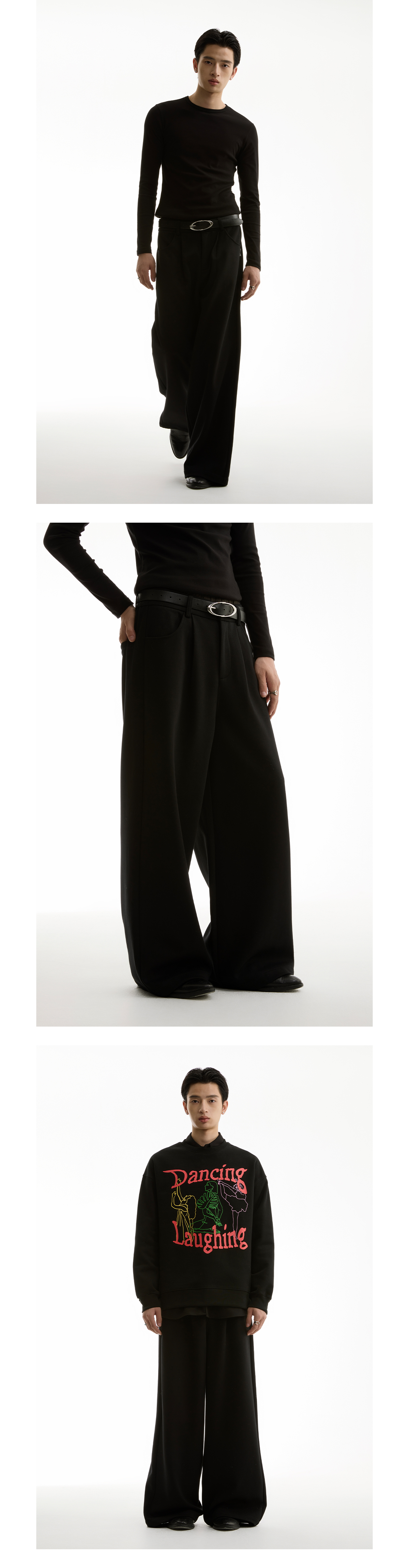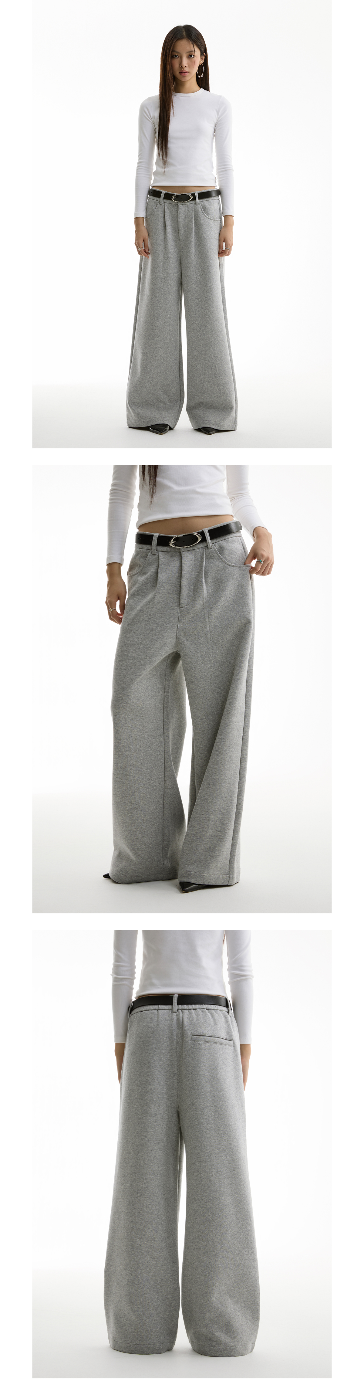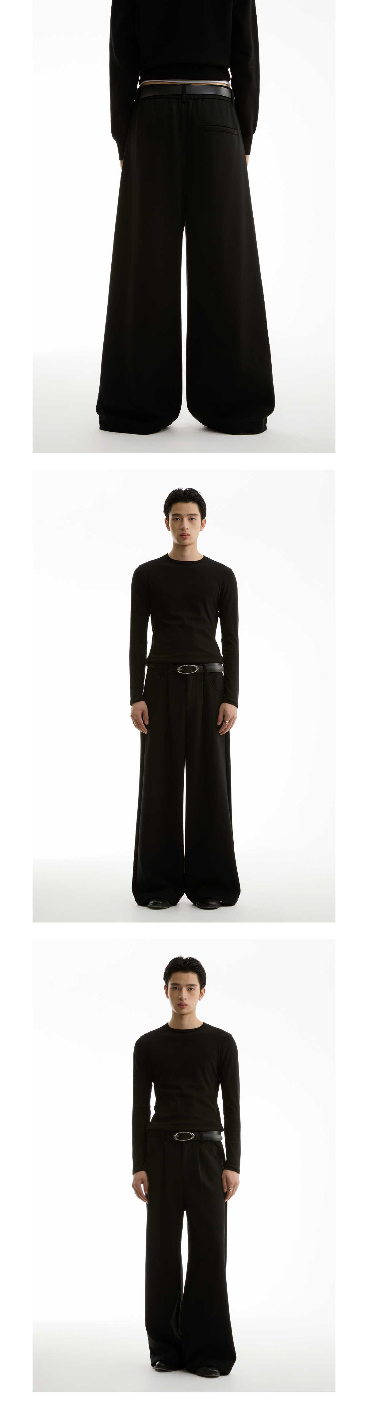 FUNKYFUN Semi-elastic Waist Suit Pleated Straight-leg Pants