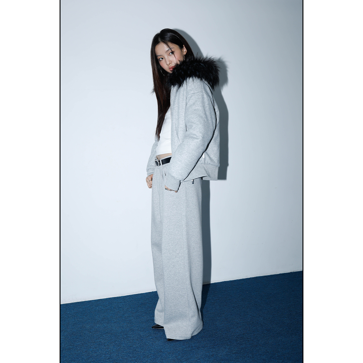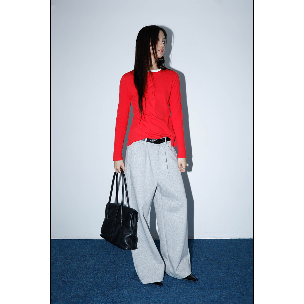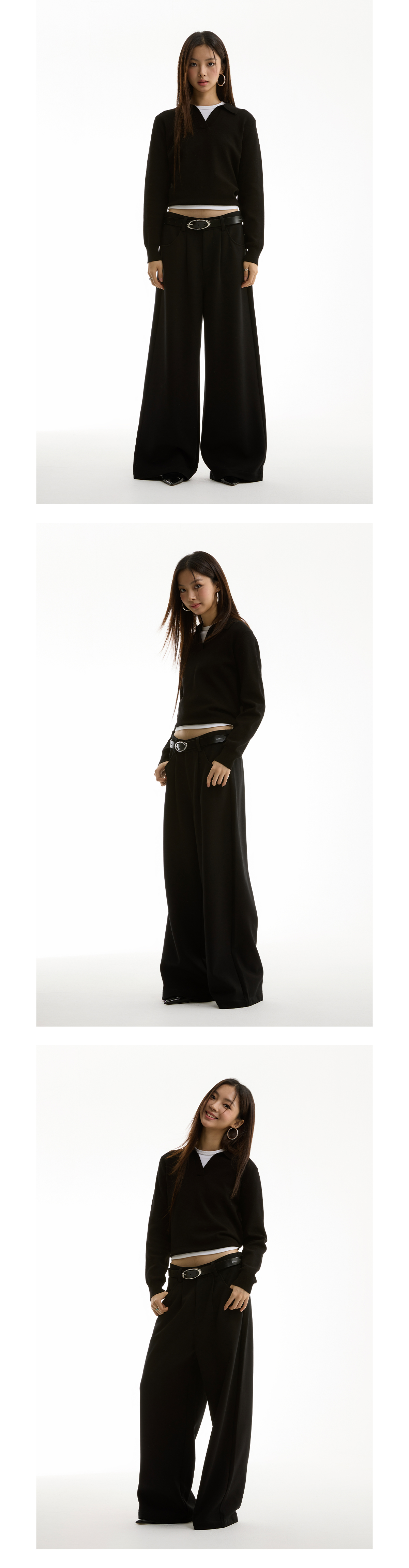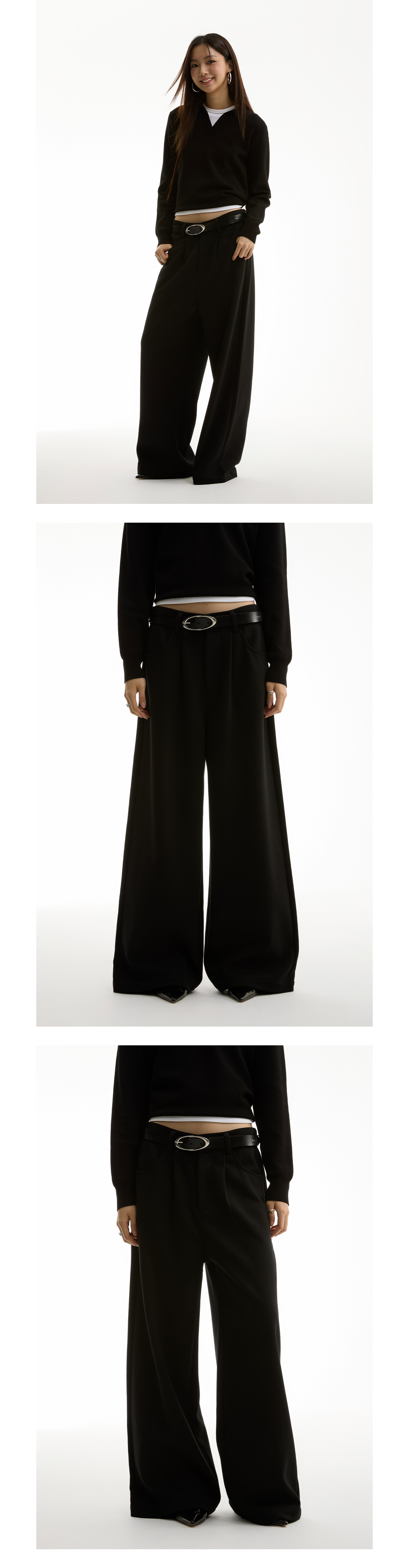FUNKYFUN Semi-elastic Waist Suit Pleated Straight-leg Pants