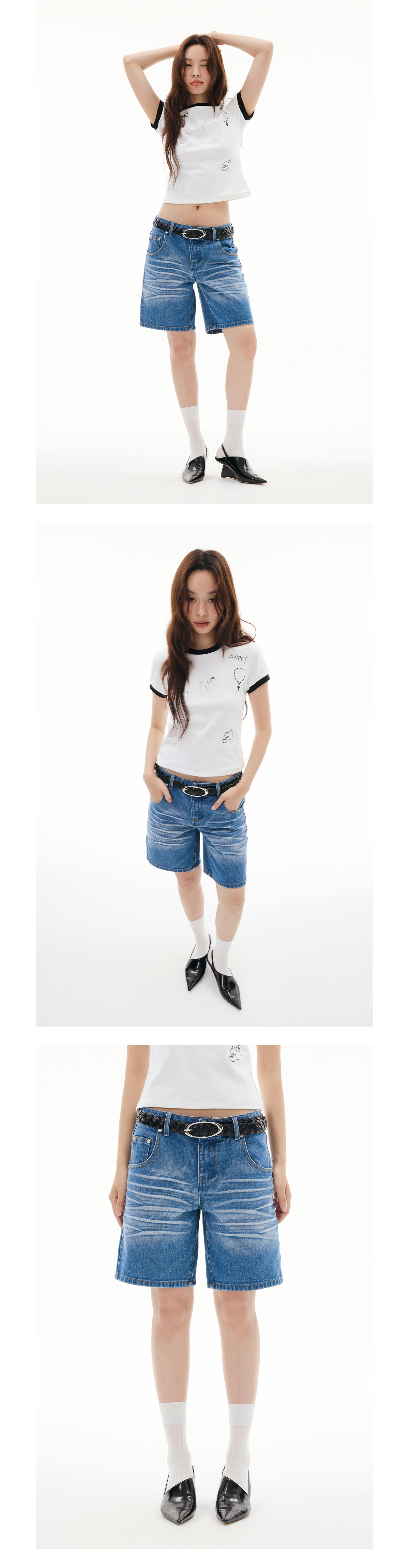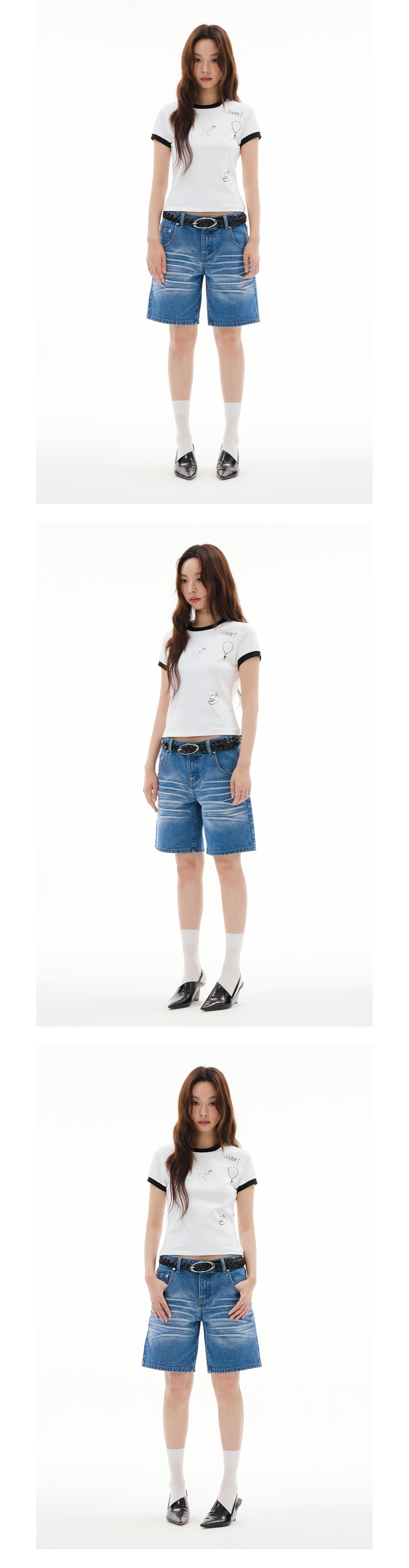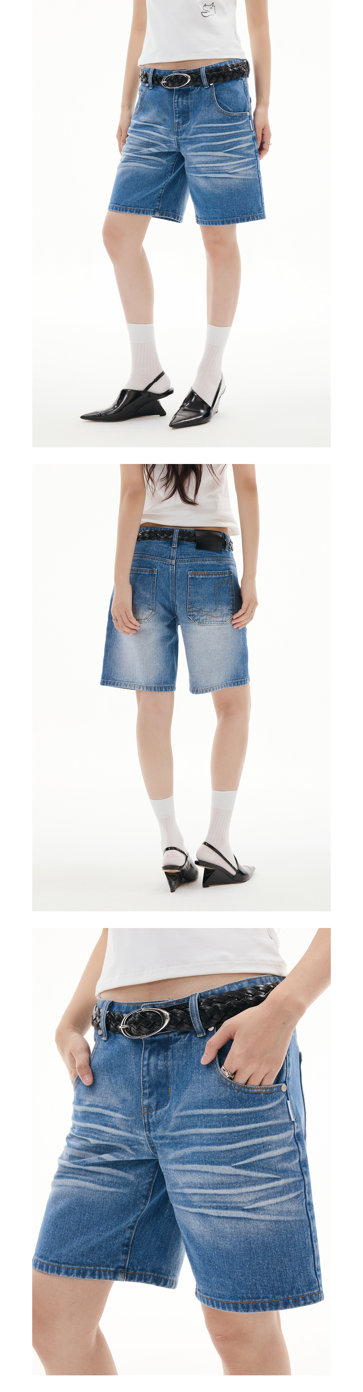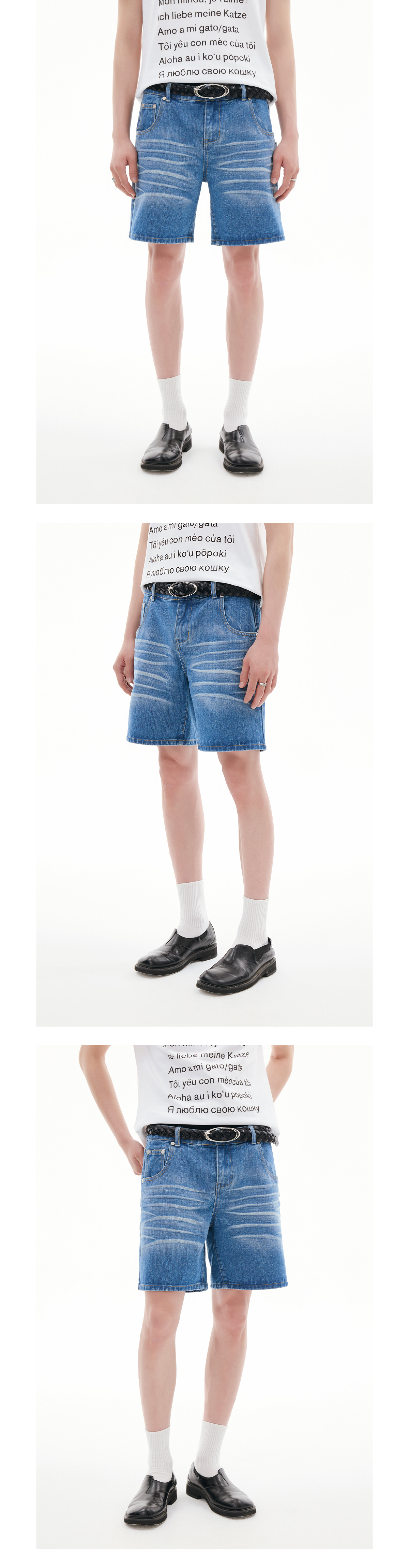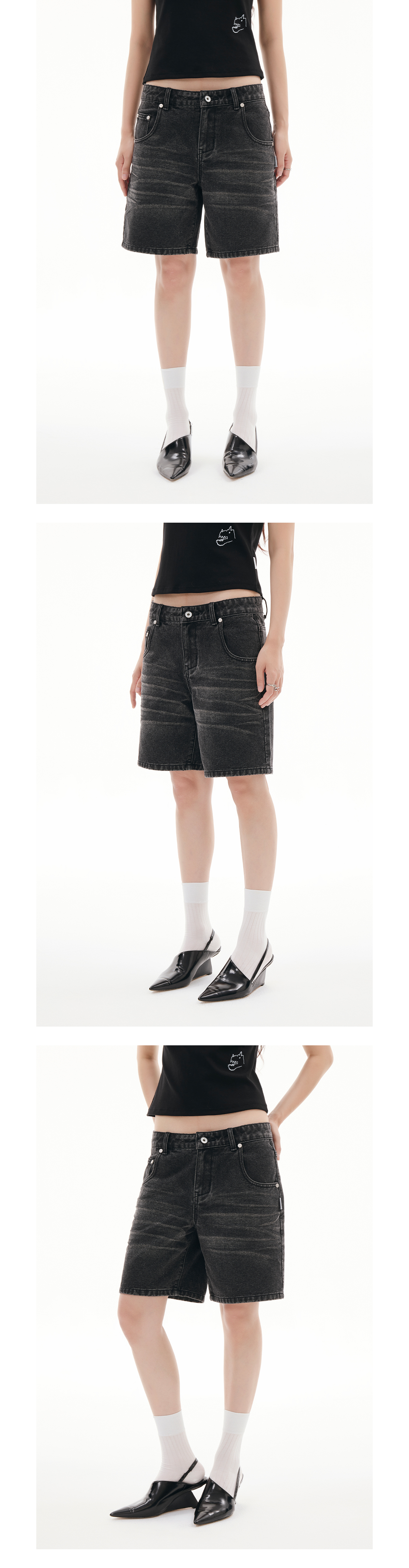FUNKYFUN Three-dimensional Pullback Cat Whisker Denim Shorts