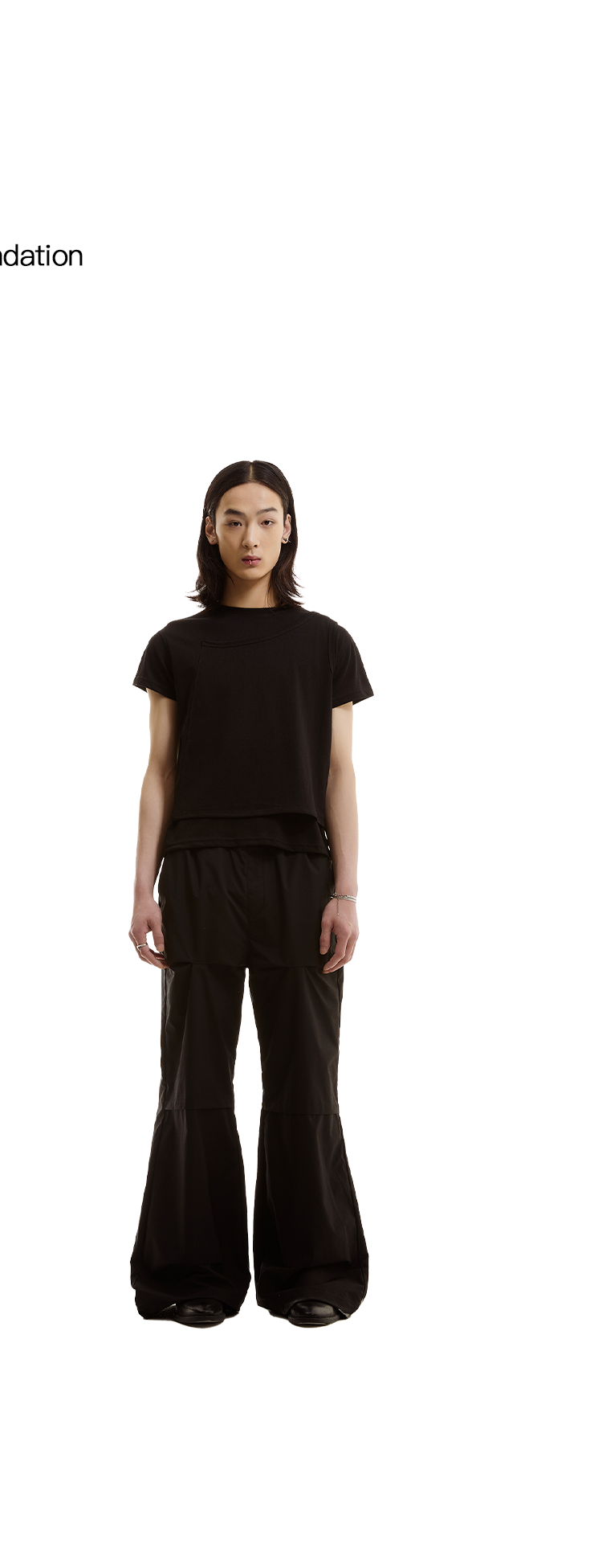FUNKYFUN Three-layer Pull-pleated Wide-waisted Straight-leg Trench Coat Casual Pants