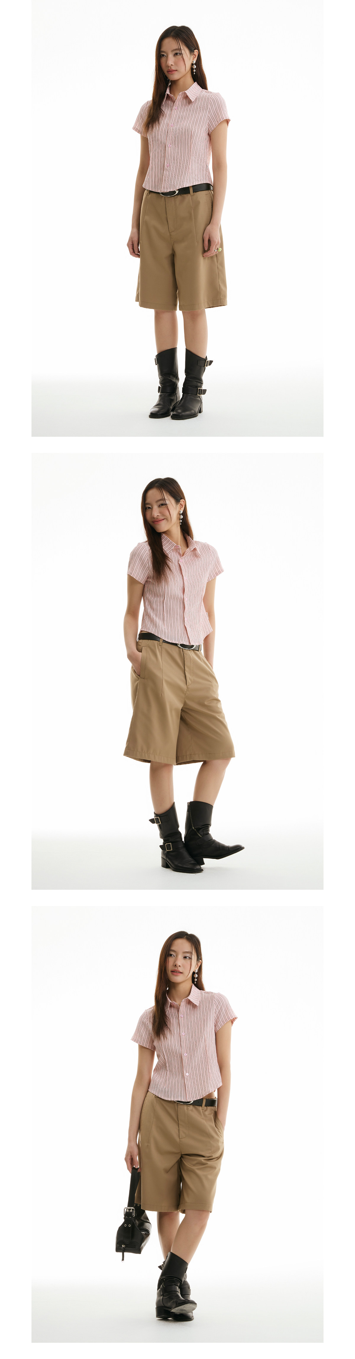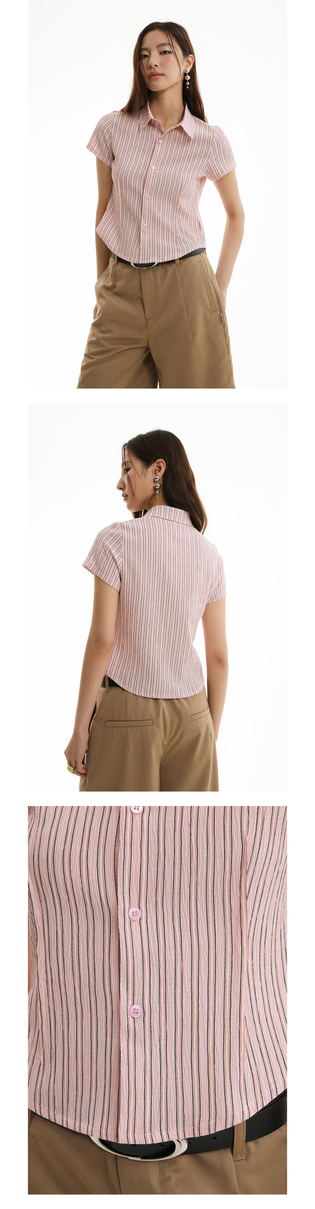 FUNKYFUN Y2k Spice Girl Slim Fit Waist Shoulder Short Sleeve Shirt